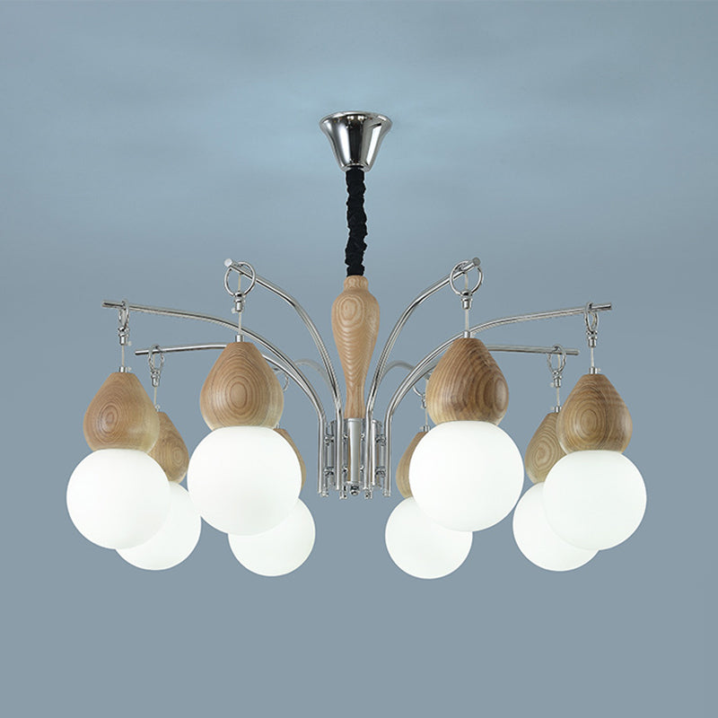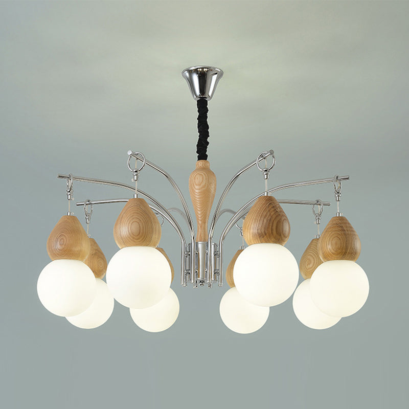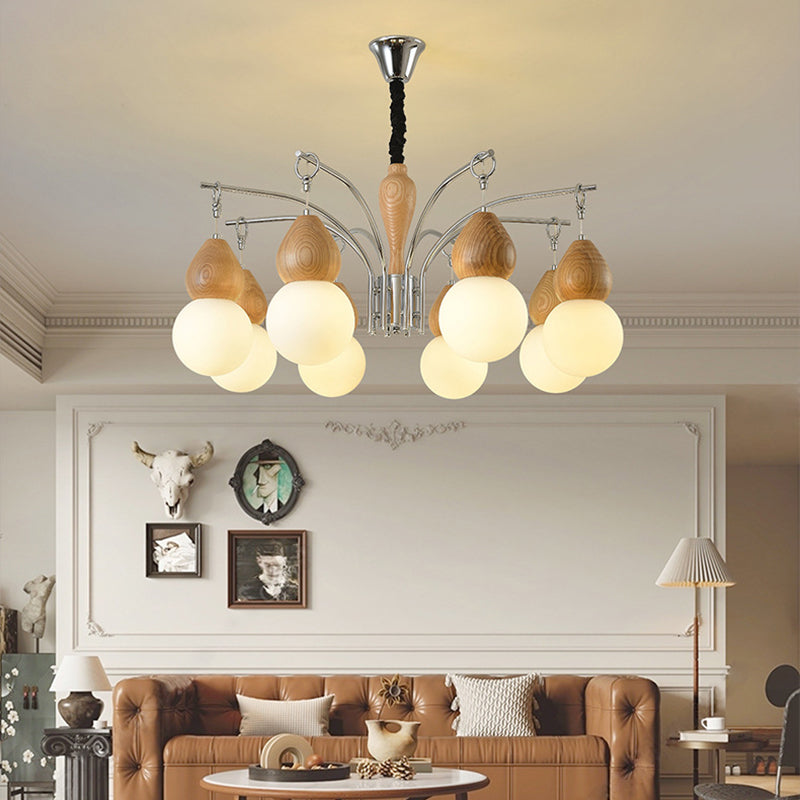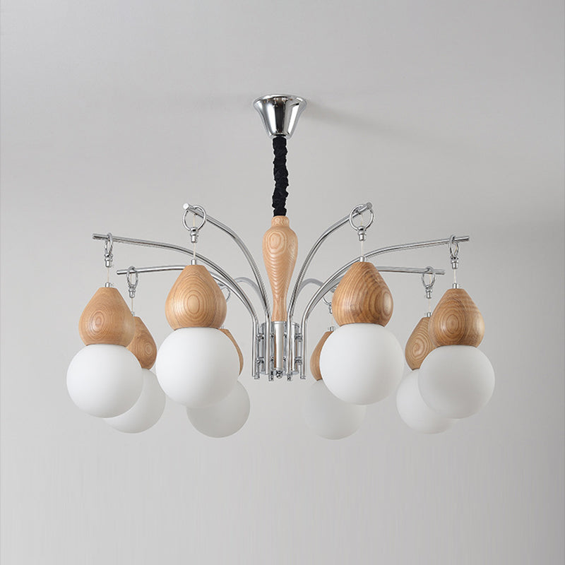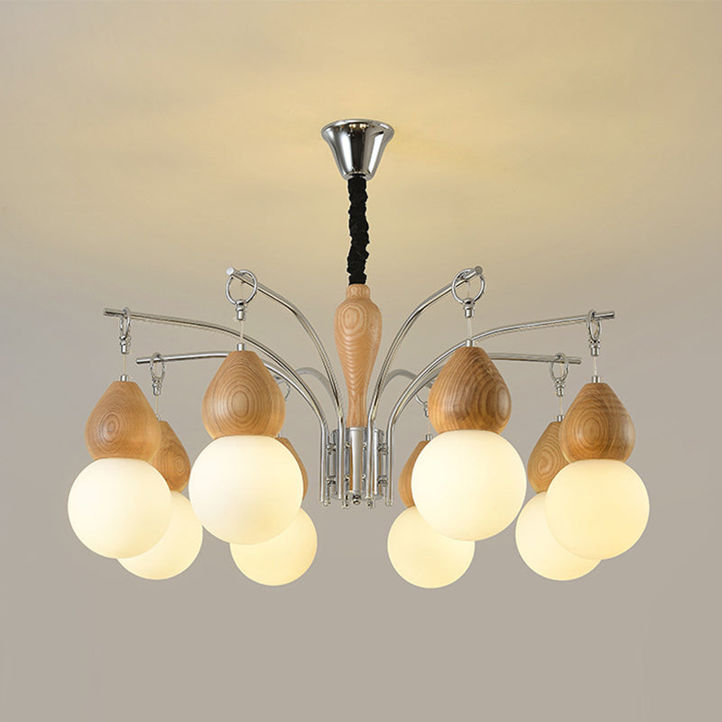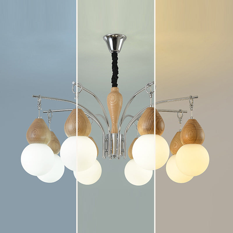 Traditional Japanese Glass Iron & Wood Gourd Sputnik 6/8-Light Chandelier For Living Room