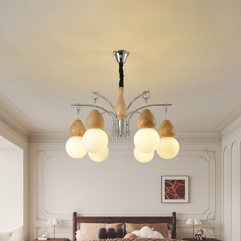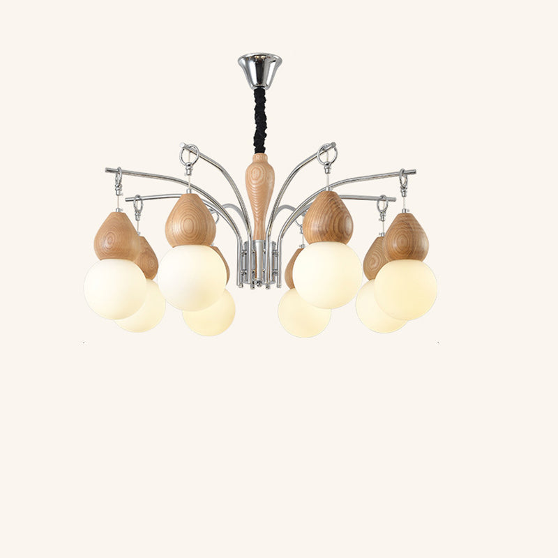 Elevate your home with this traditional Japanese-style chandelier, featuring a natural wood finish, elegant gourd-shaped glass shades, and a sleek electroplated iron body. With 6 or 8 soft-glow lights and an adjustable hanging chain, it’s perfect for adding warmth and character to your living room or bedroom. Ideal for lovers of minimalist and cozy interiors.