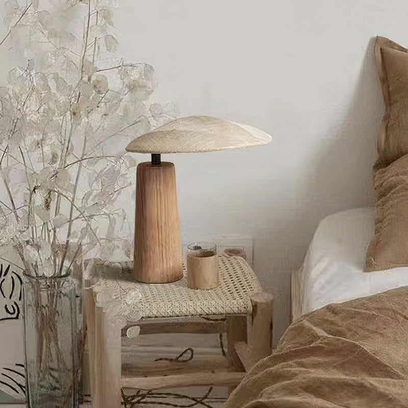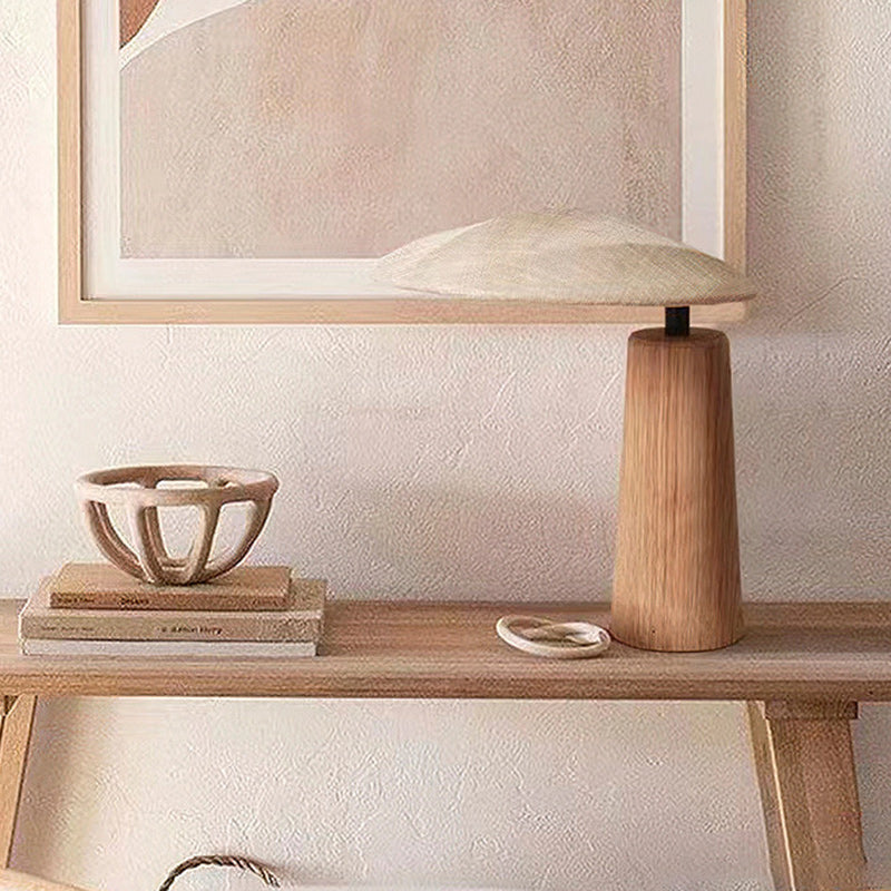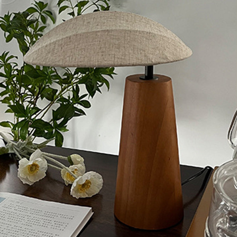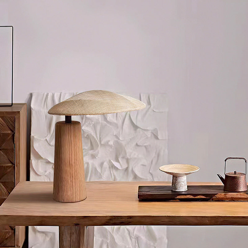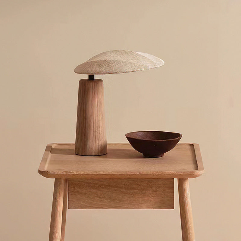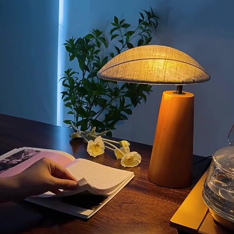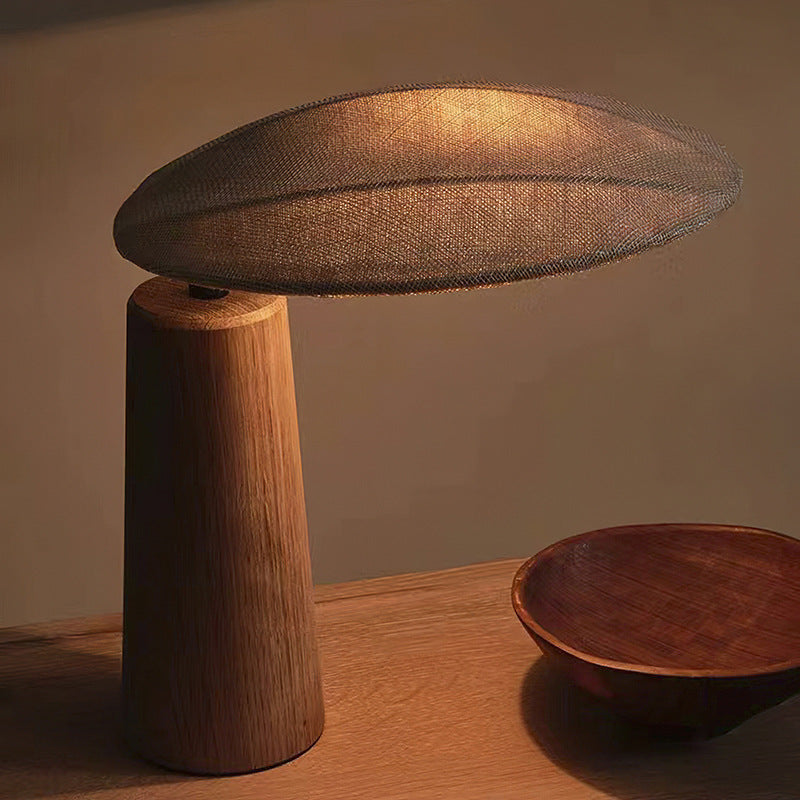 Traditional Japanese Oval Fabric Wood LED Table Lamp For Bedroom