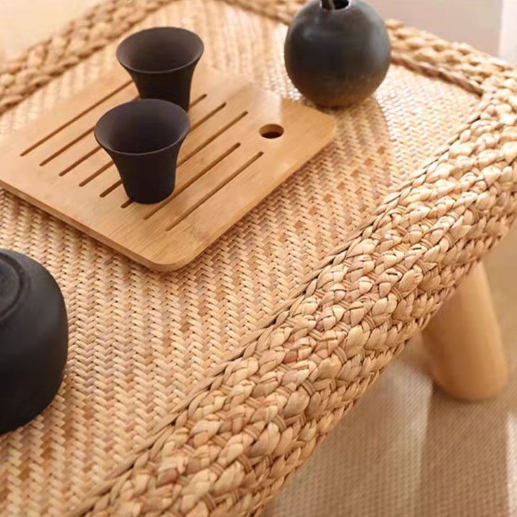 Traditional Japanese Round Rectangle Cottonwood Rattan Coffee Table 1 - Tier For Dining Room