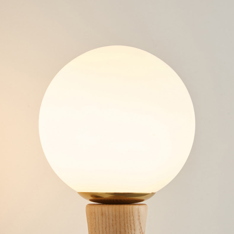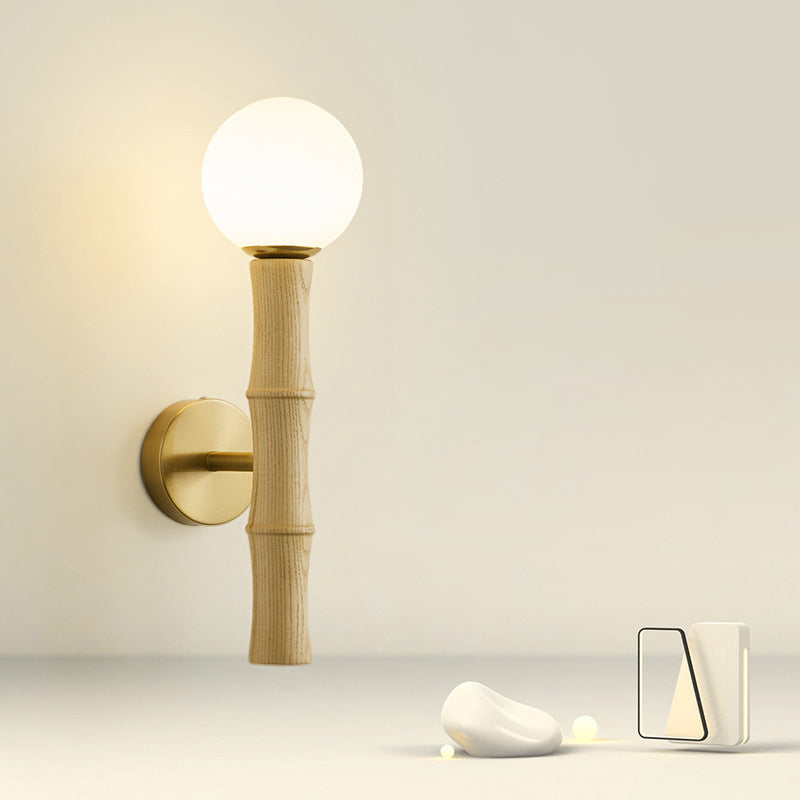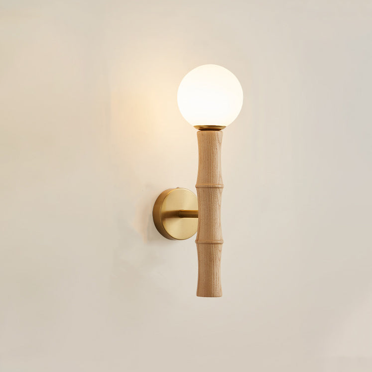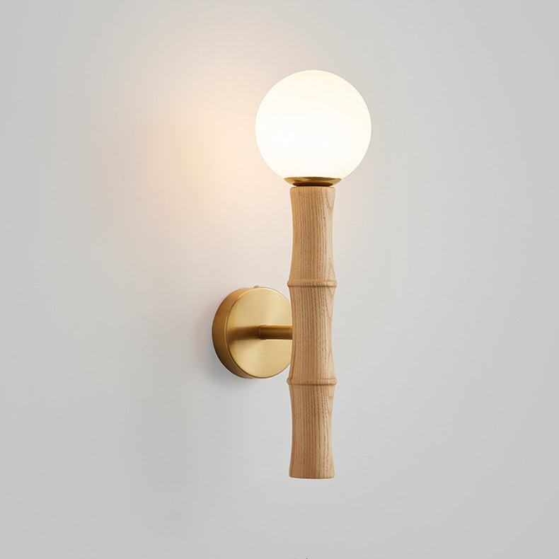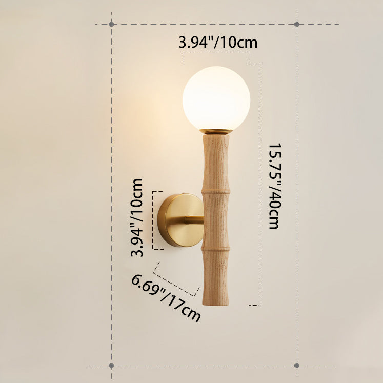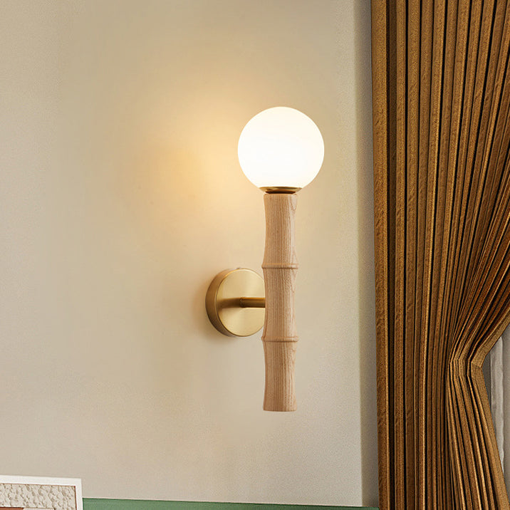 Traditional Japanese Spherical Ash Wood Iron Glass 1-Light Wall Sconce Lamp For Bedroom