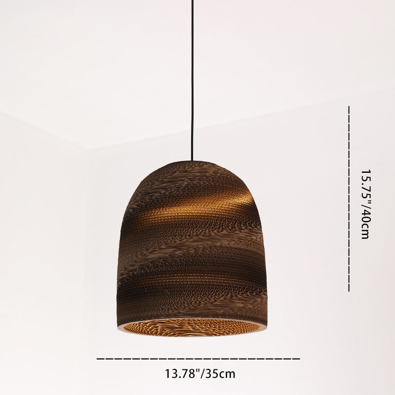 Traditional Japanese Square Umbrella Wide Bell Corrugated Paper 1-Light Pendant Light For Bedroom