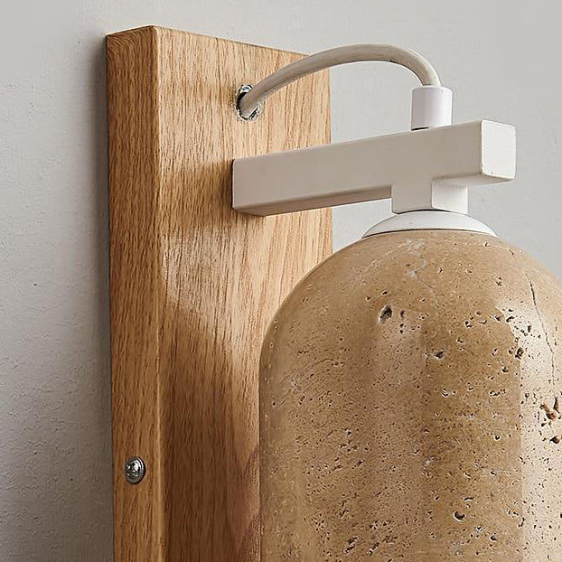 Traditional Japanese Travertine Walnut Cylinder 1-Light Wall Sconce Lamp For Bedside