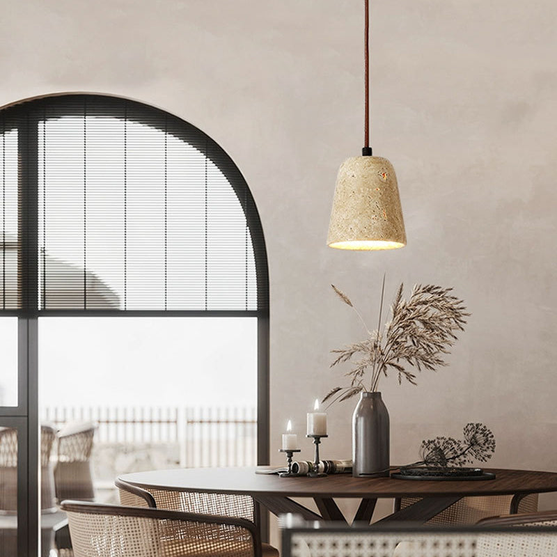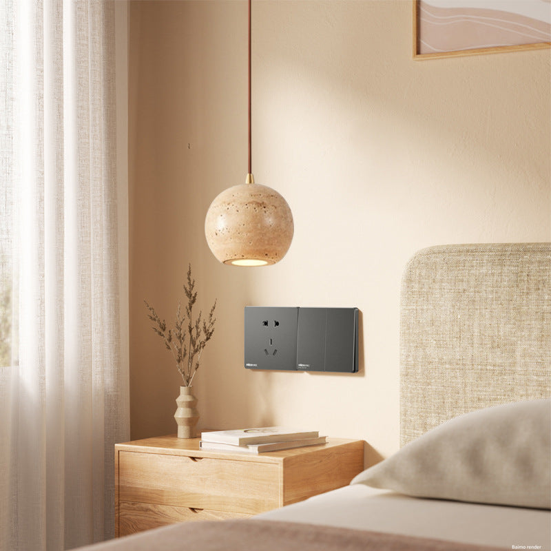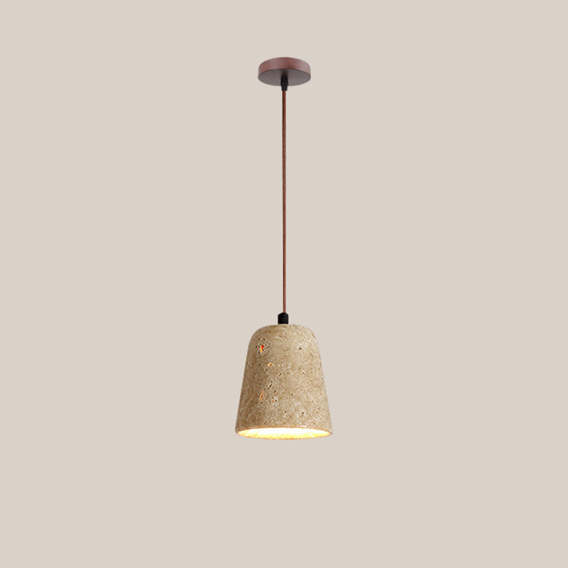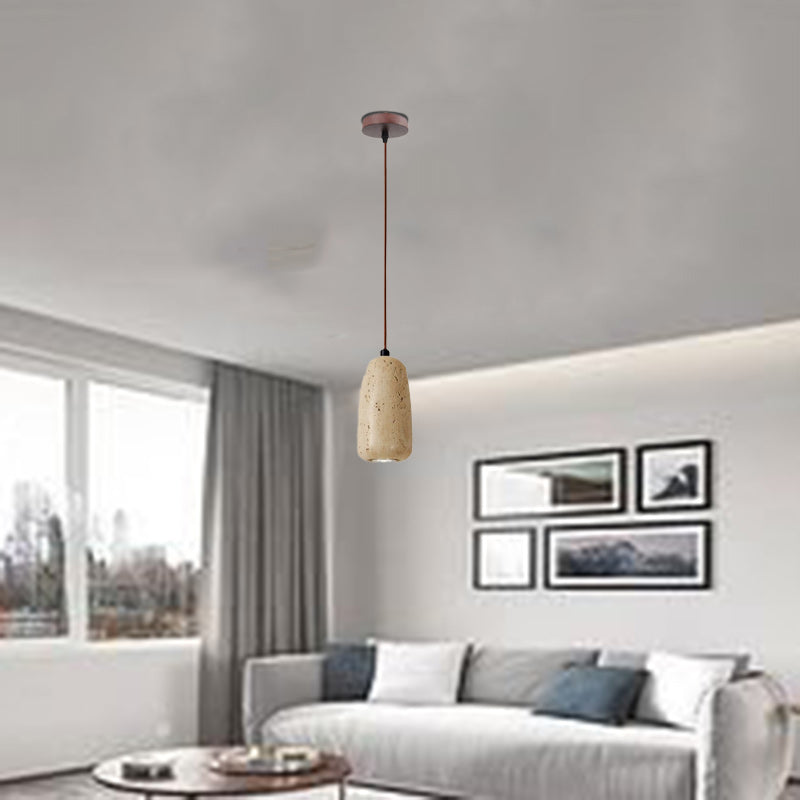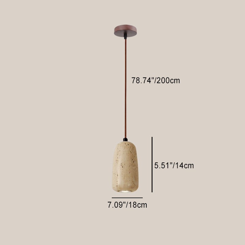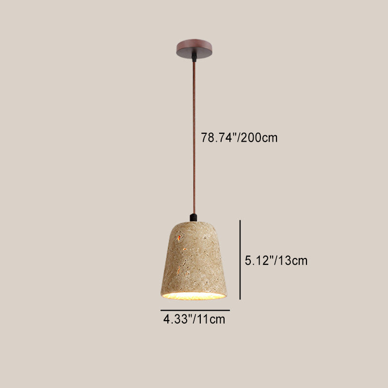 Traditional Japanese Travertine Wood Cylinder Round Bowl Ball 1-Light Pendant Light For Bedside