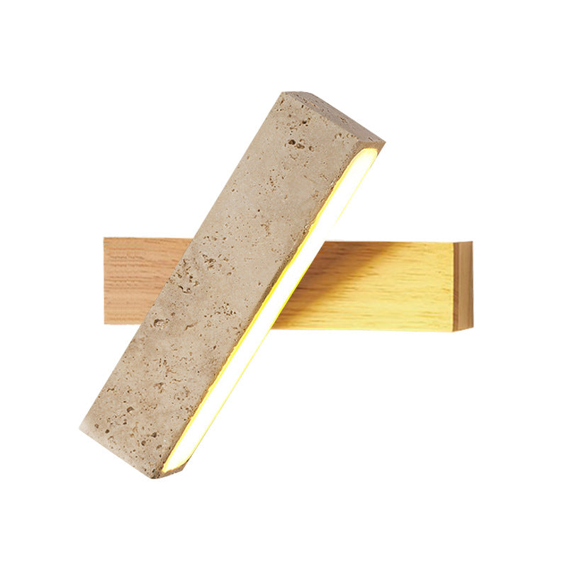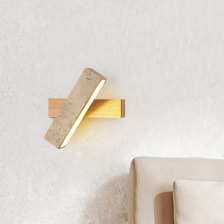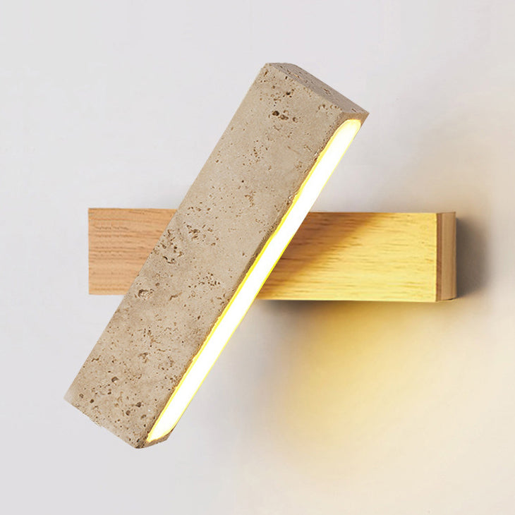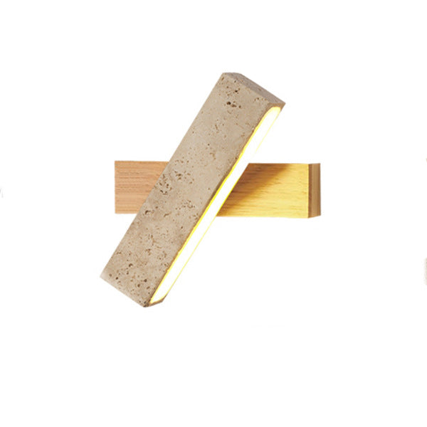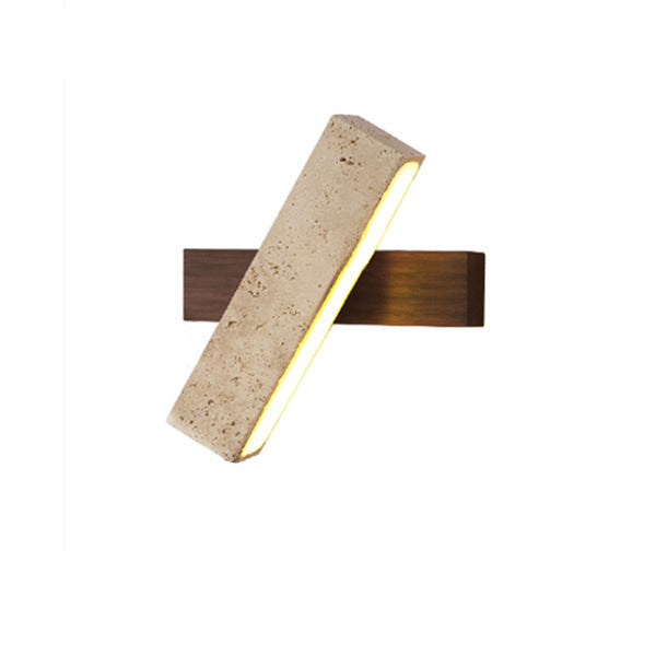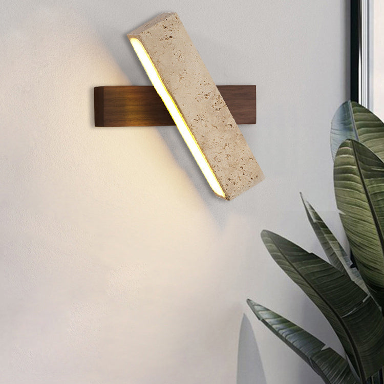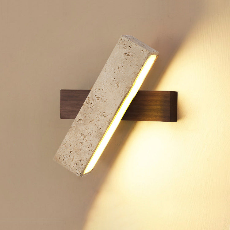 Traditional Japanese Travertine Wood Rotatable Rectangular LED Wall Sconce Lamp For Bedside