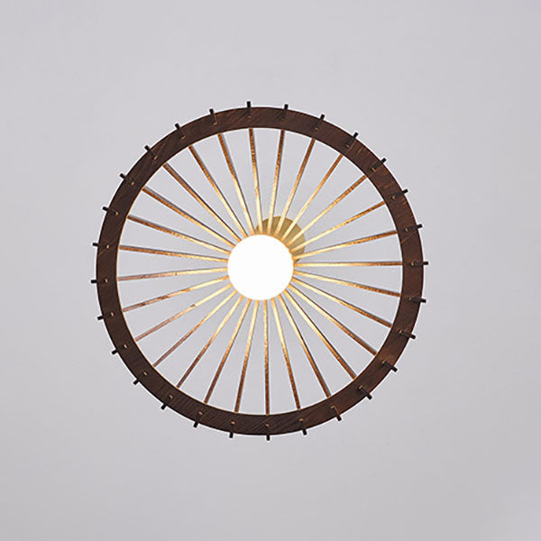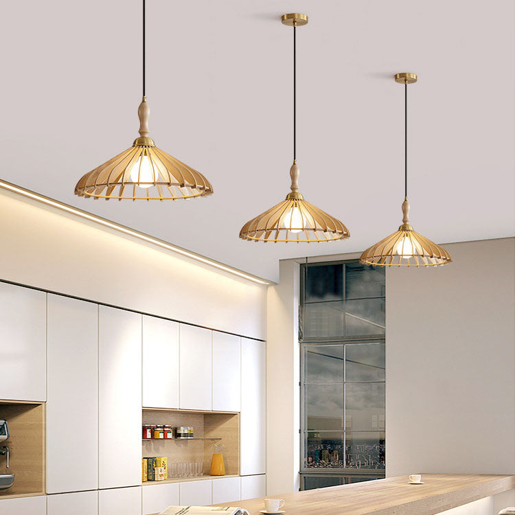 Traditional Japanese Umbrella Ash Wood Copper 1-Light Pendant Light For Bedroom