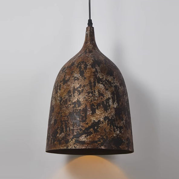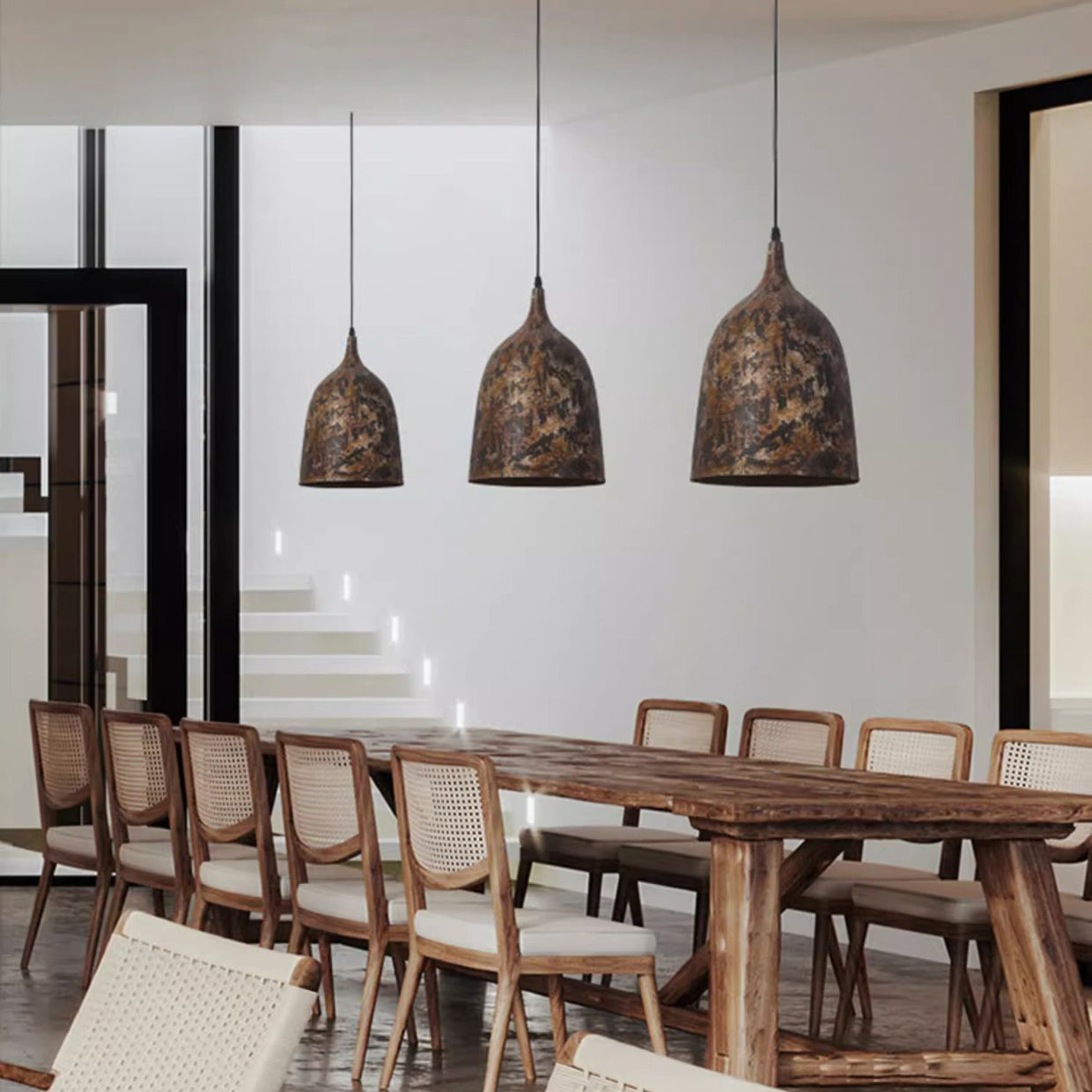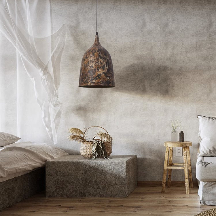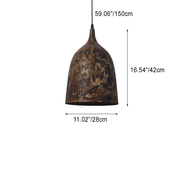 Traditional Japanese Wabi-Sabi Hand Painted Steel Round 1-Light Pendant Light For Dining Room