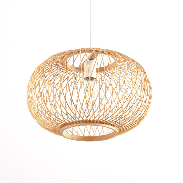 Traditional Japanese Weaving Bamboo Iron Ball Lantern 1-Light Pendant Light For Dining Room
