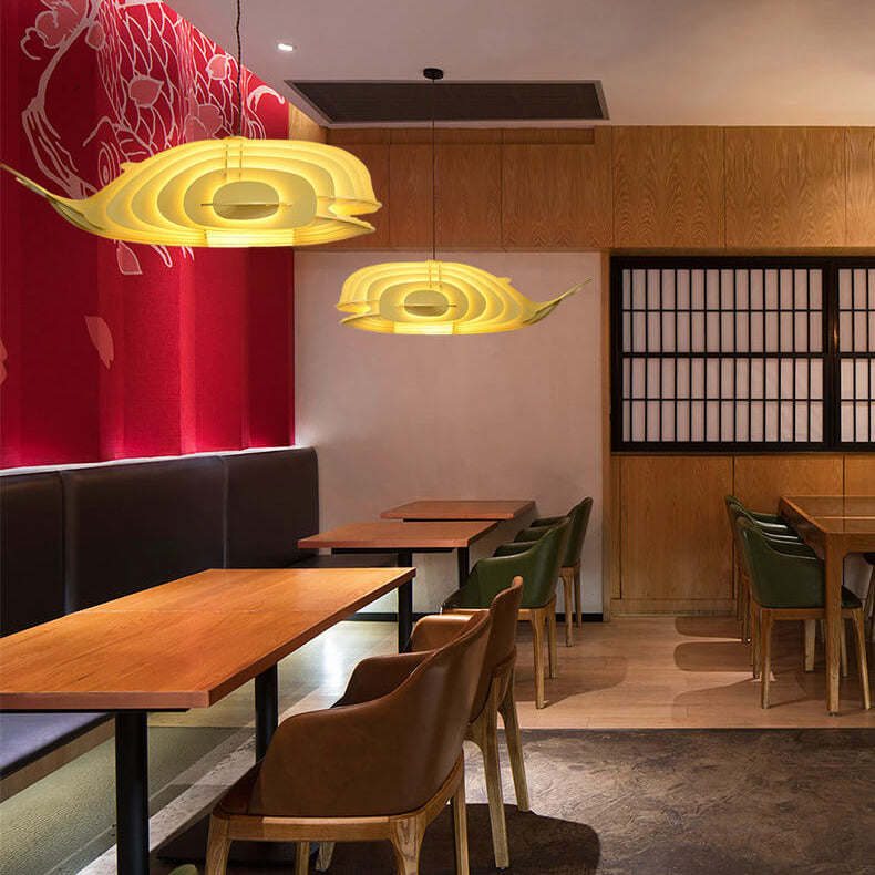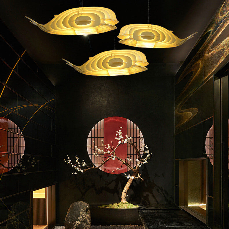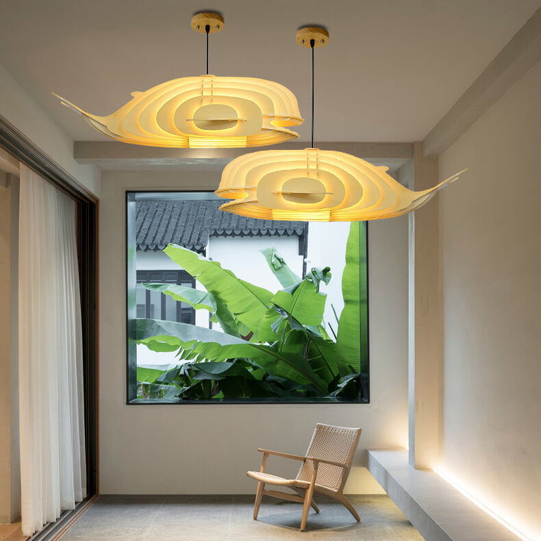 Traditional Japanese Whale Solid Wood 1-Light Pendant Light For Living Room