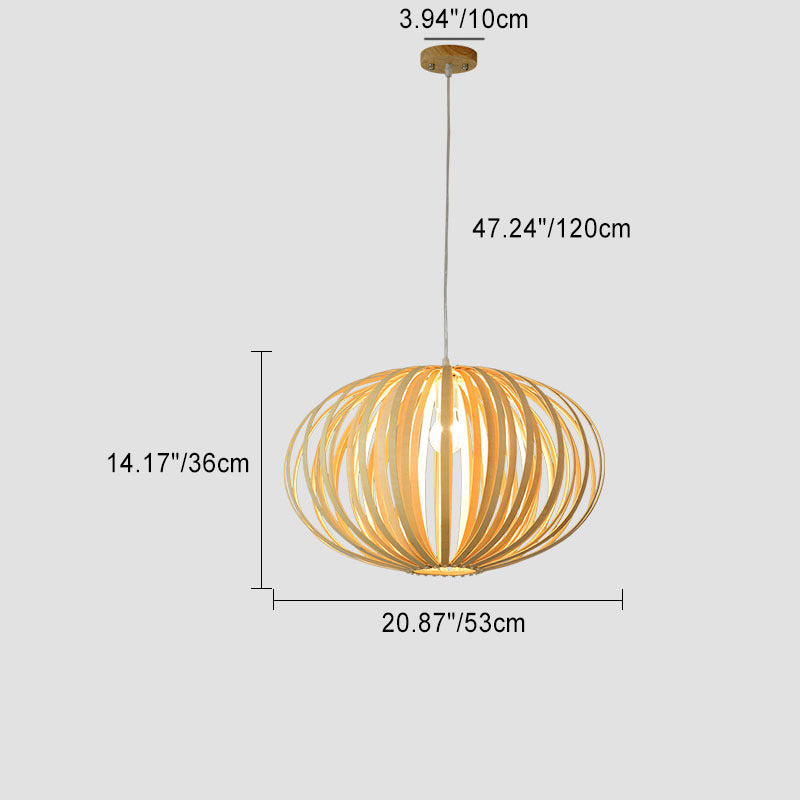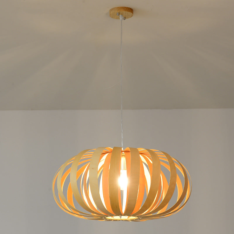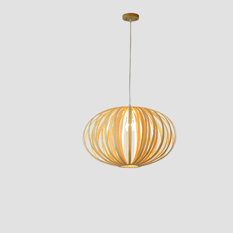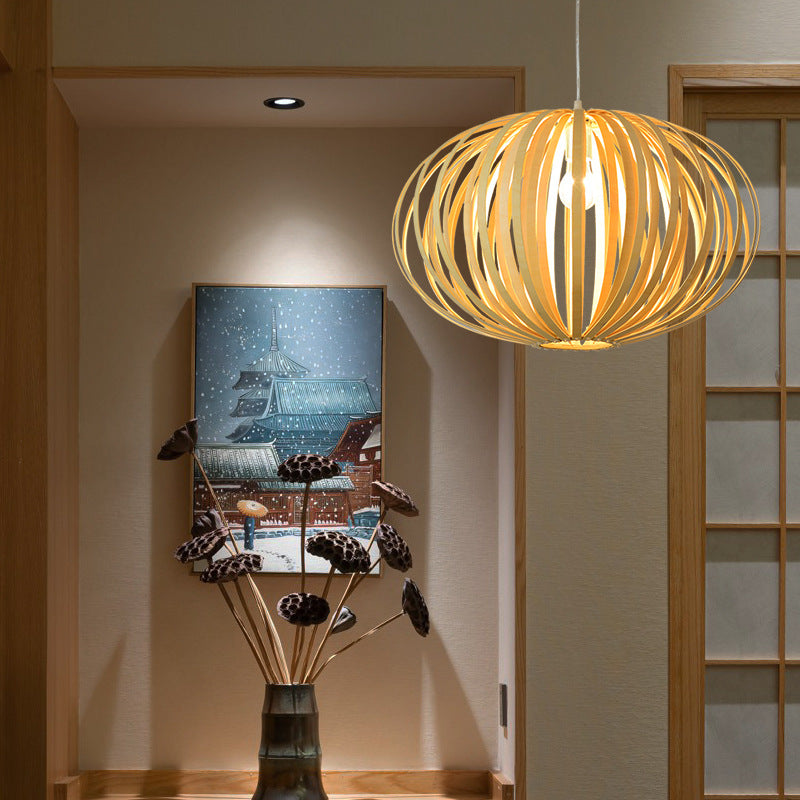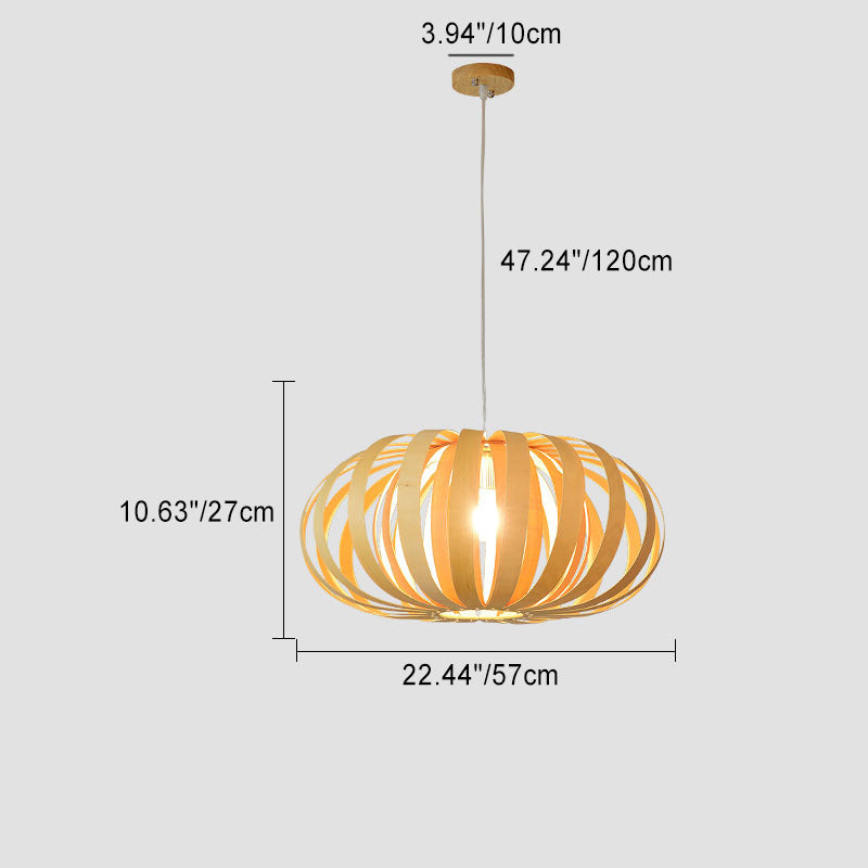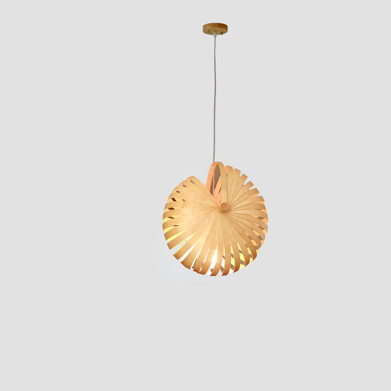 Traditional Japanese Wood Conch Shape 1-Light Pendant Light For Living Room