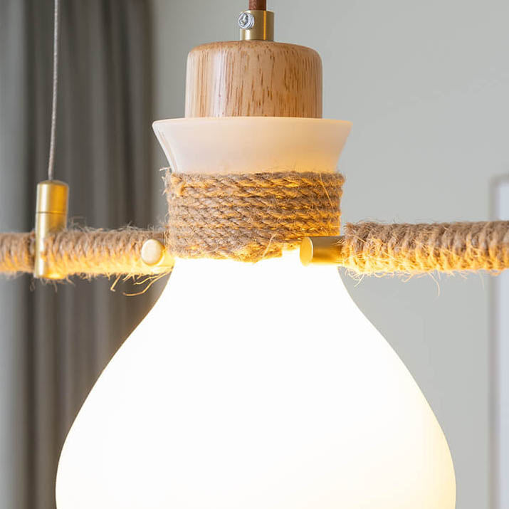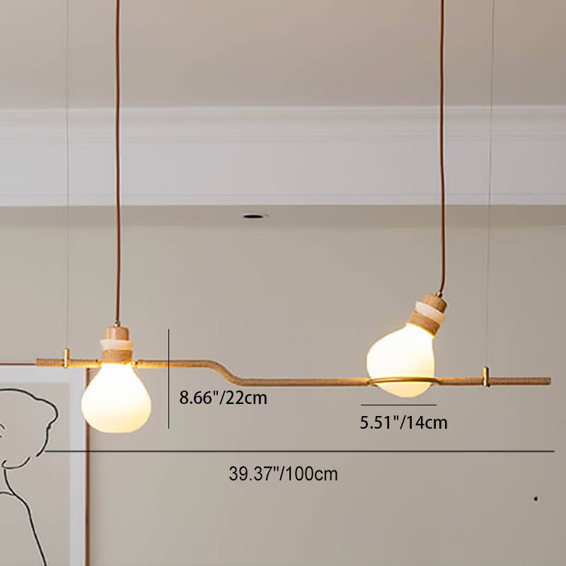 Traditional Japanese Wood Glass Ball 1/2/3-Light Island Light Chandelier For Living Room