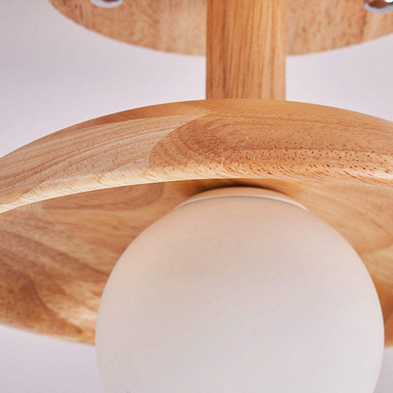 Traditional Japanese Wood Grain Glass Ball Shade 1-Light Semi-Flush Mount Ceiling Light For Living Room