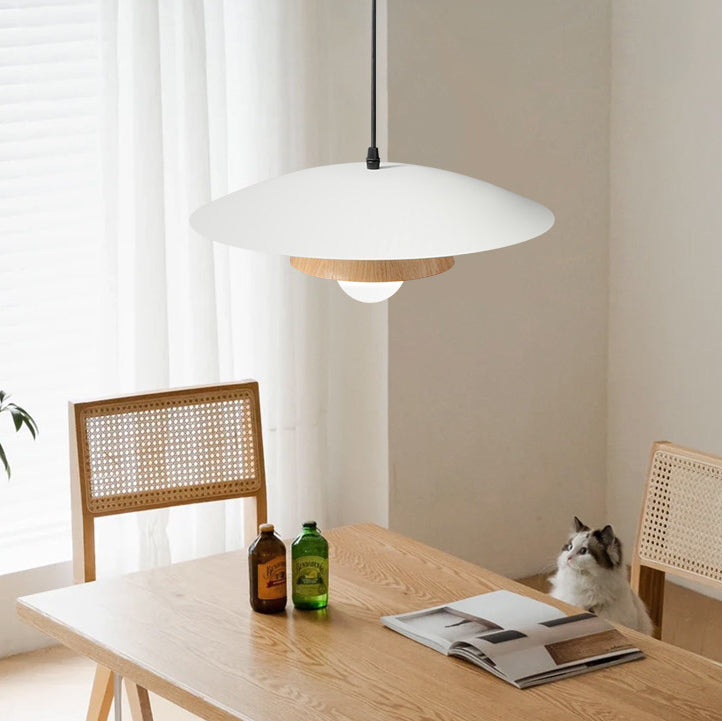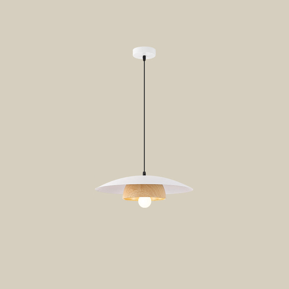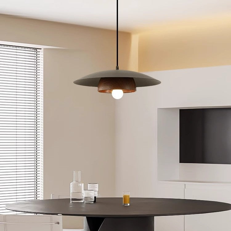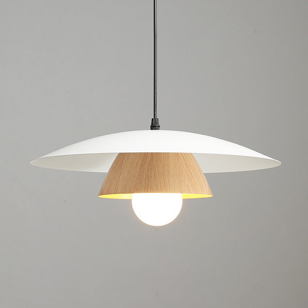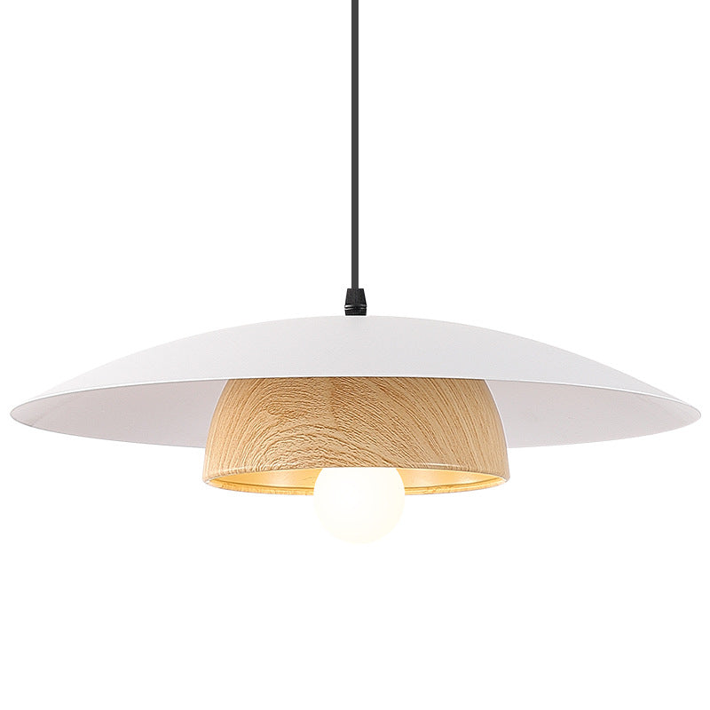 Traditional Japanese Wood Texture Round Iron 1-Light Pendant Light For Living Room