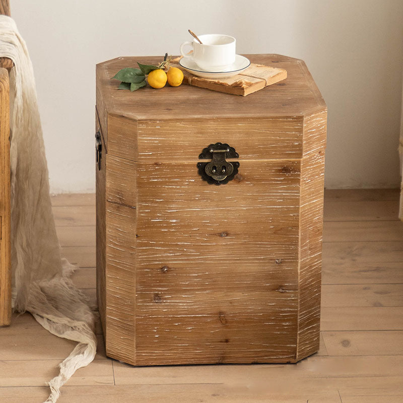 Traditional Retro Rectangular Solid Wood Iron Nightstand 1-Storage For Bedroom
