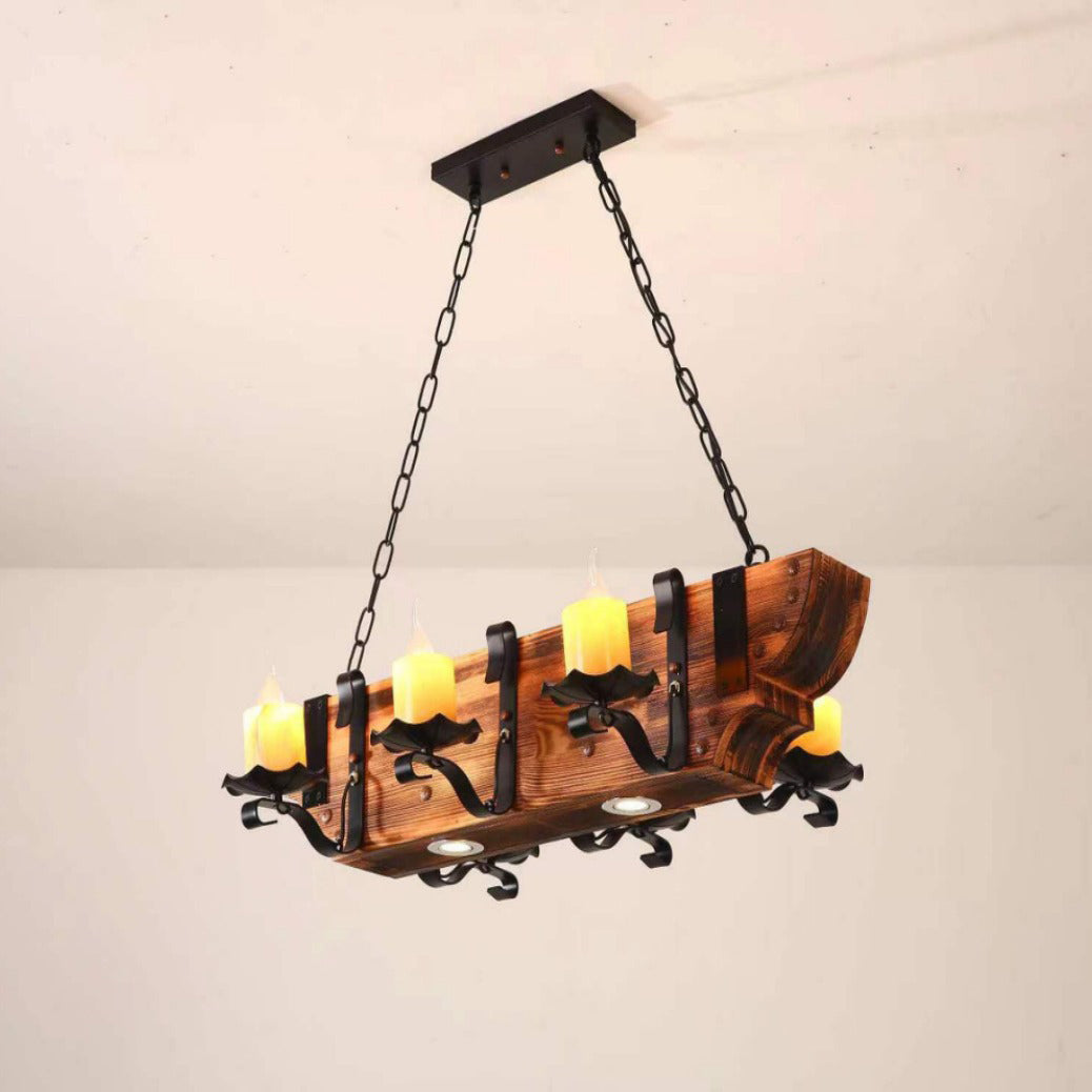 Traditional Rustic Boat Distressed Wood Iron 3/4/5/8/11-Light Chandelier Island Light For Dining Room
