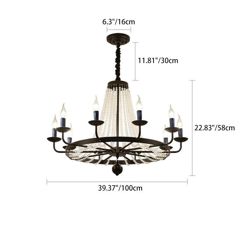 Traditional Rustic Candle Circle Iron Crystal 8-Light Chandelier For Living Room