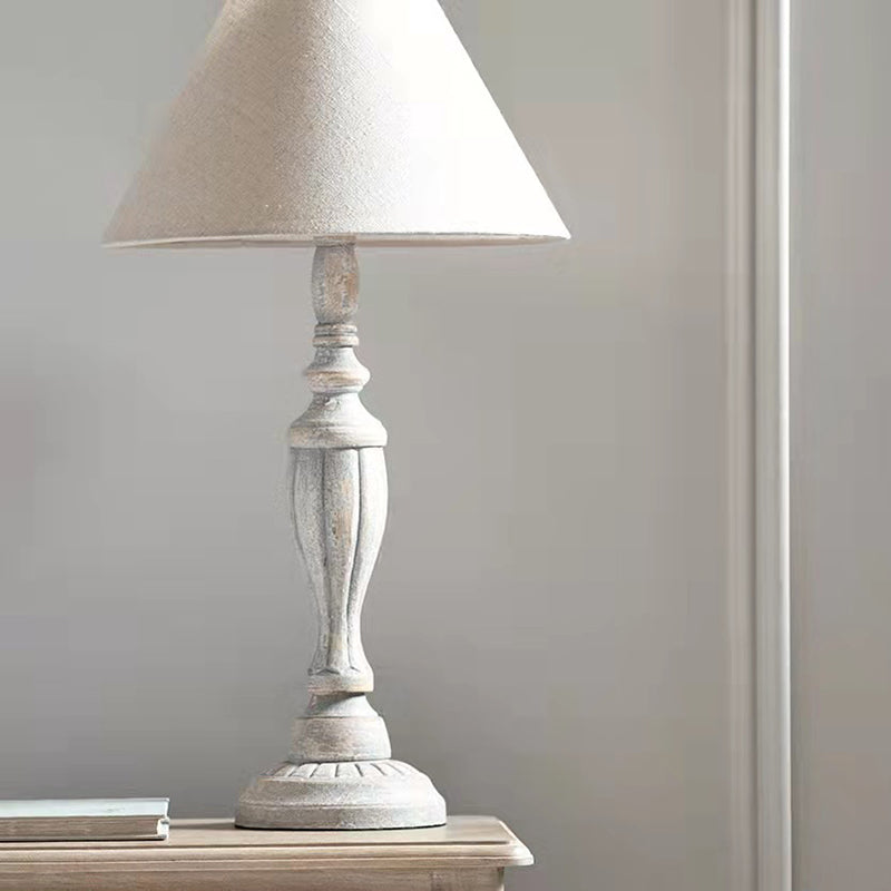 Traditional Rustic Cone Solid Wood Fabric 1-Light Table Lamp For Bedroom