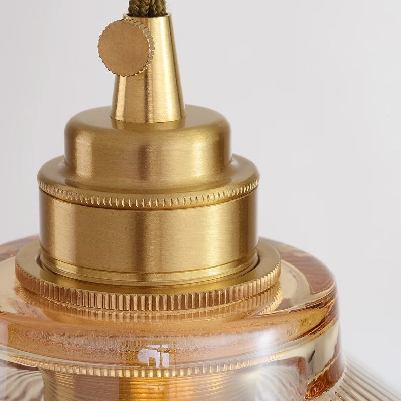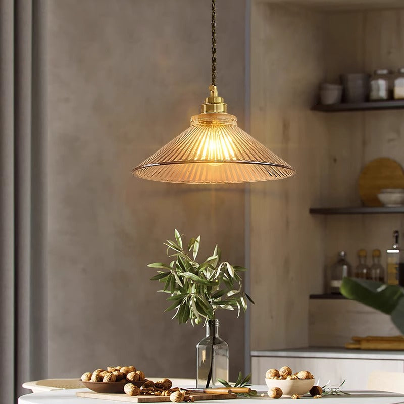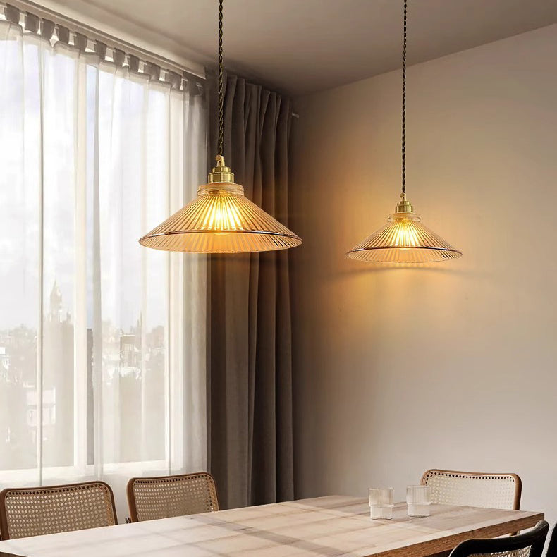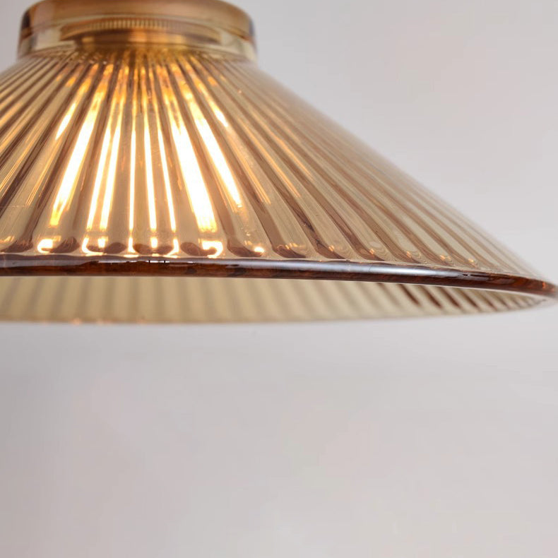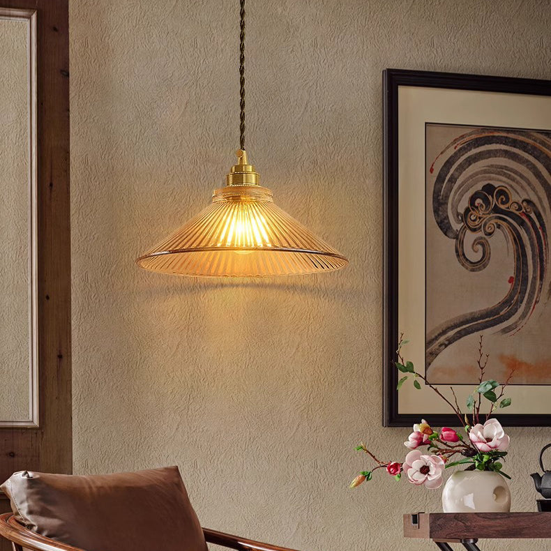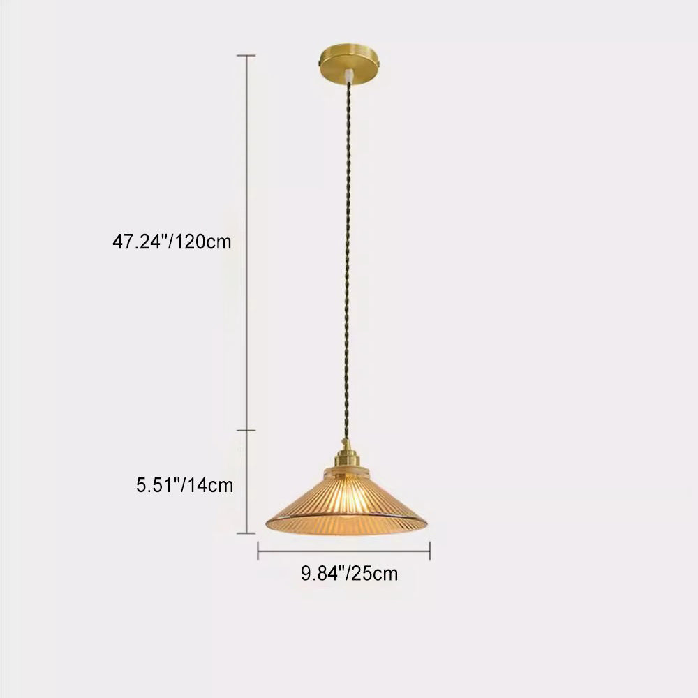Traditional Rustic Cone Stripe Glass Brass 1-Light Pendant Light For Living Room