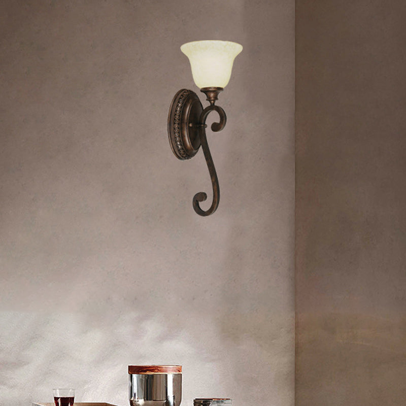 Traditional Rustic Cup Iron Glass 1-Light Wall Sconce Lamp For Living Room