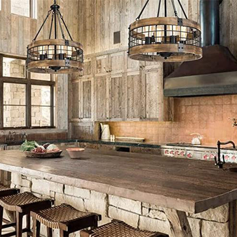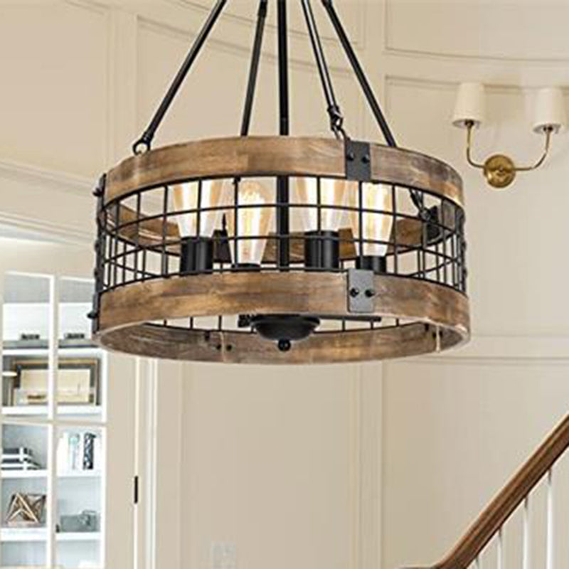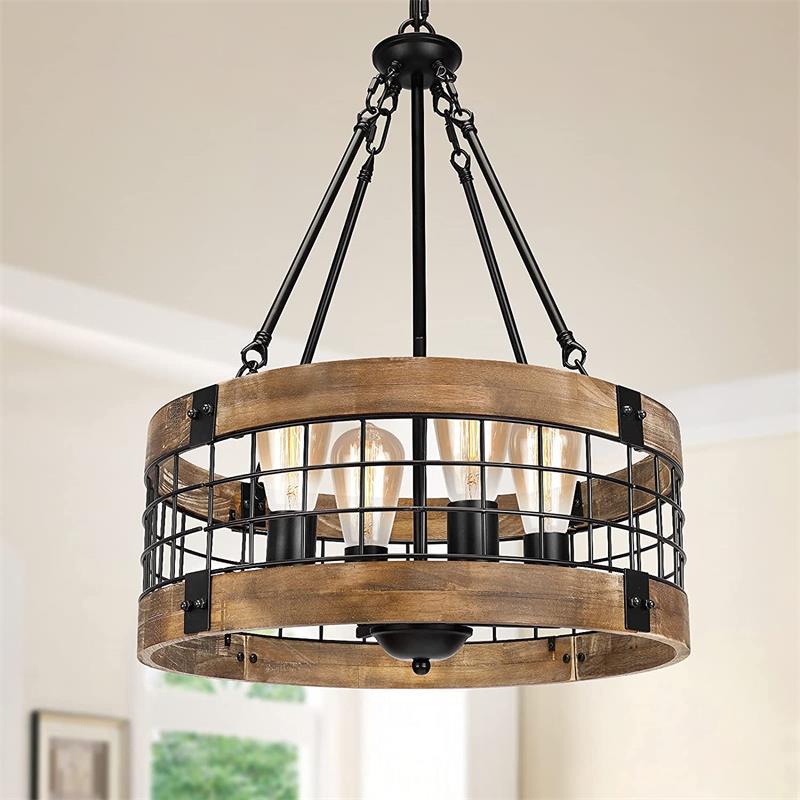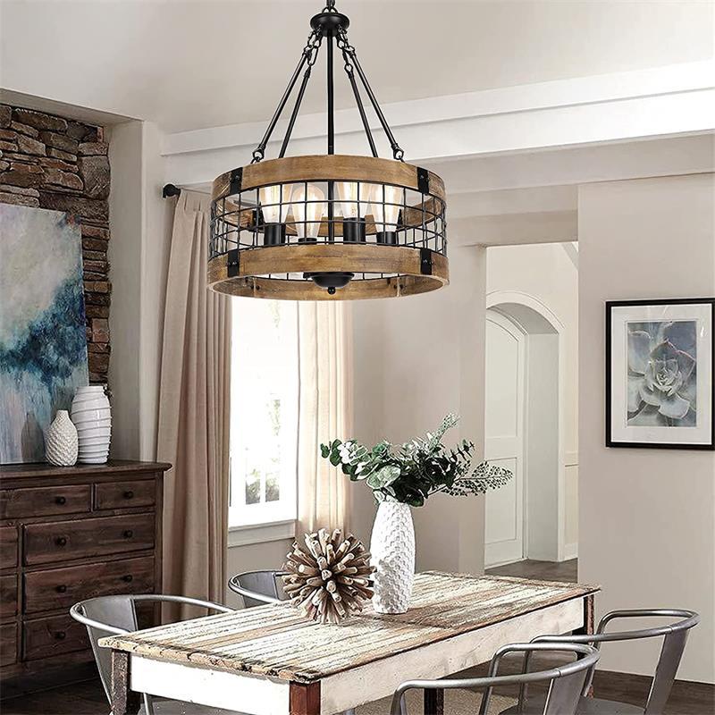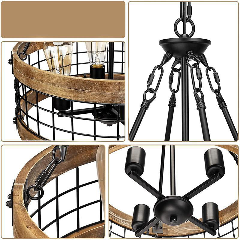 Traditional Rustic Cylinder Birdcage Shape Wood Grain Iron 4 - Light Chandeliers For Dining Room