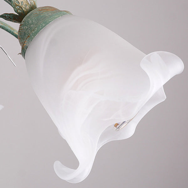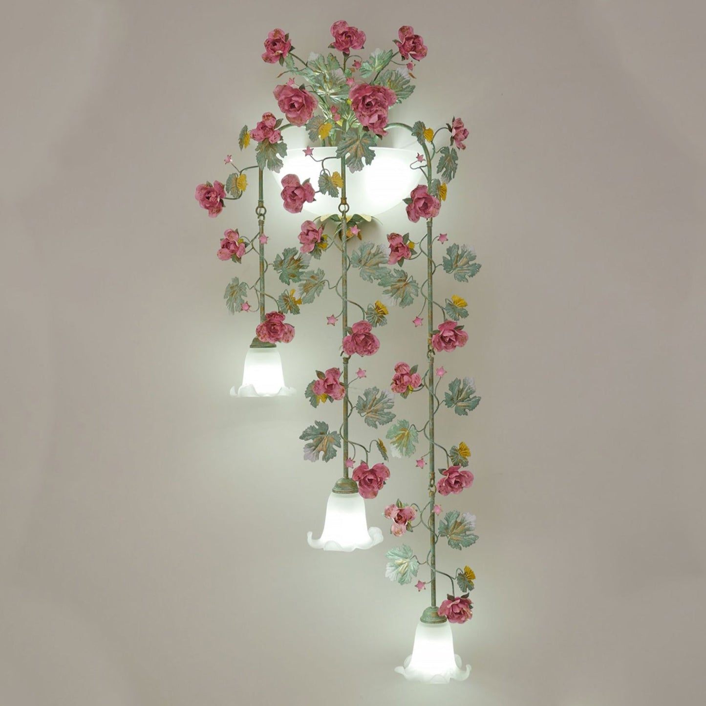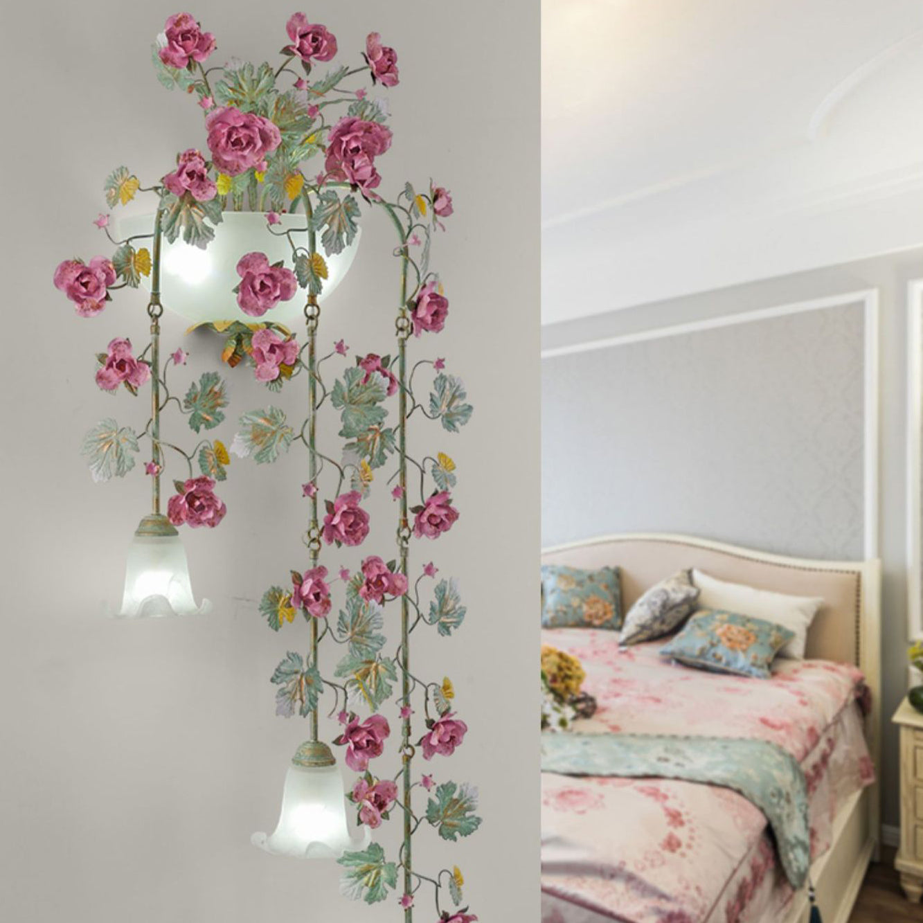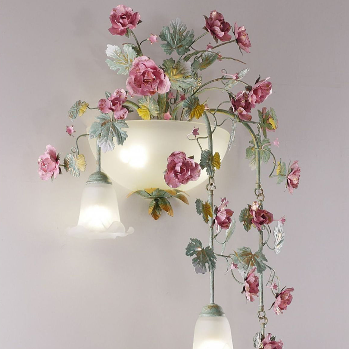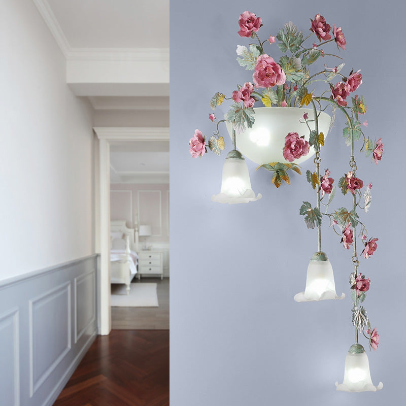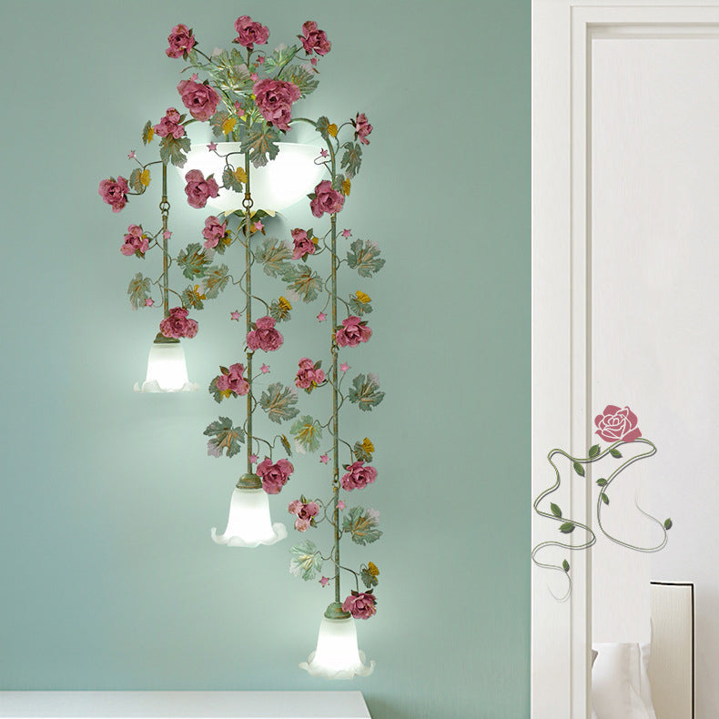 Traditional Rustic Floral Leaf Iron Glass 5-Light Wall Sconce Lamp For Living Room