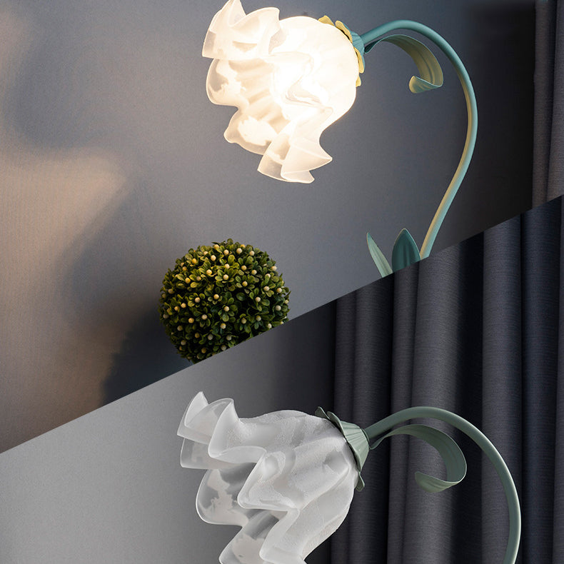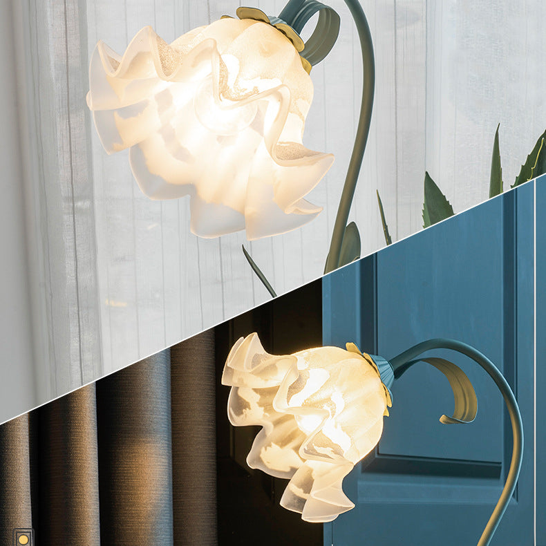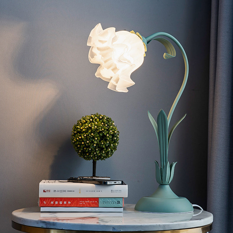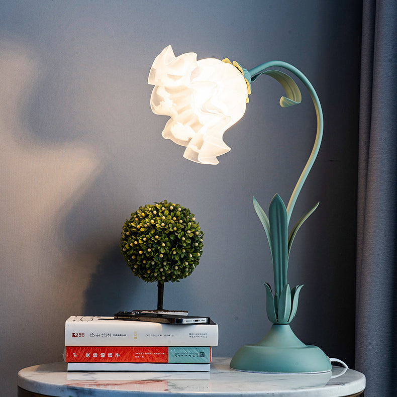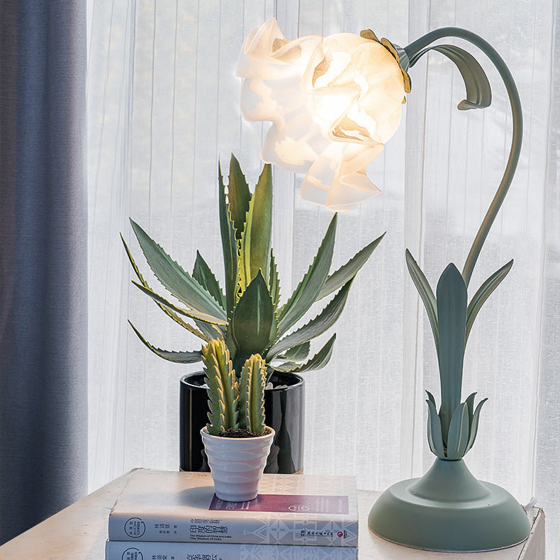 Traditional Rustic Floral Leaf Round Acrylic Iron 1-Light Table Lamp For Living Room