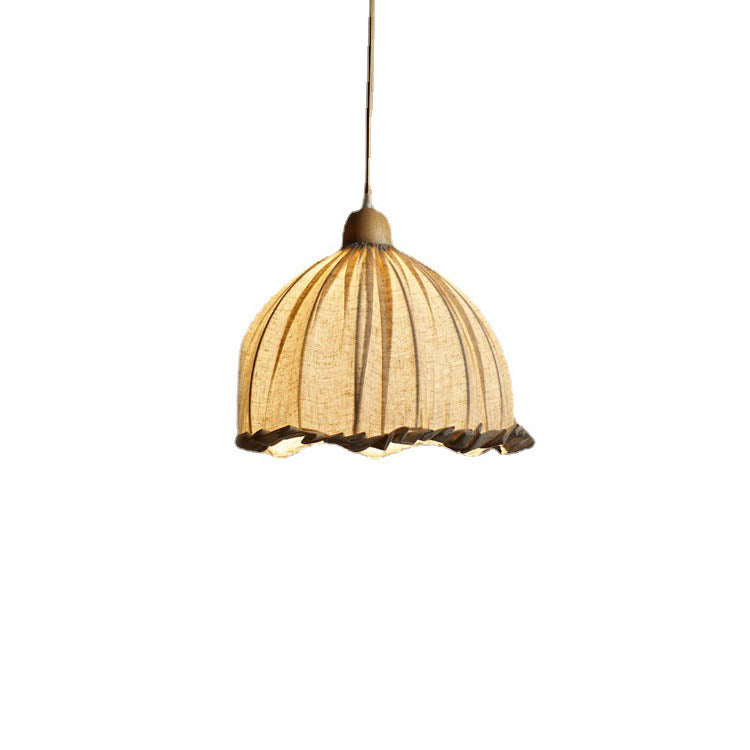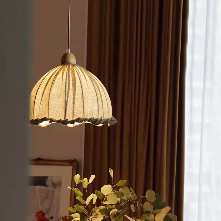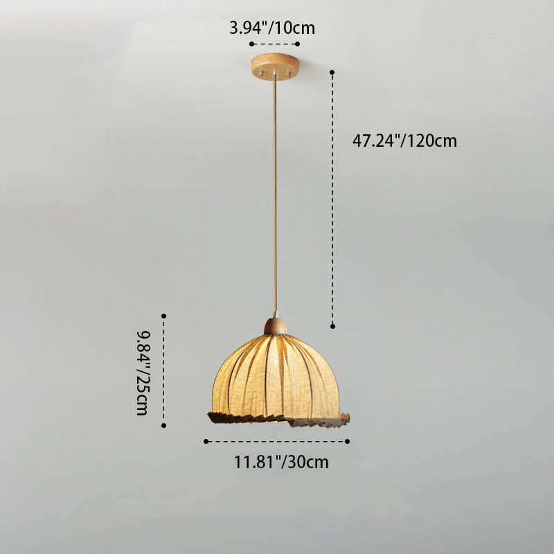 Traditional Rustic Half Round Rubber Wood Linen 1-Light Pendant Light For Living Room