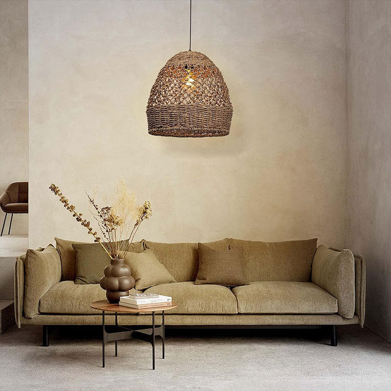Traditional Rustic Rattan Weaving Openwork Cage 1-Light Pendant Light For Dining Room