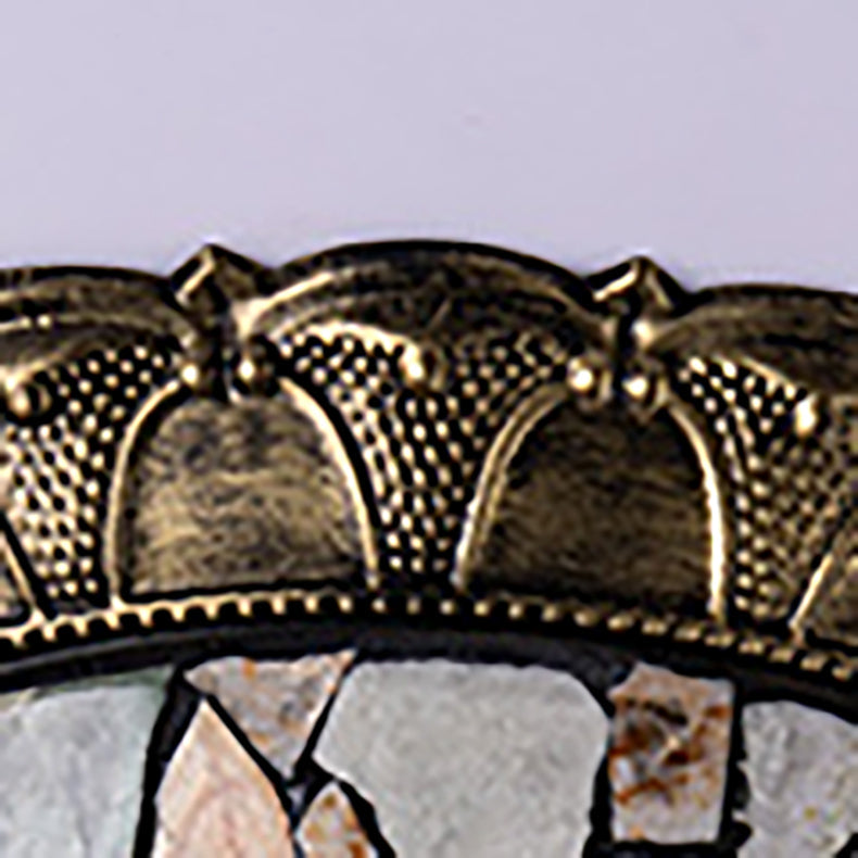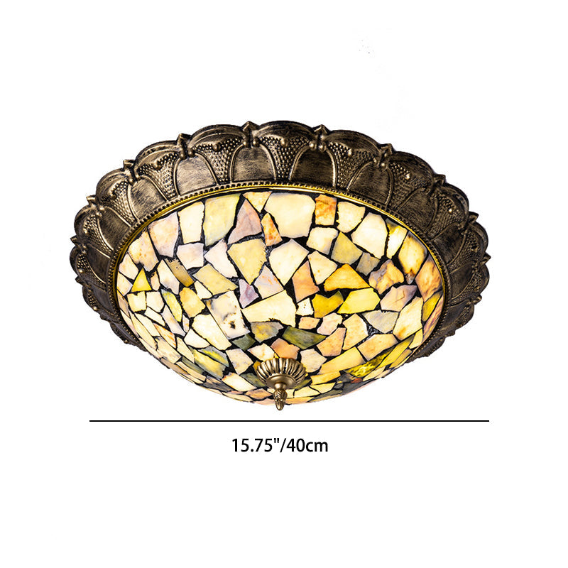 Traditional Rustic Round Dome Iron Stained Glass LED Flush Mount Ceiling Light For Living Room