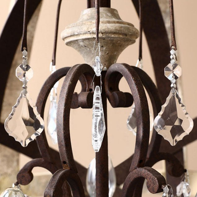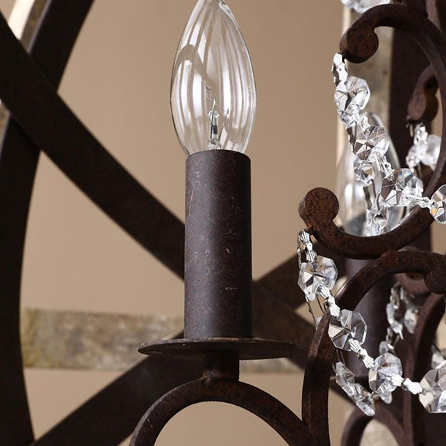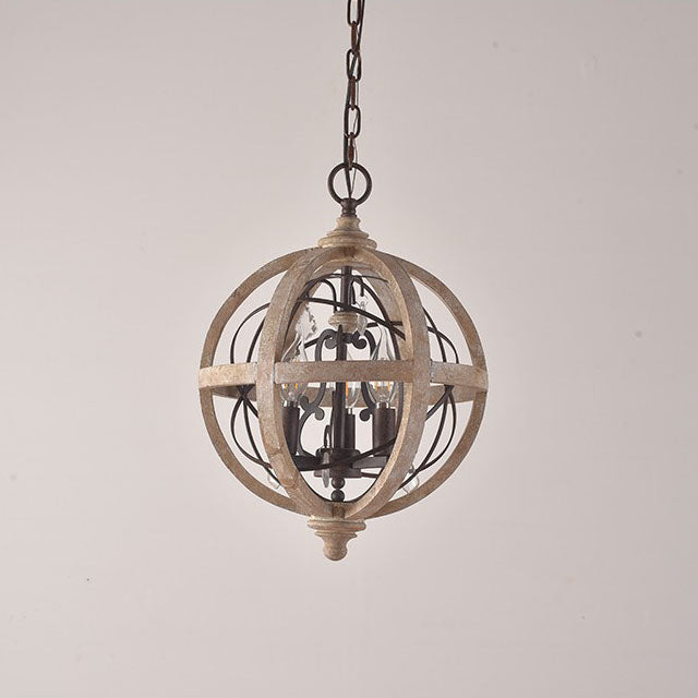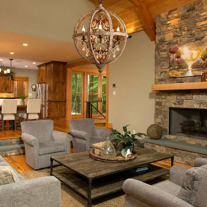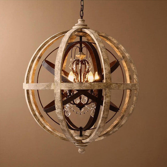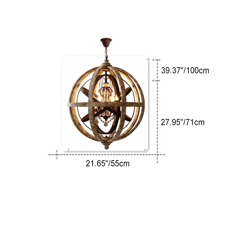 Traditional Rustic Weathered Wooden Sphere Crystal Decor 4/5-Light Chandelier For Living Room