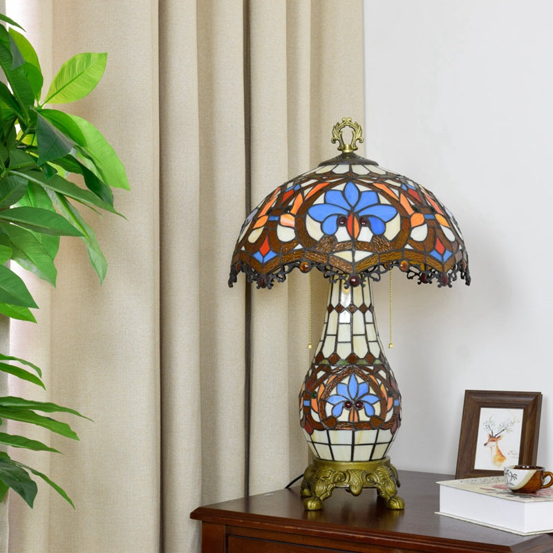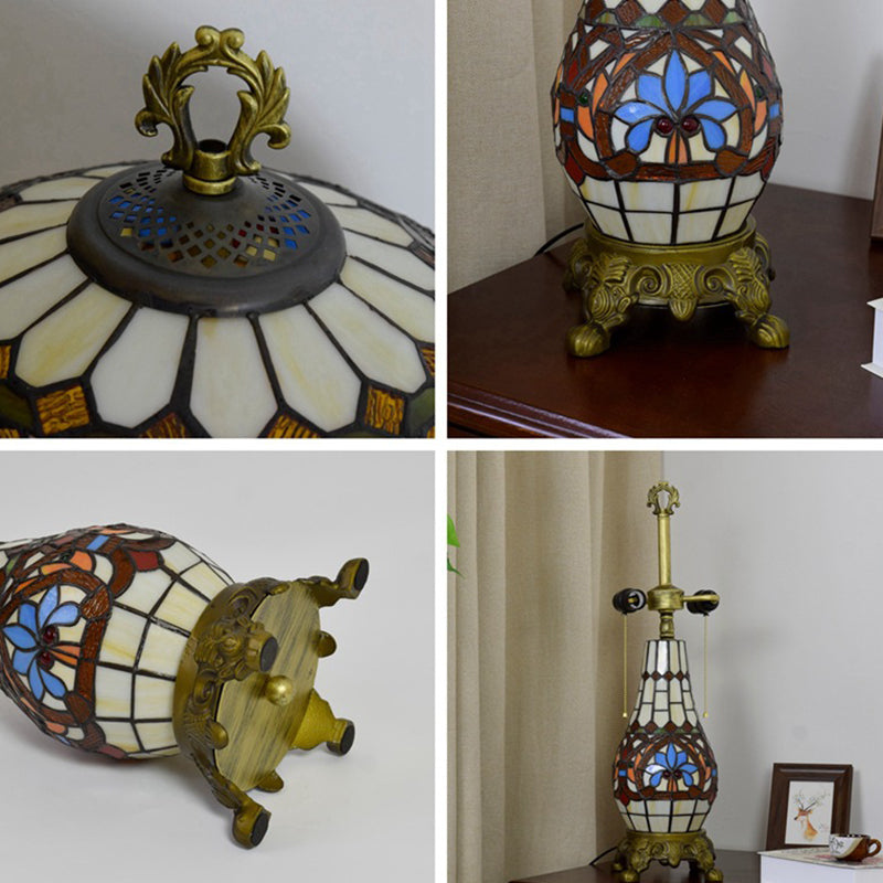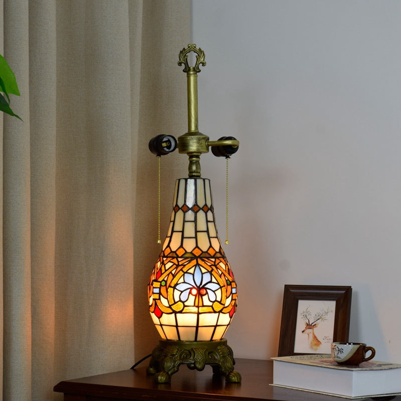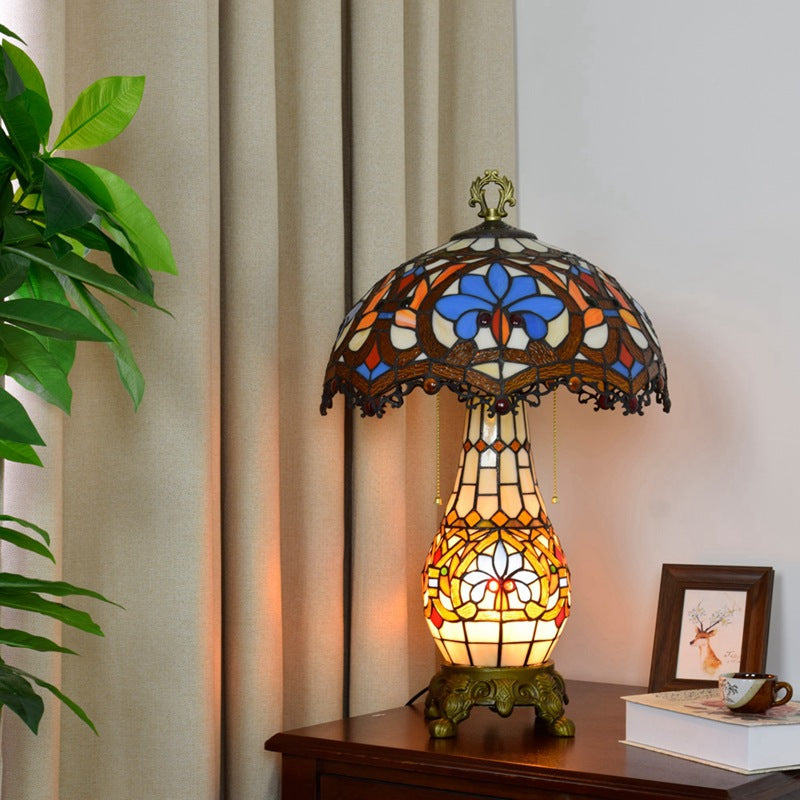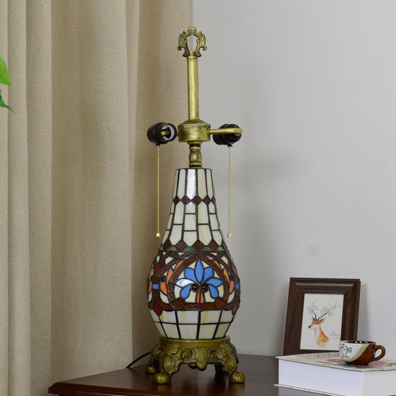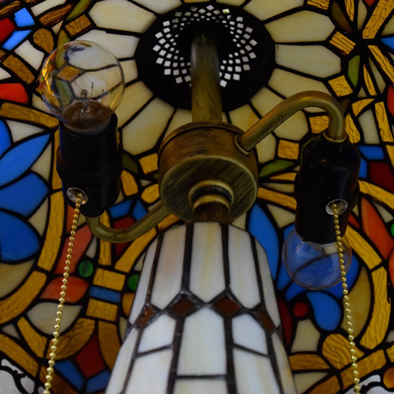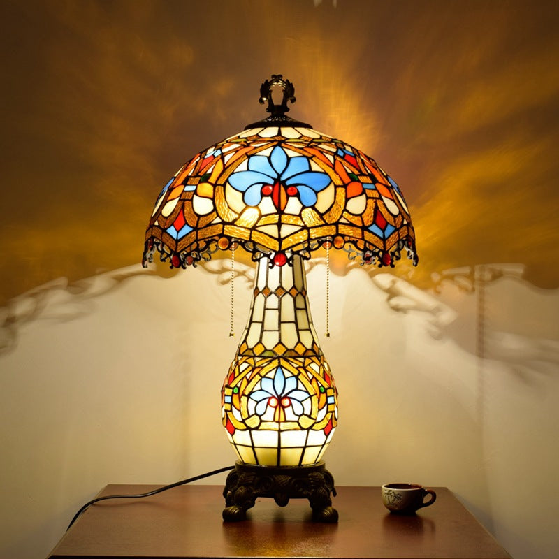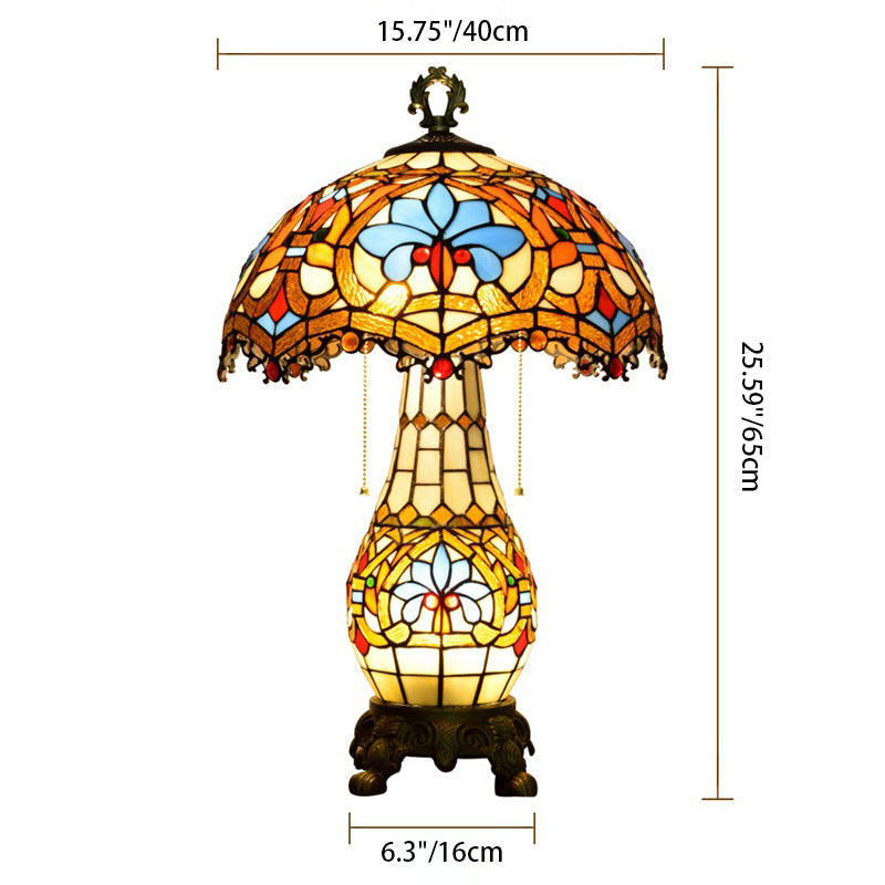 Traditional Tiffany Floral Peach Heart Design Stained Glass 2-Light Table Lamp For Living Room