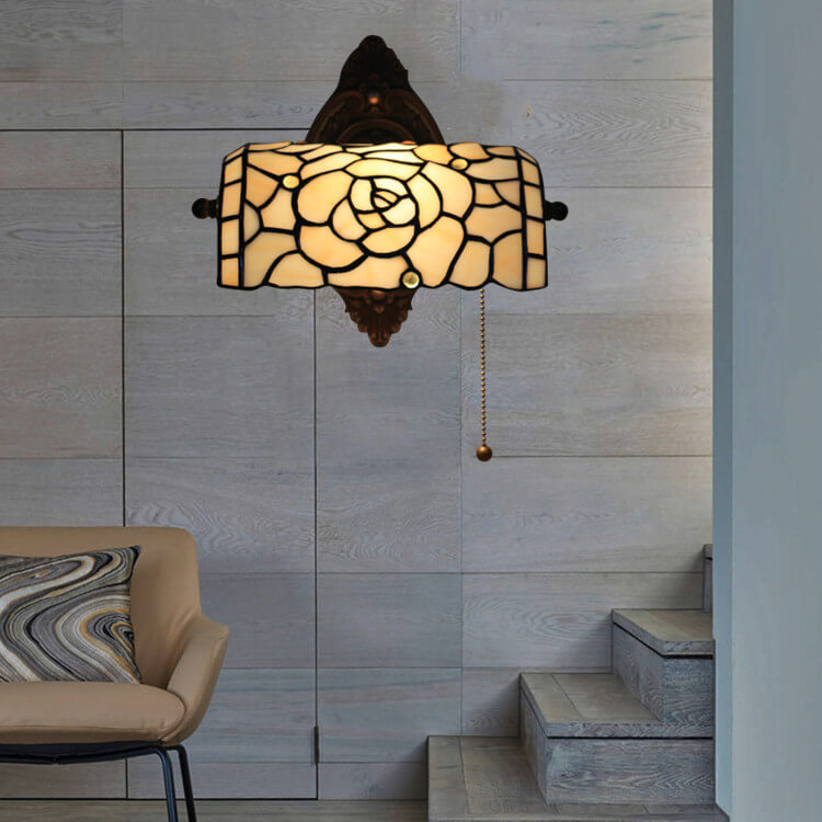 Traditional Tiffany Floral Stained Glass 1-Light Wall Sconce Lamp For Living Room