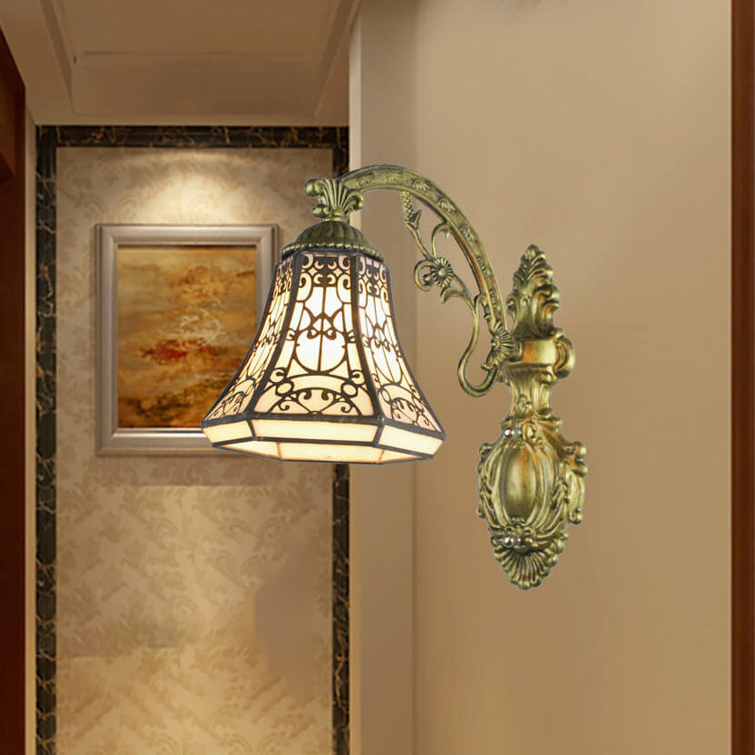 Traditional Tiffany Flower Cup Iron Stained Glass 1-Light Wall Sconce Lamp For Living Room
