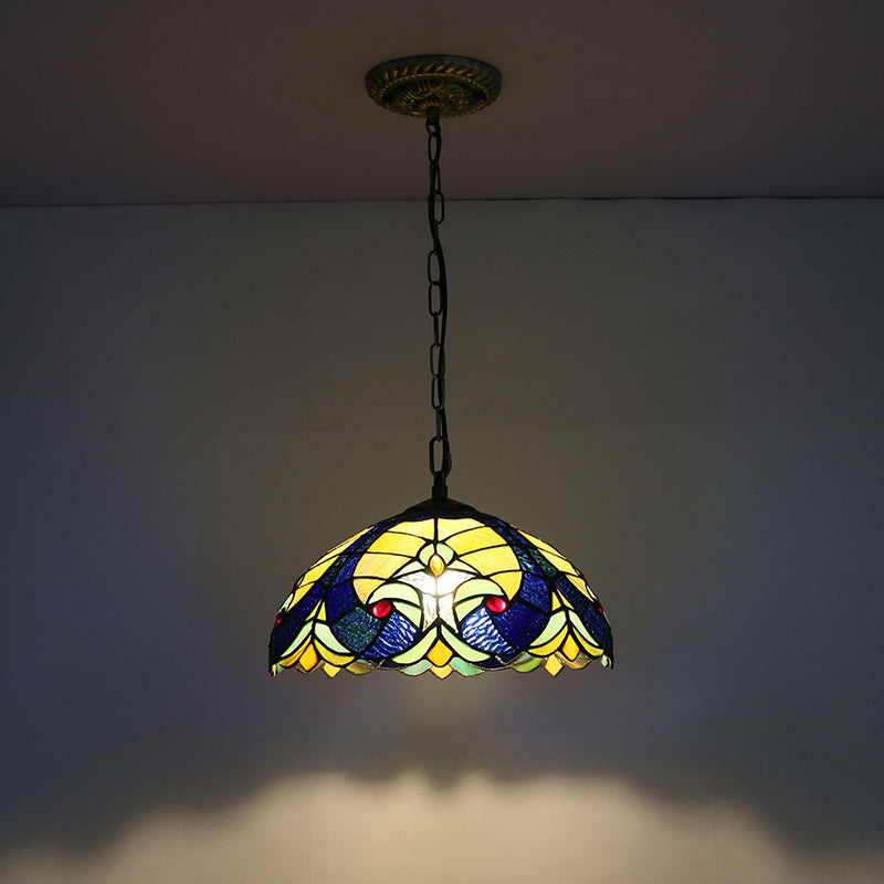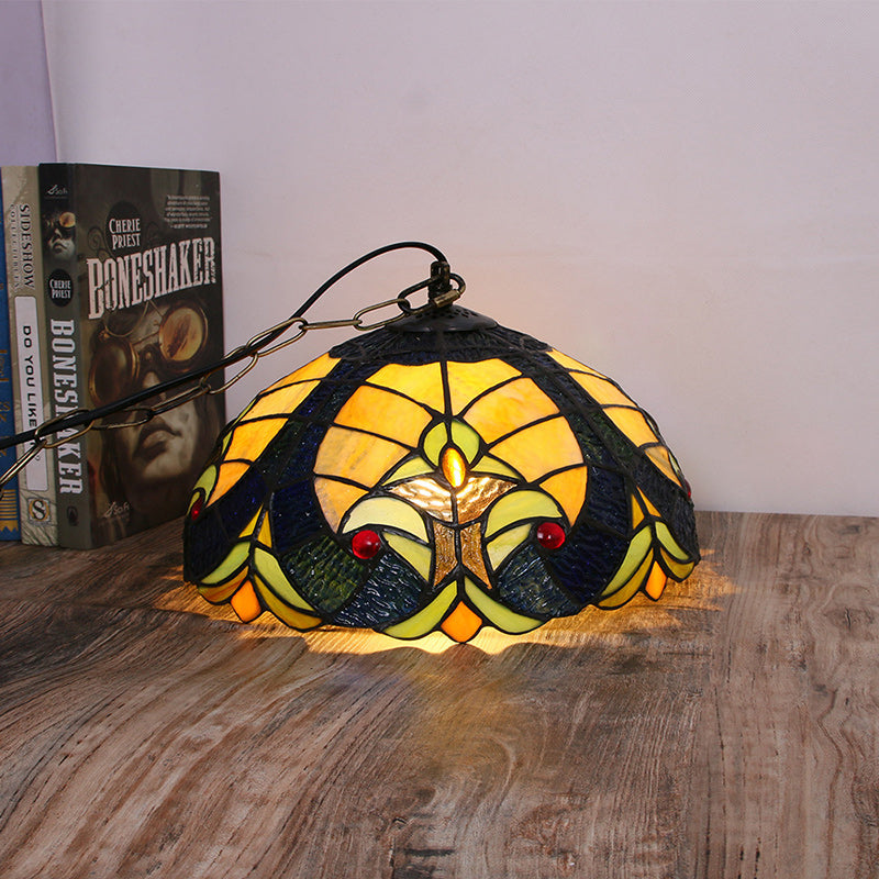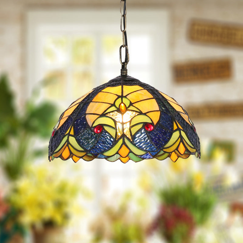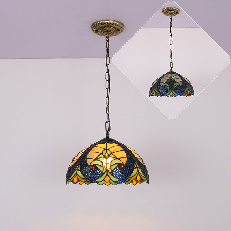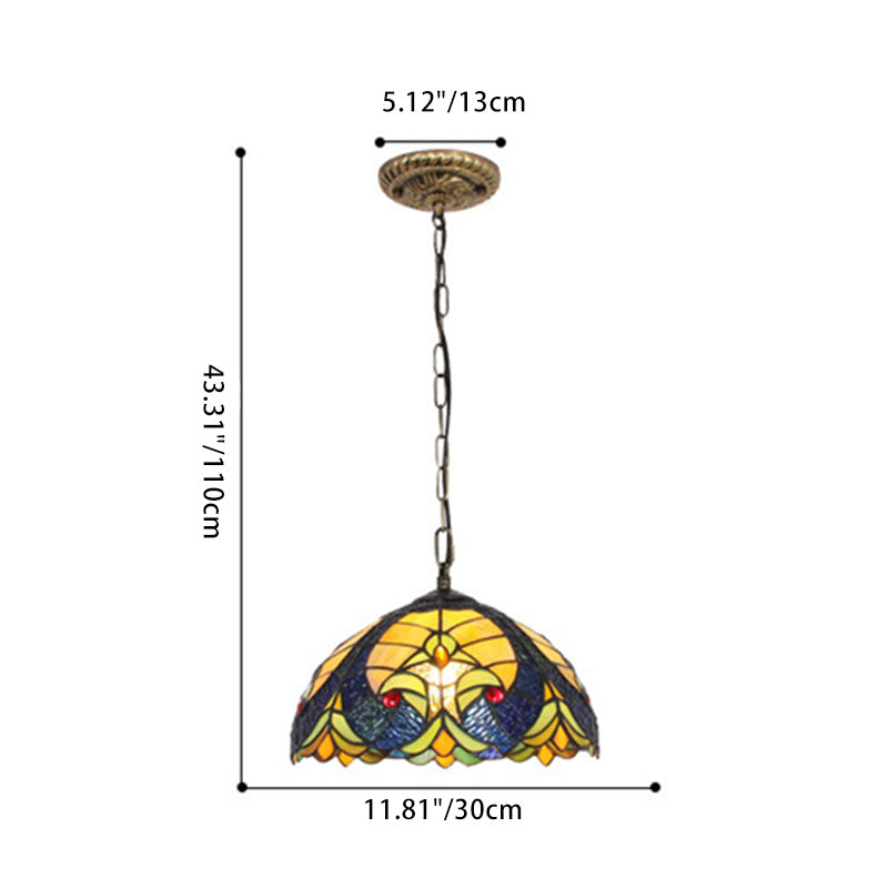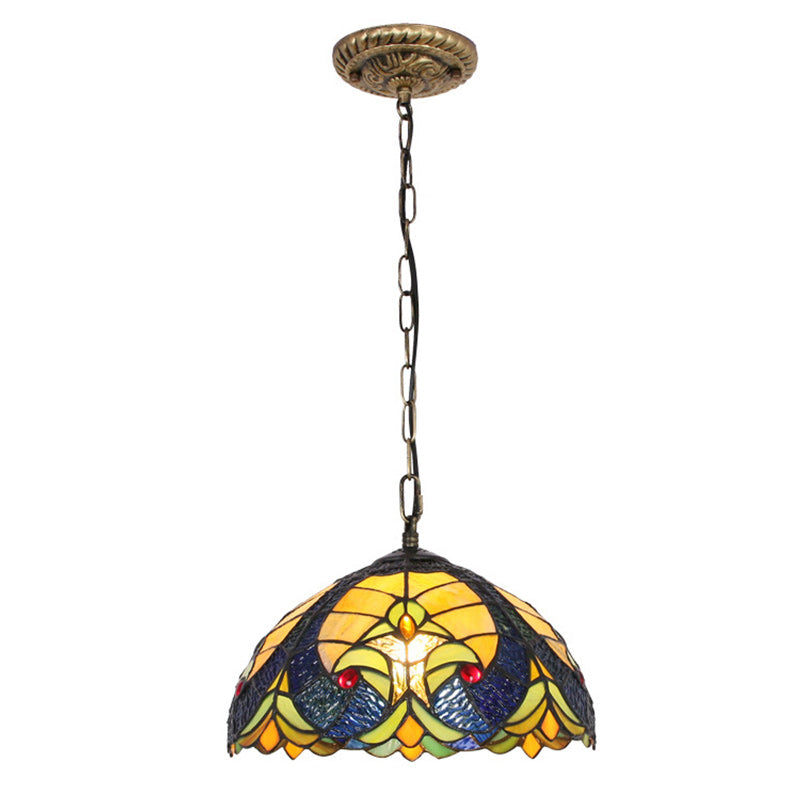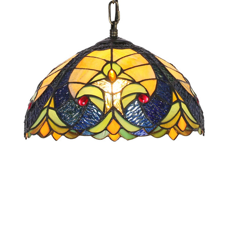 Traditional Tiffany Glass Iron Dome Heart 1-Light Pendant Light For Dining Room