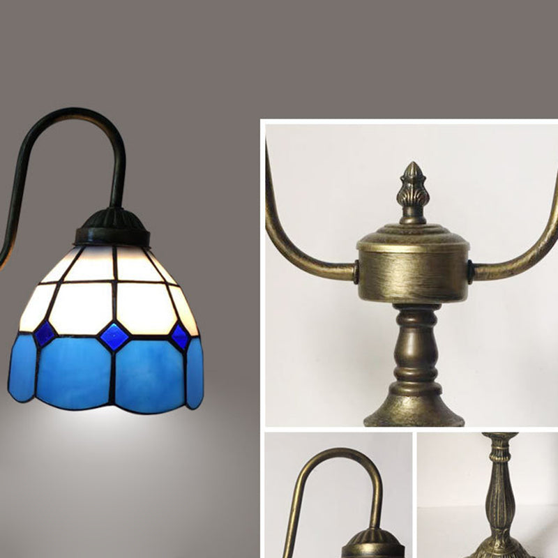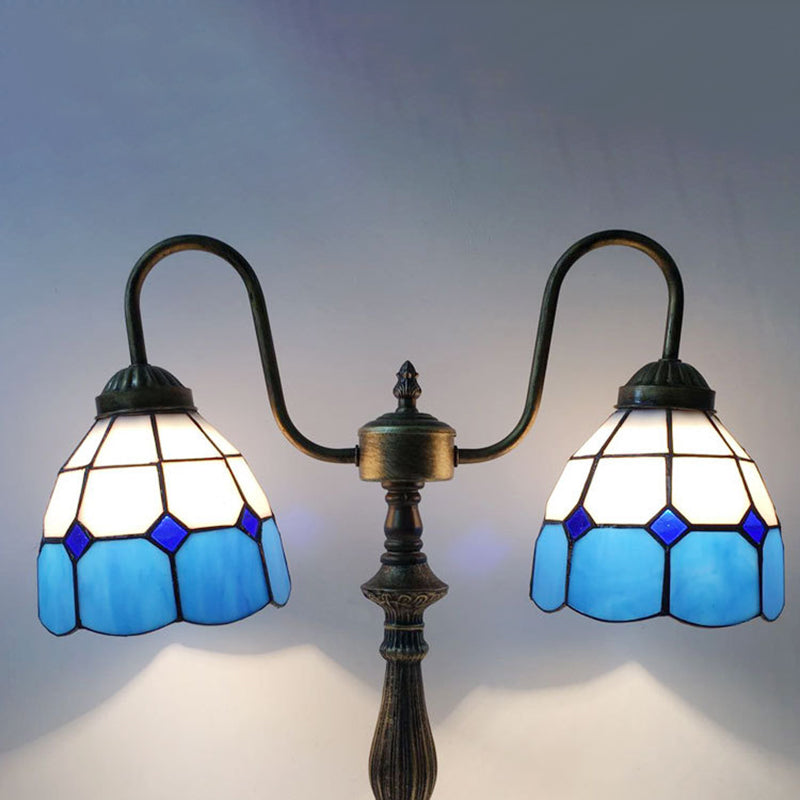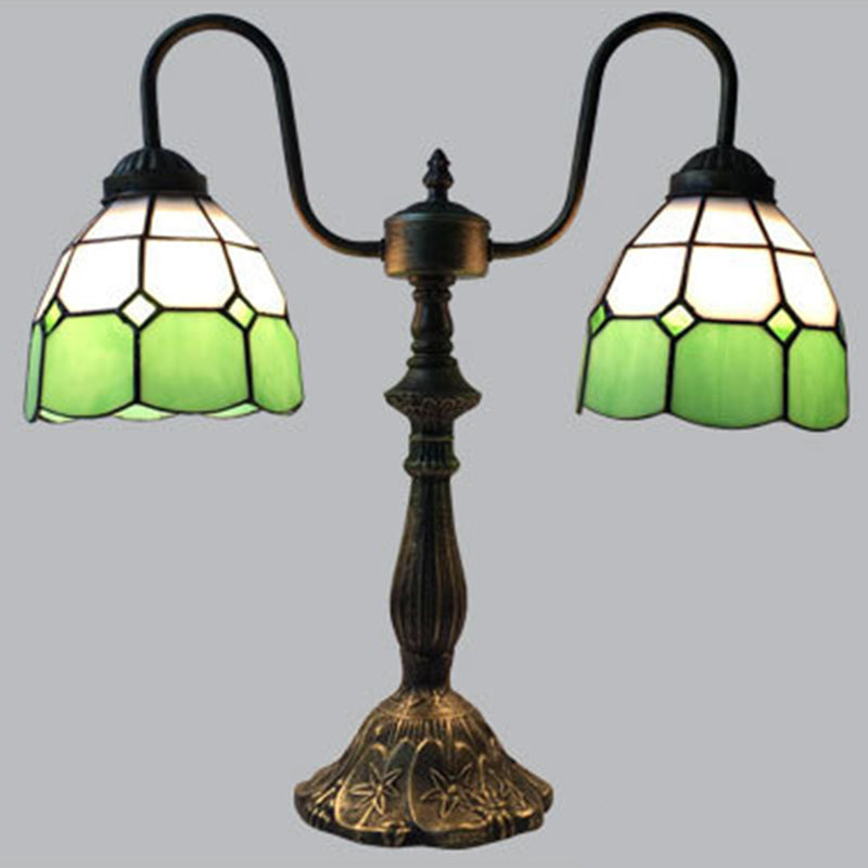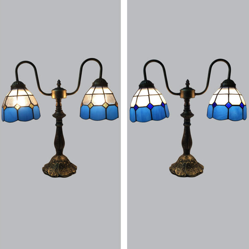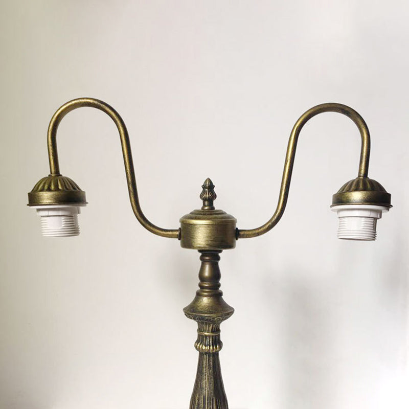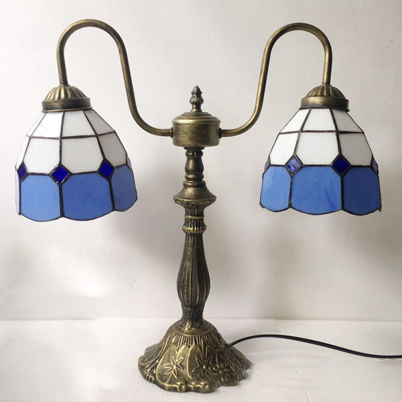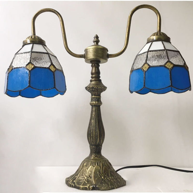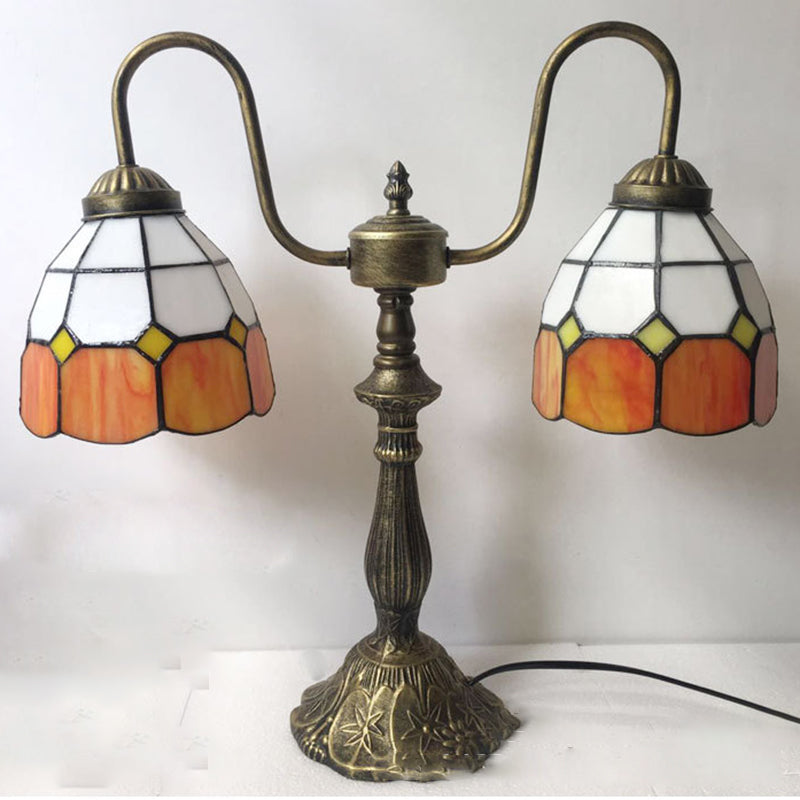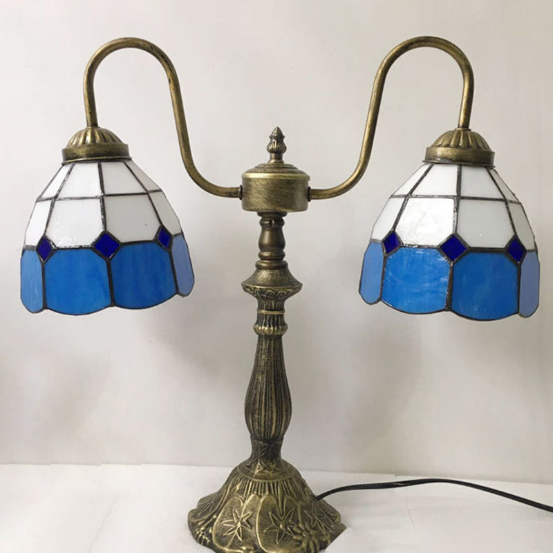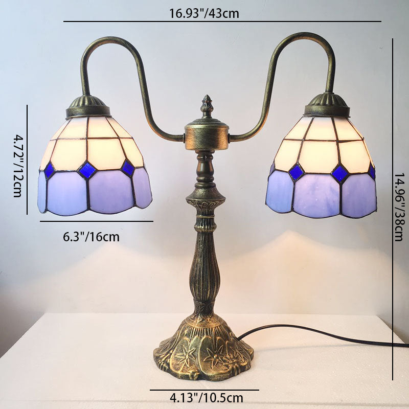Traditional Tiffany Glass Iron Resin Swan Neck Dome Beads 2-Light Table Lamp For Bedside