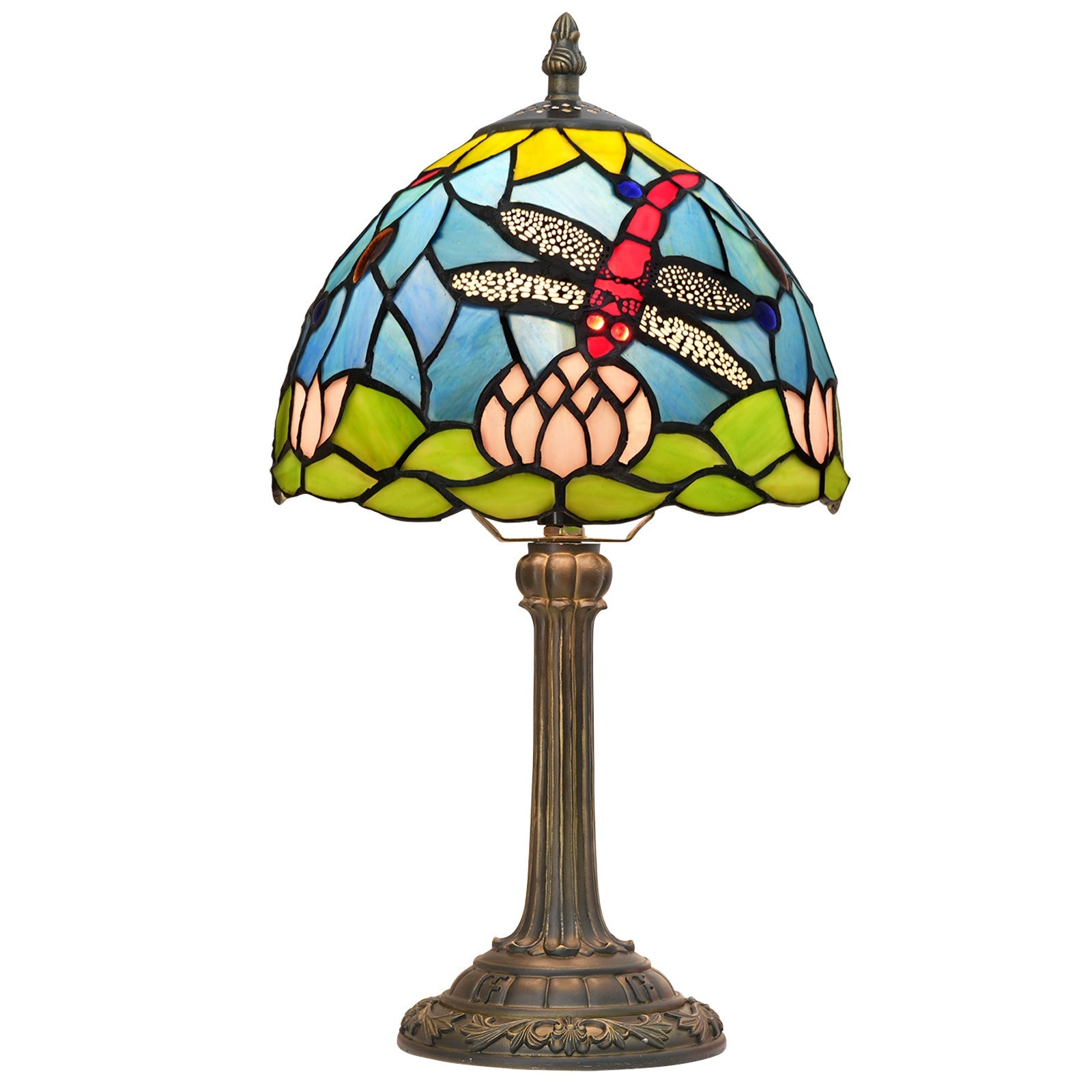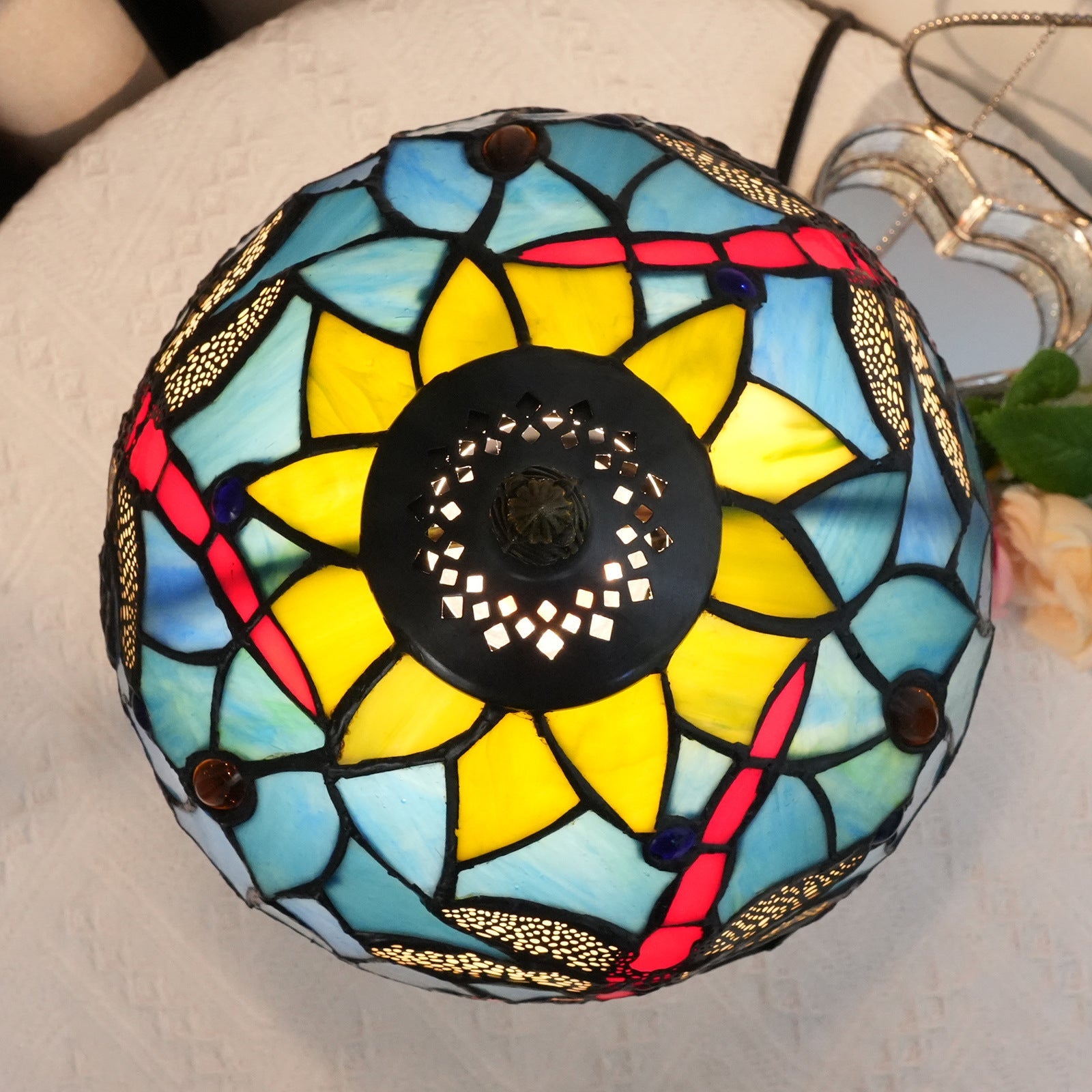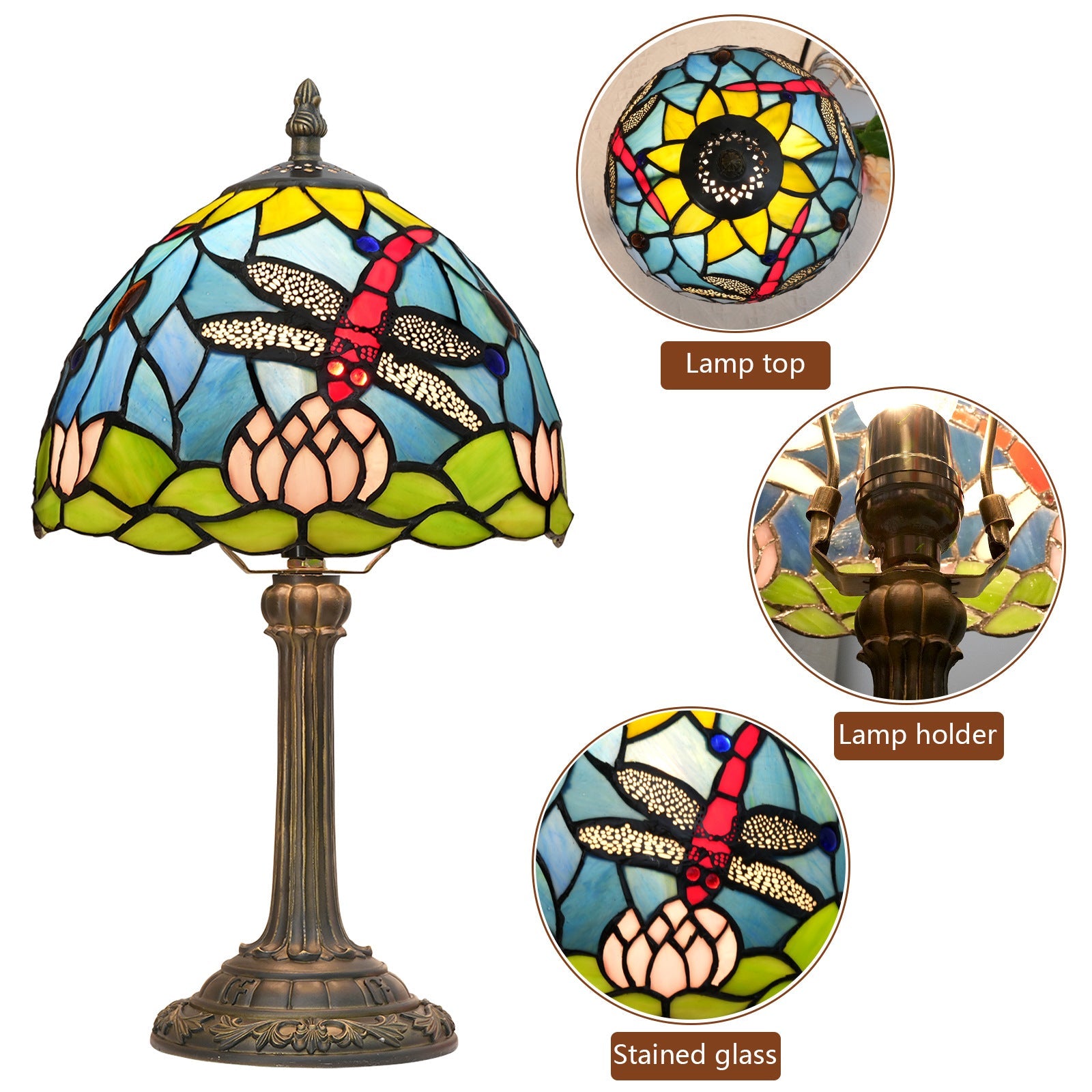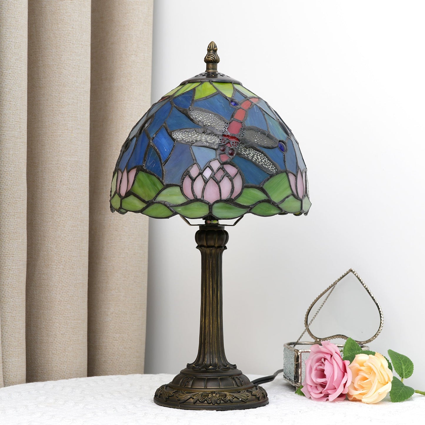 Traditional Tiffany Glass Resin Dome Dragonfly Lotus 1-Light Table Lamp For Study