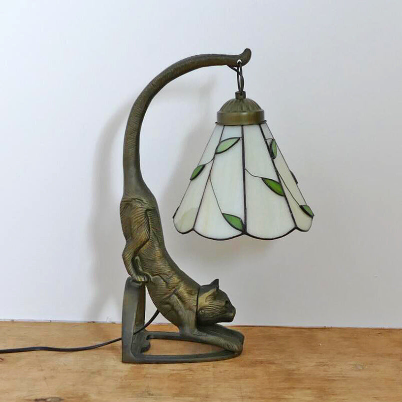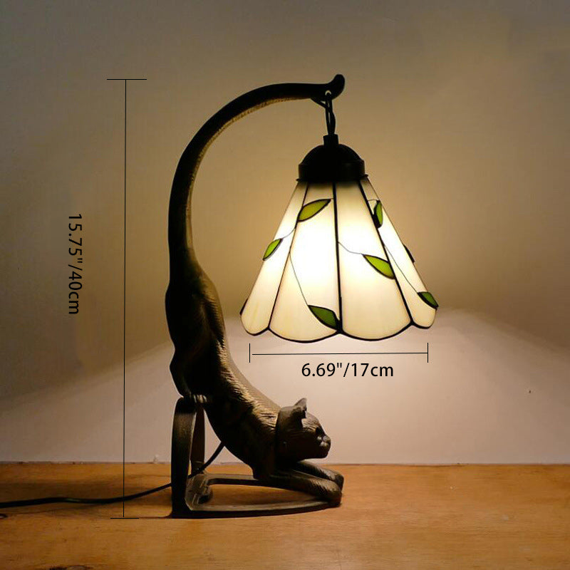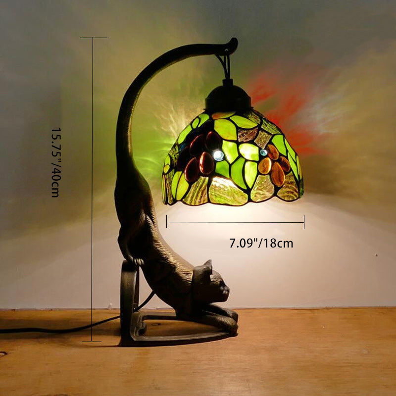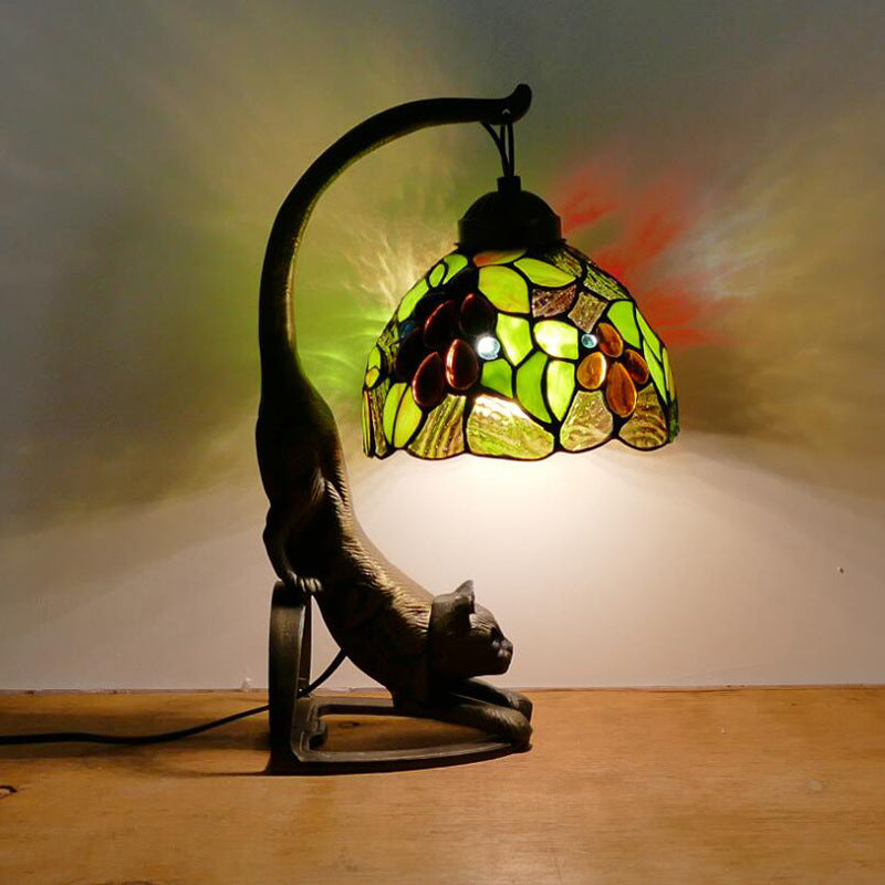 Traditional Tiffany Grape Leaf Curved Round Glass Iron 1-Light Table Lamp For Living Room