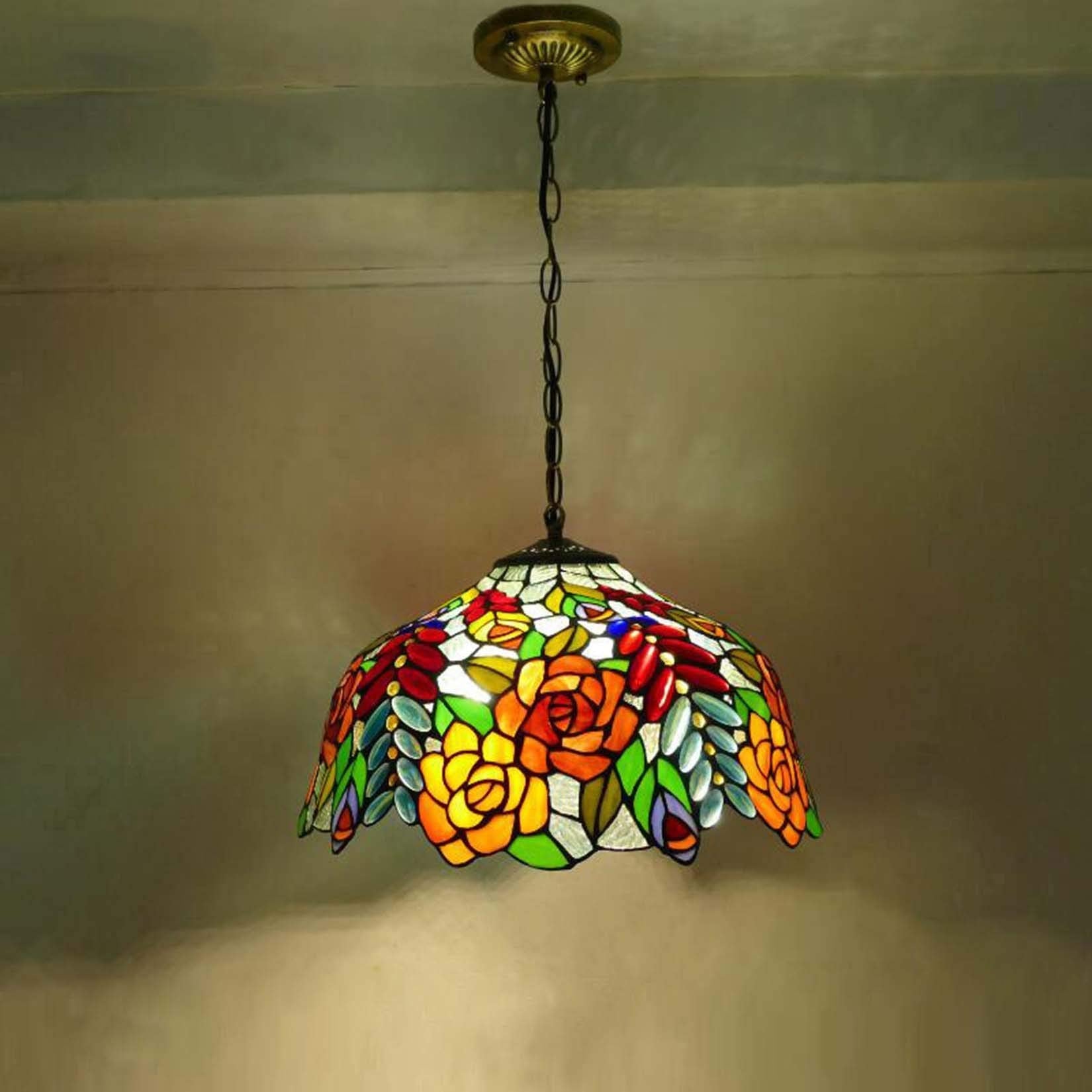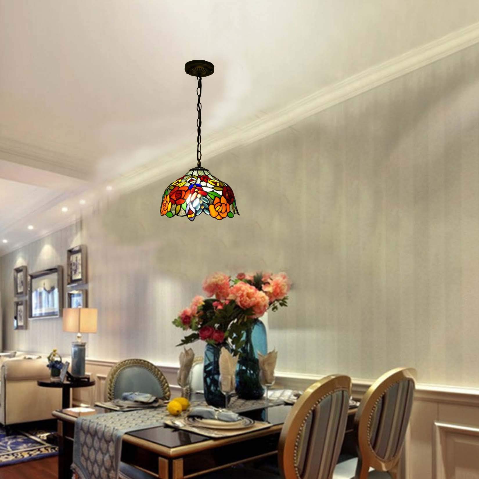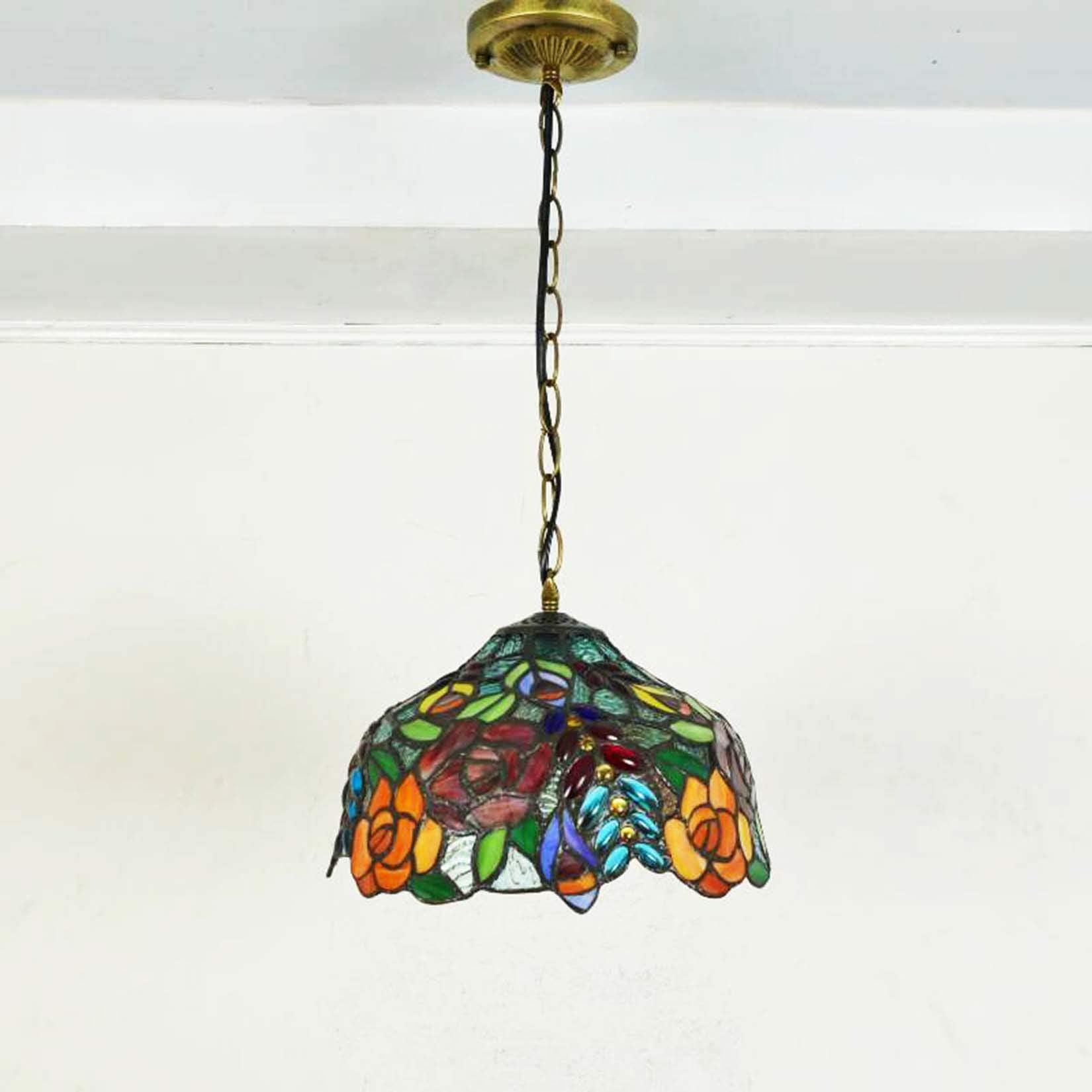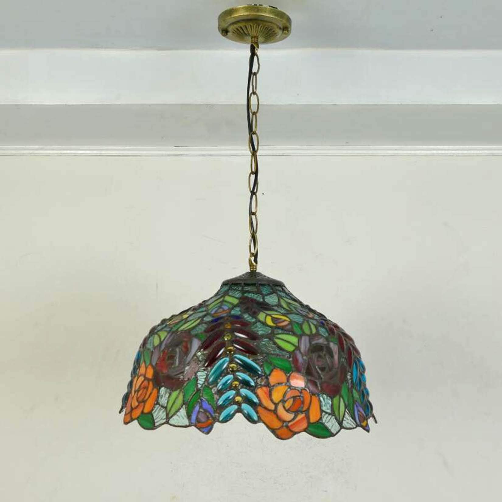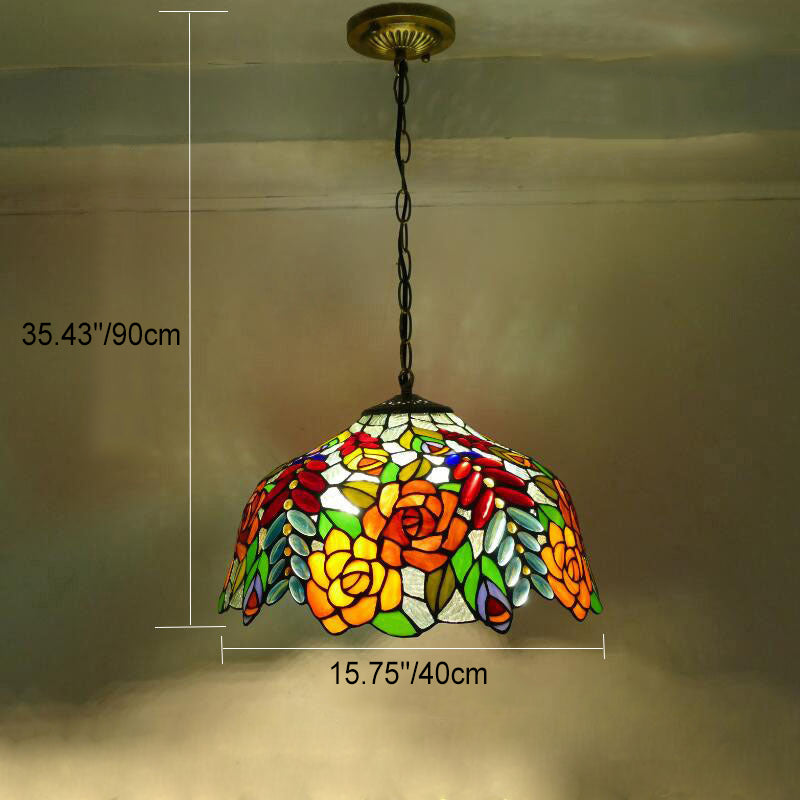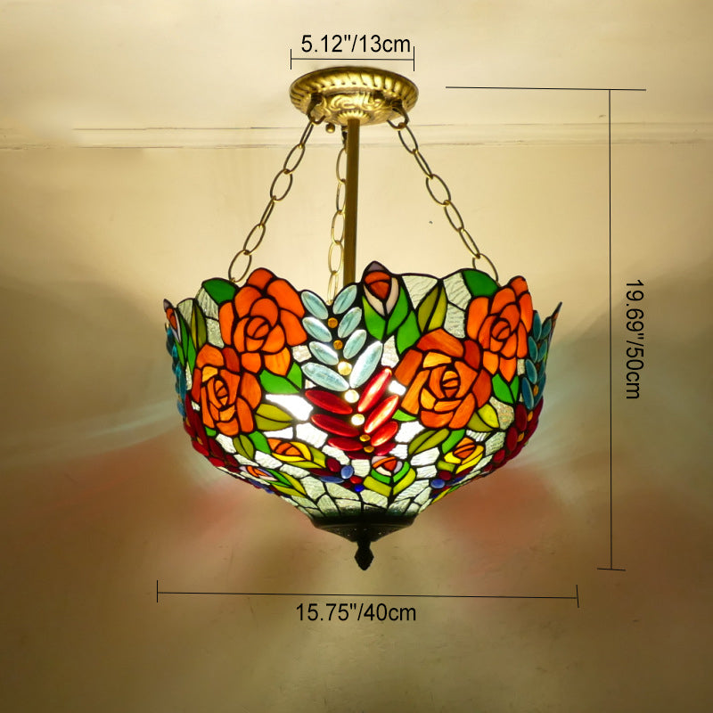 Traditional Tiffany Grape Rose Flower Pattern Stained Glass Round 2/3-Light Chandelier For Living Room