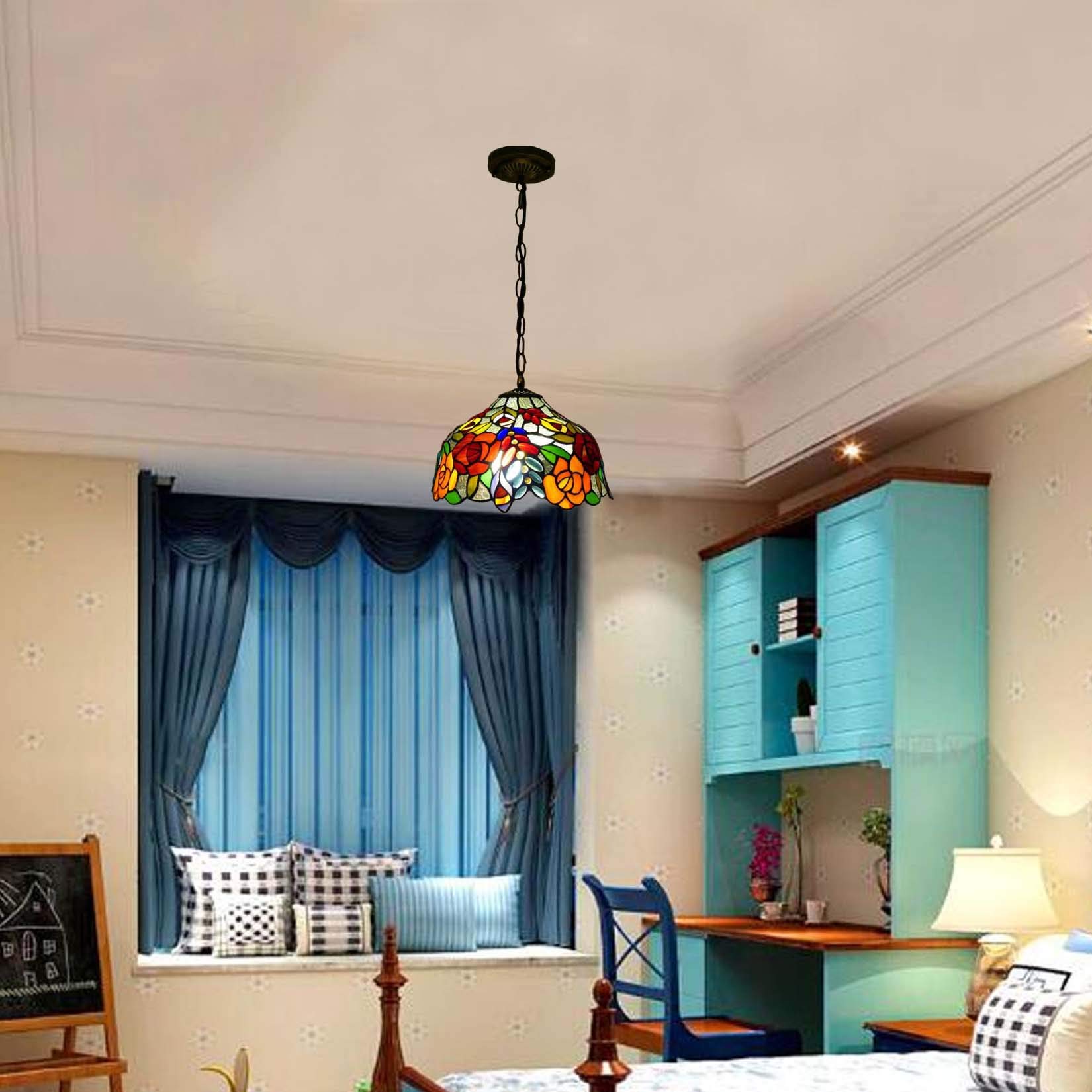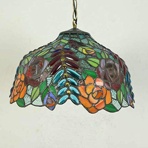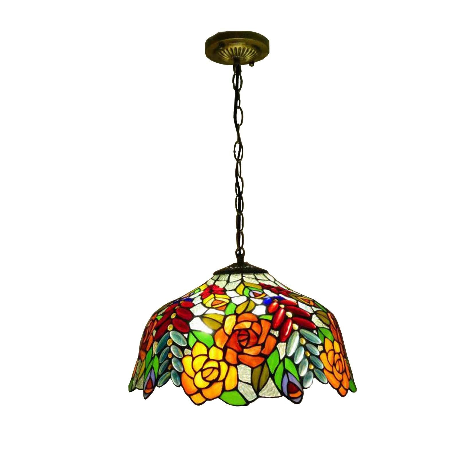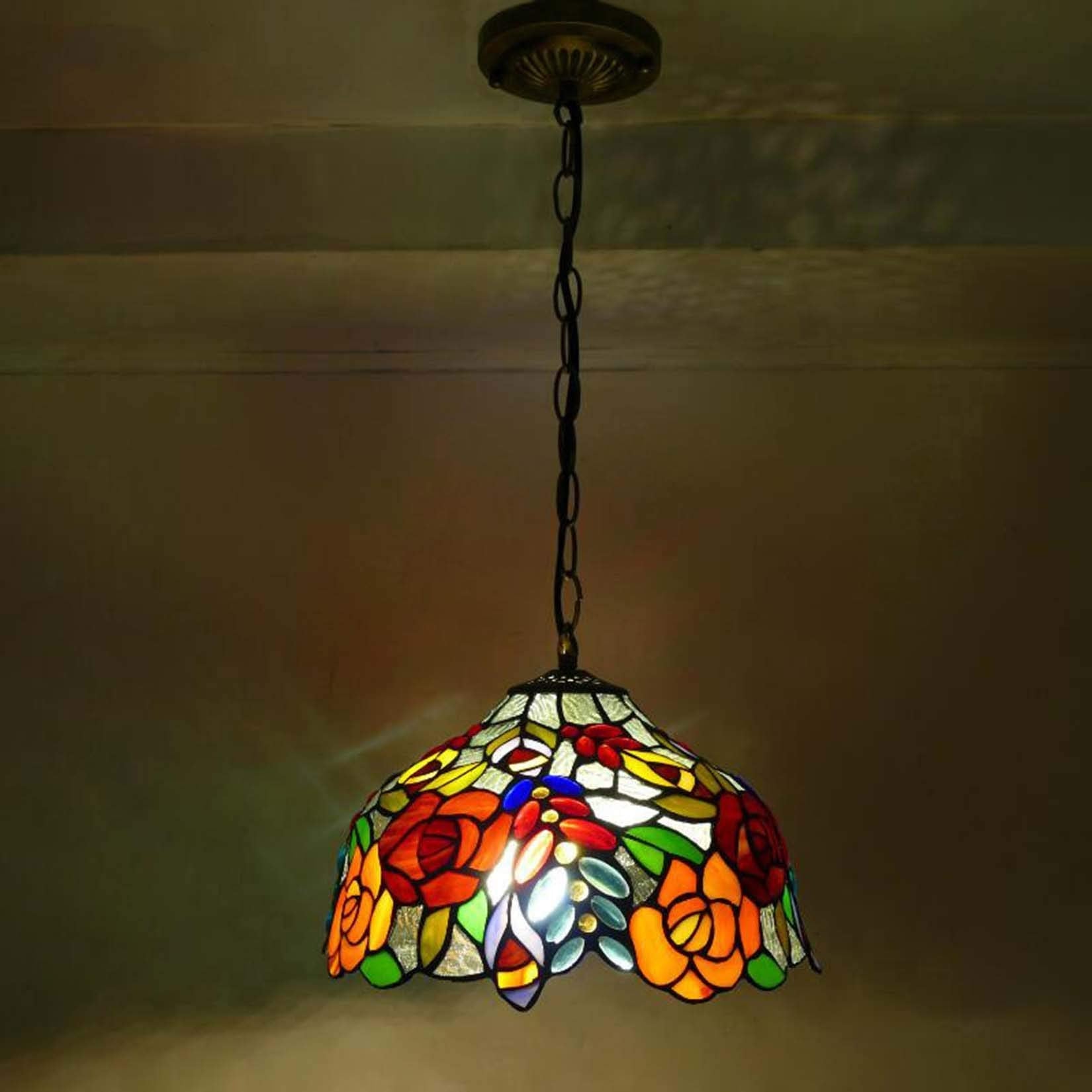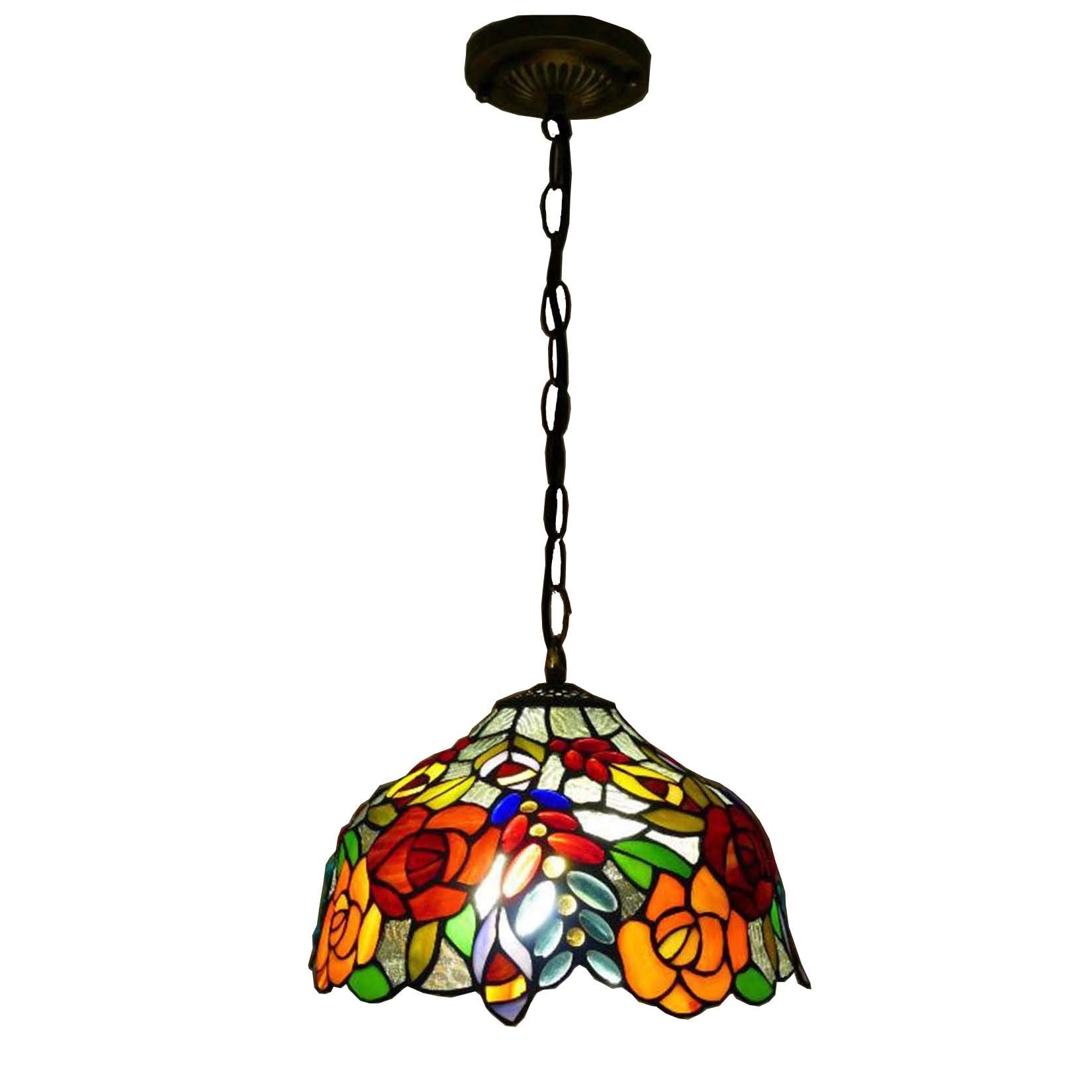 Traditional Tiffany Grape Rose Flower Pattern Stained Glass Round 2/3-Light Chandelier For Living Room