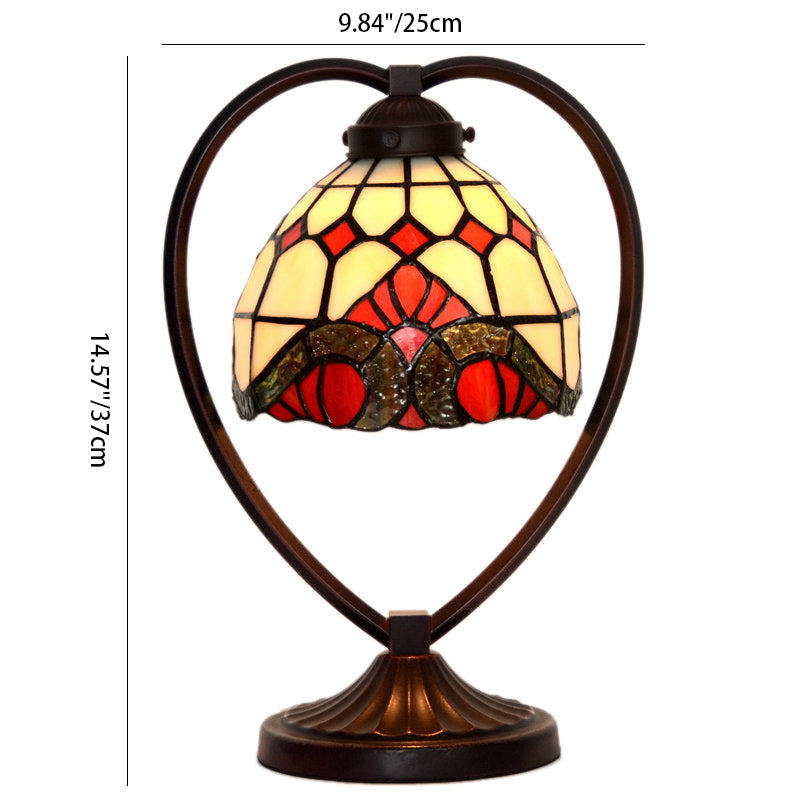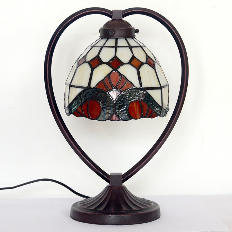 Traditional Tiffany Heart Zinc Alloy Stained Glass 1-Light Table Lamp For Bedroom