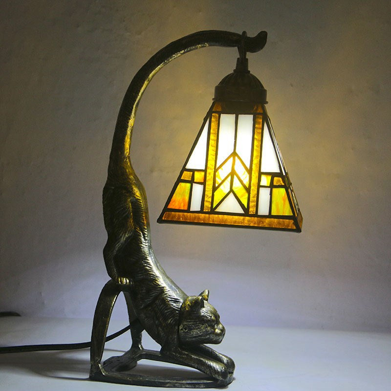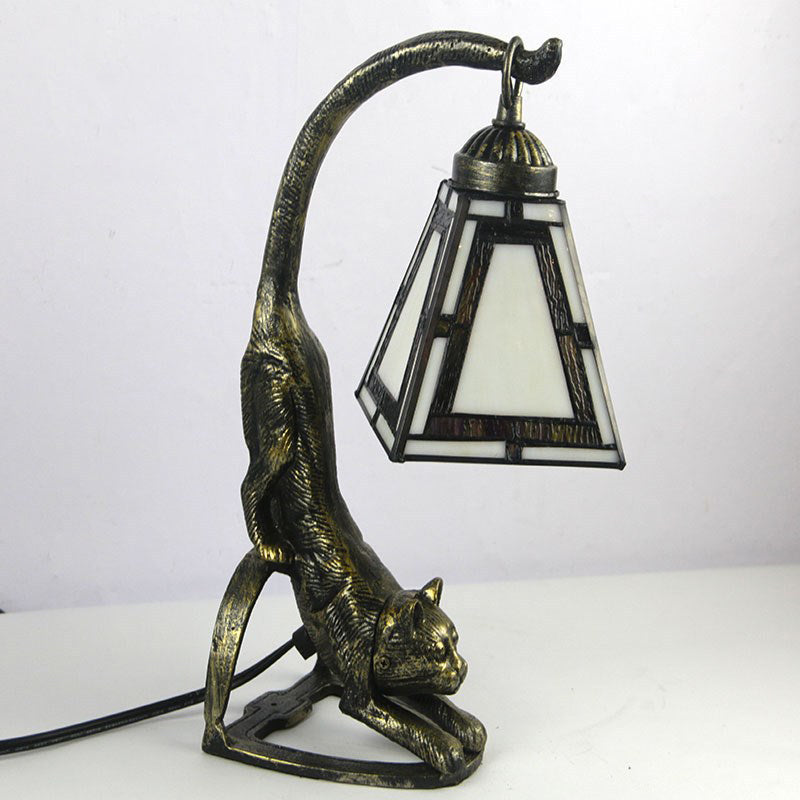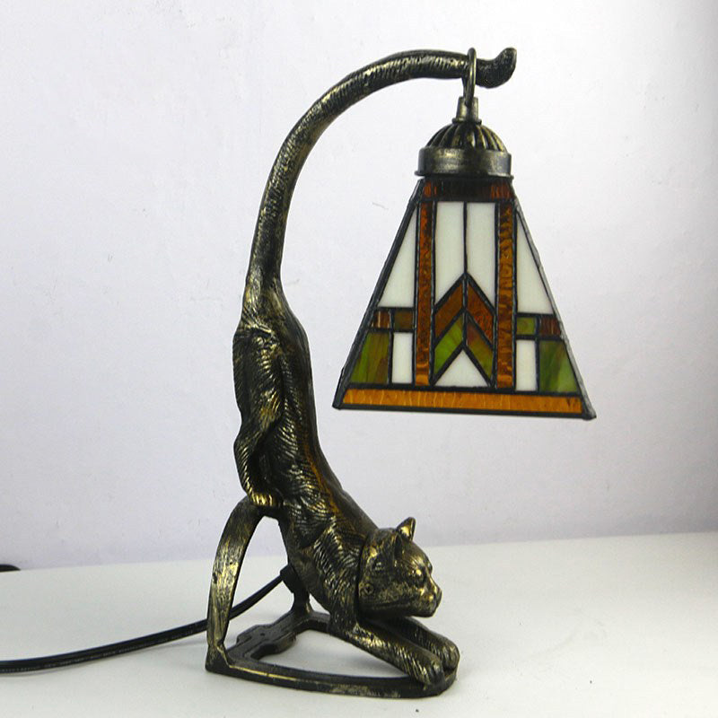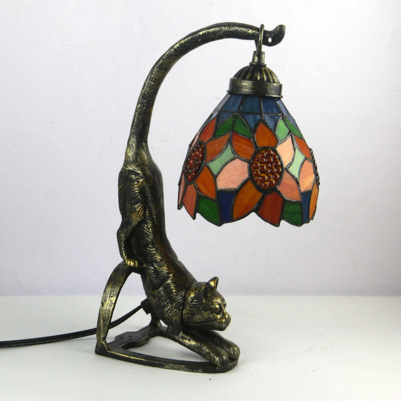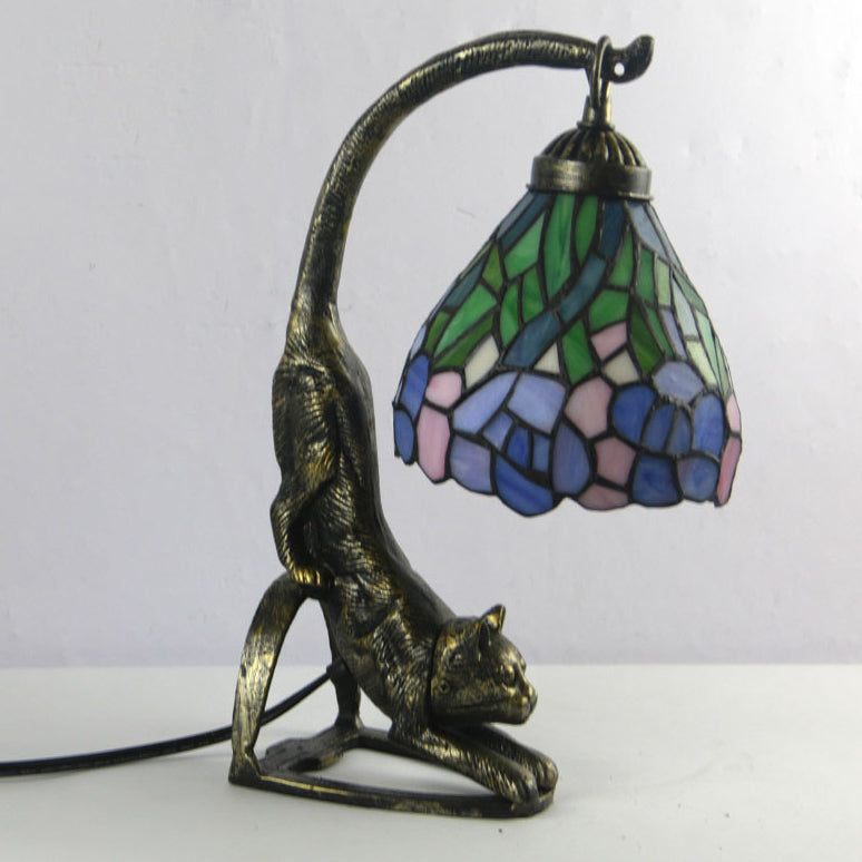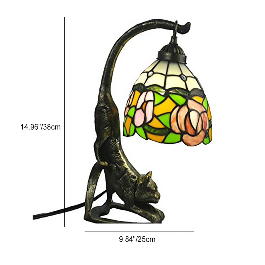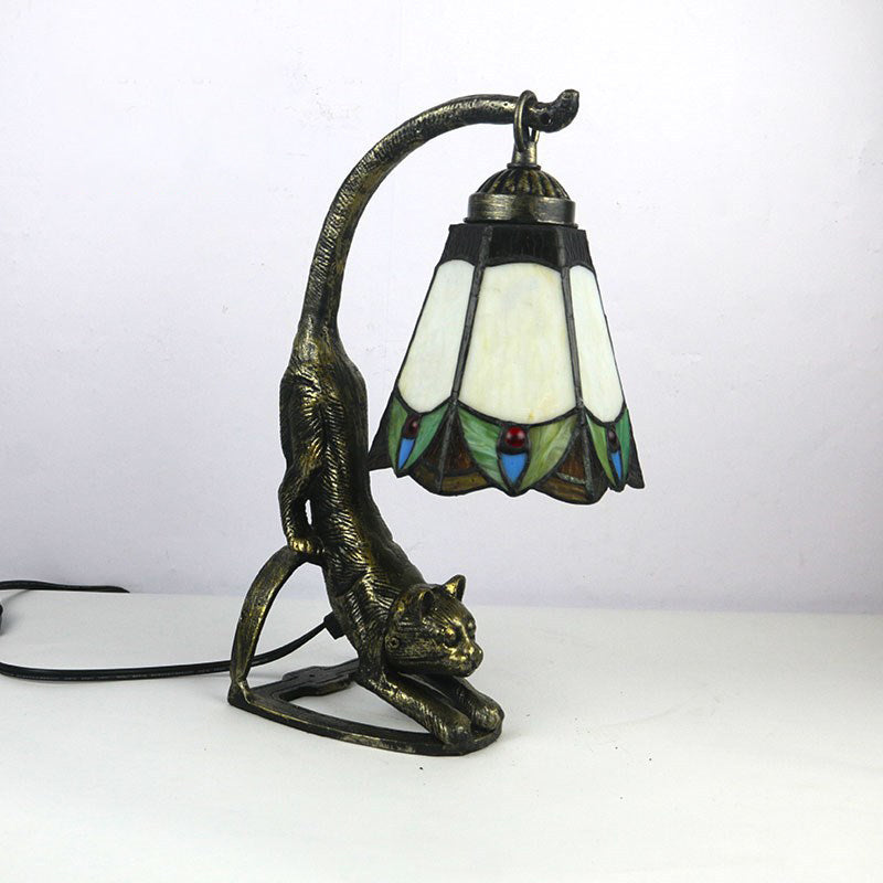 Traditional Tiffany Leopard Ladder Flower Cup Iron Glass 1-Light Table Lamp For Bedroom