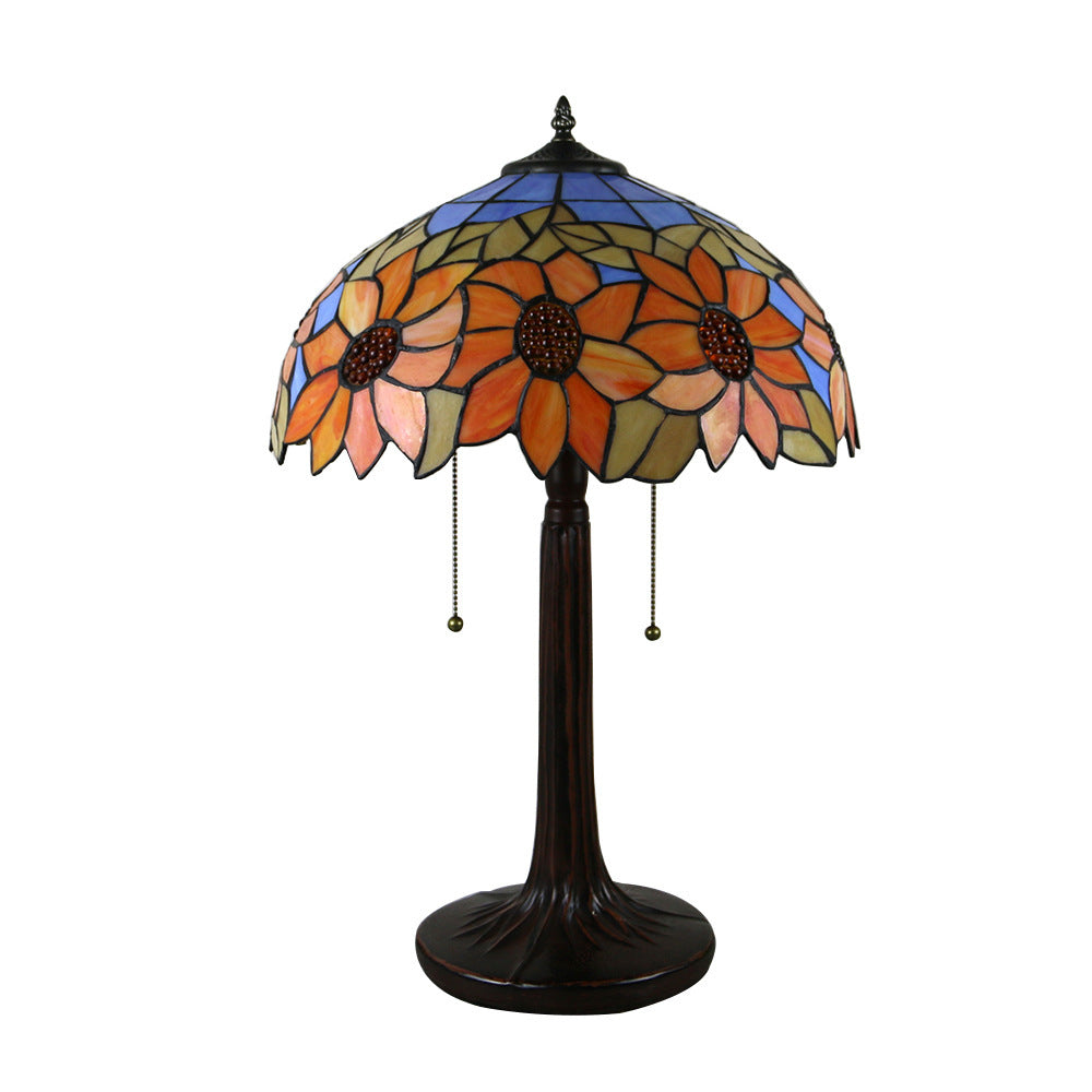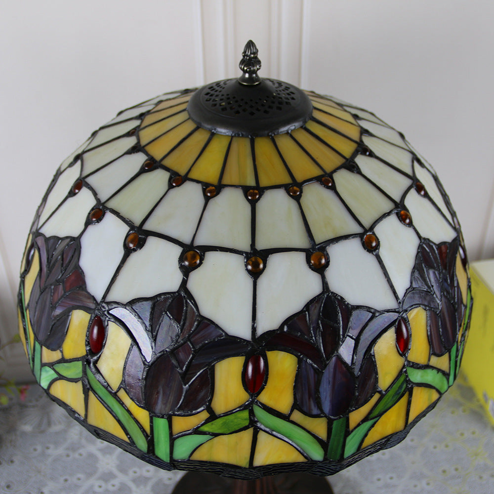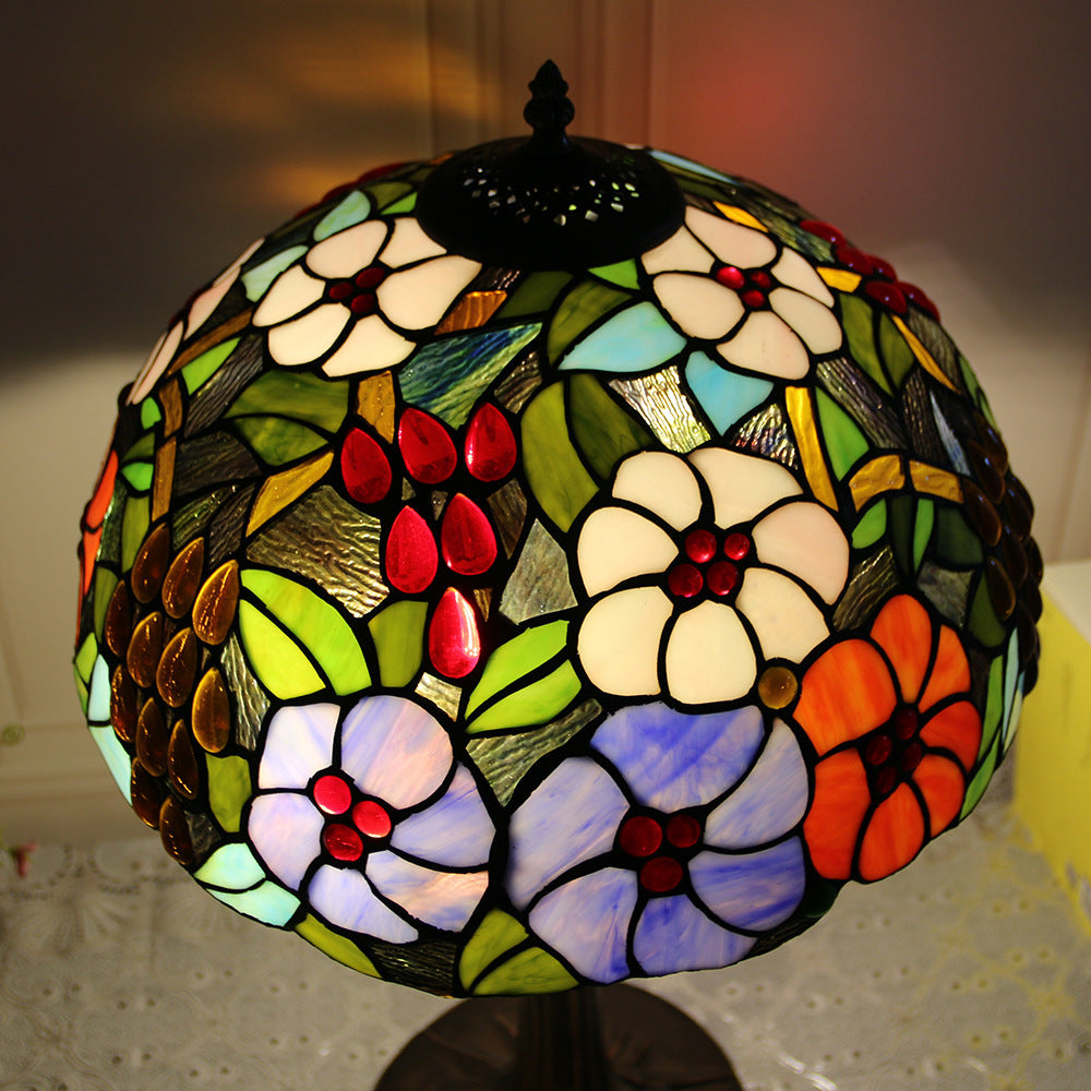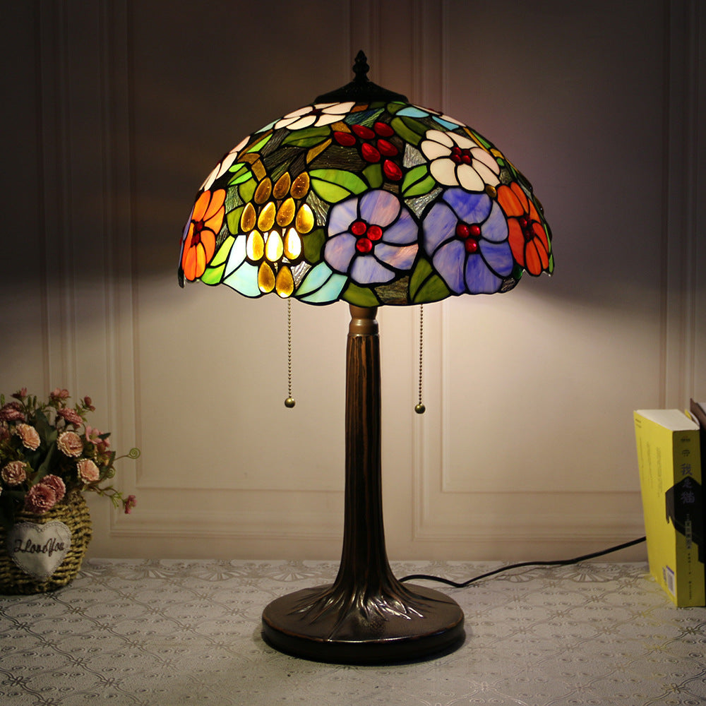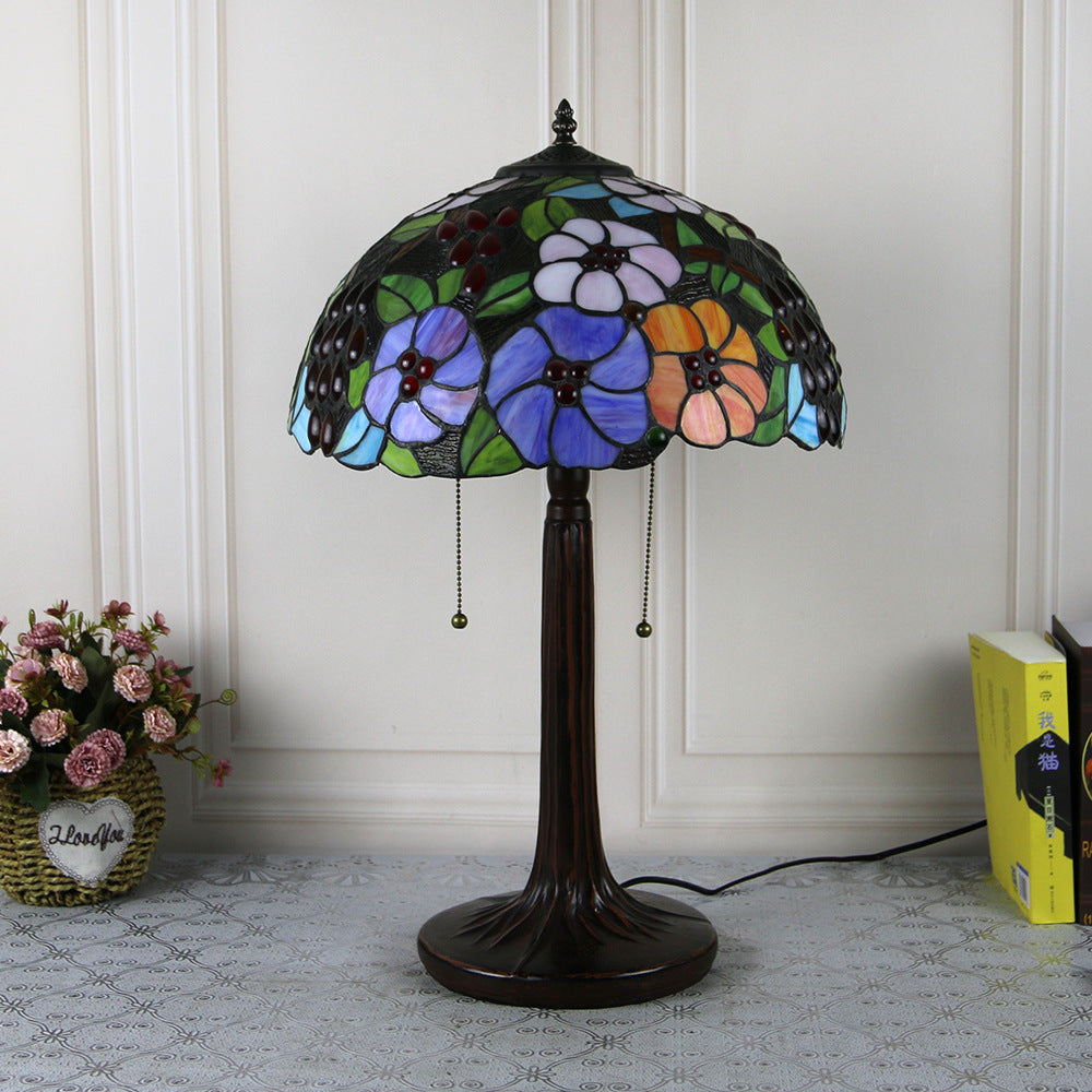 Traditional Tiffany Pastoral Rose Flower Stained Glass 2-Light Table Lamp For Bedroom