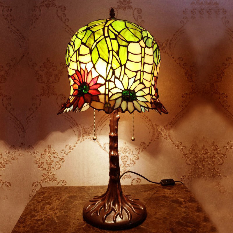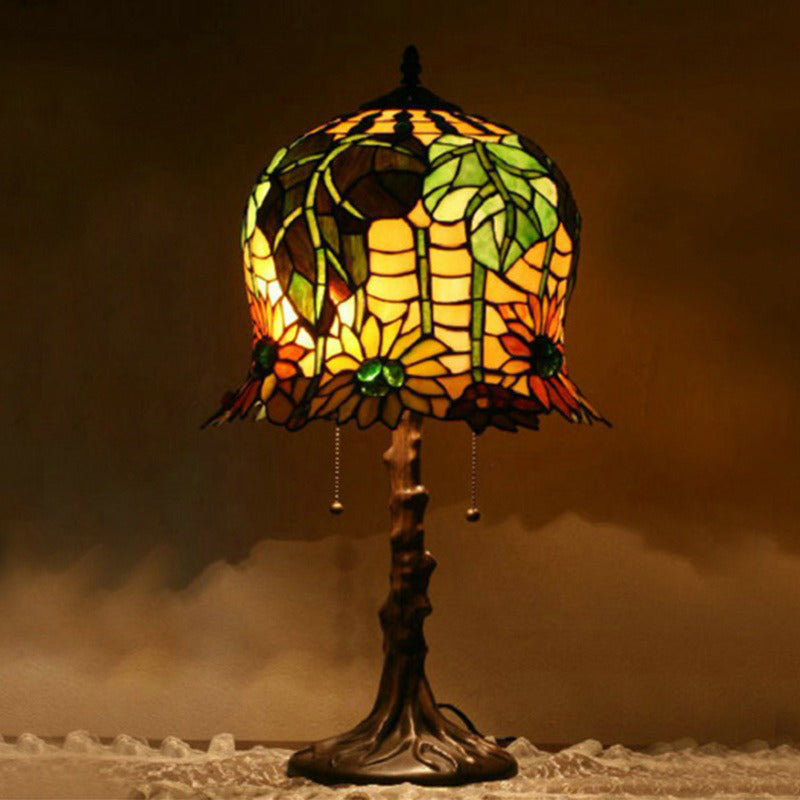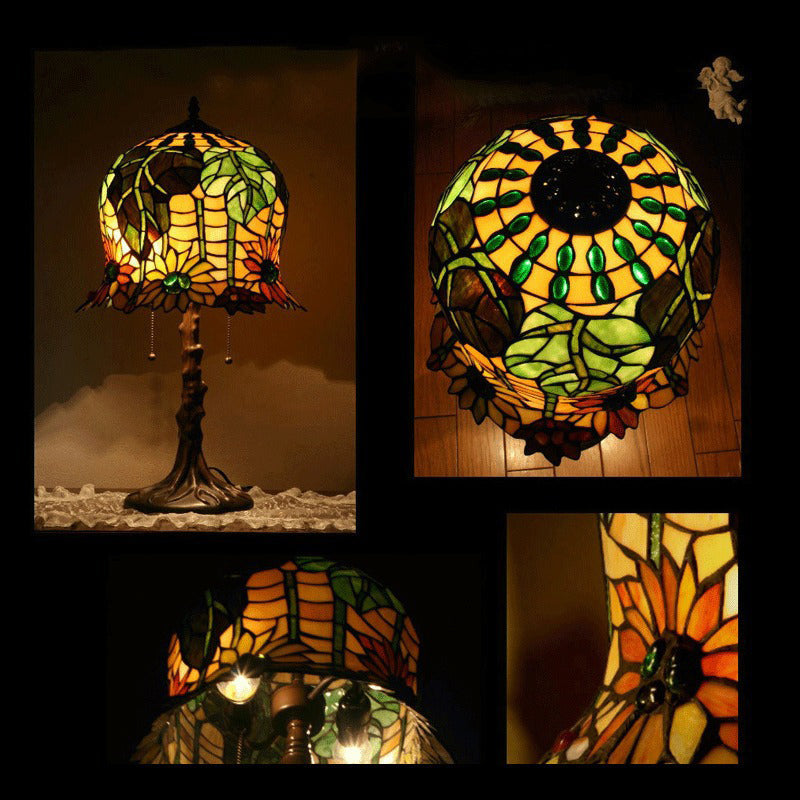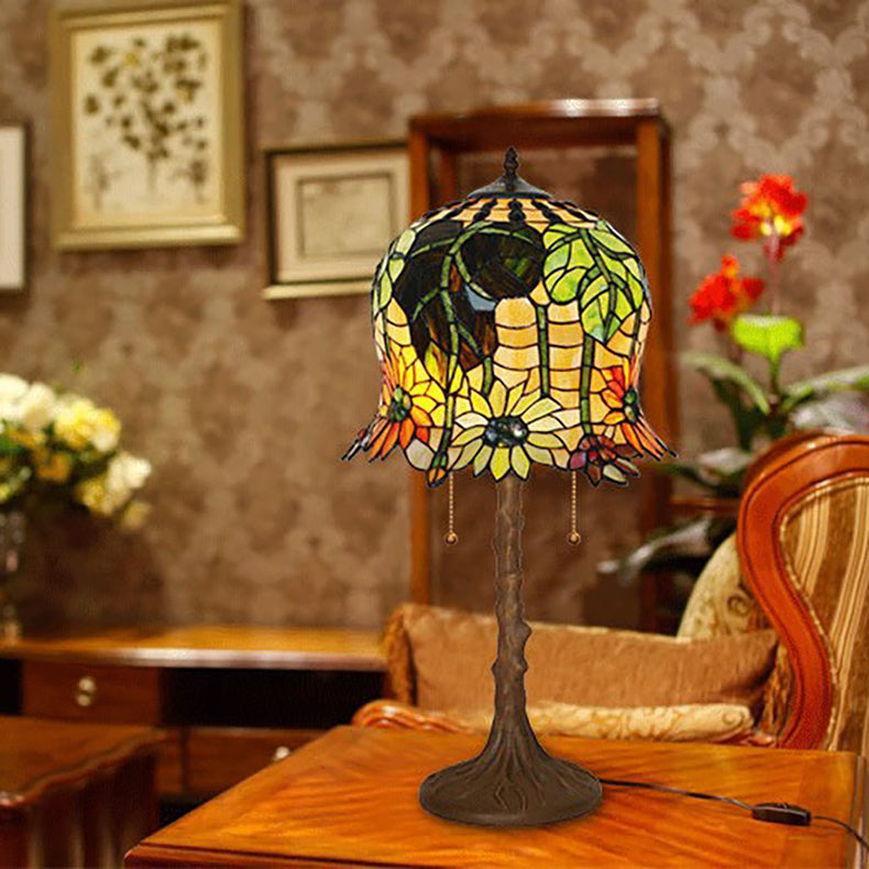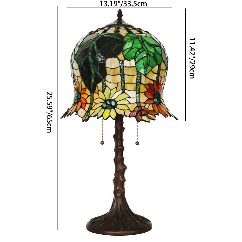 Traditional Tiffany Pod-like Sunflower Pattern Iron Glass 2-Light Table Lamp For Bedroom