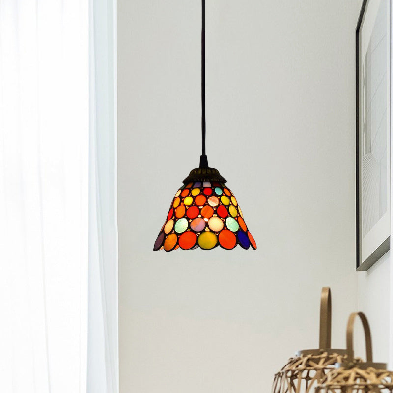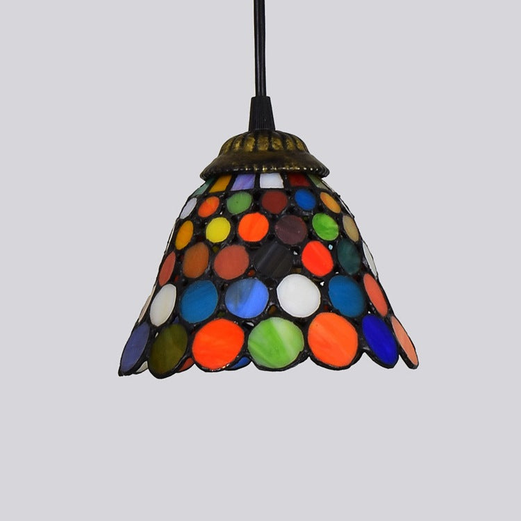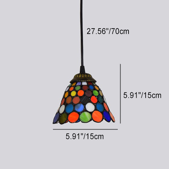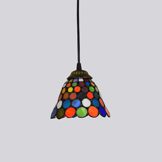 Traditional Tiffany Polka Dot Cone Iron Stained Glass 1-Light Pendant Light For Bedroom
