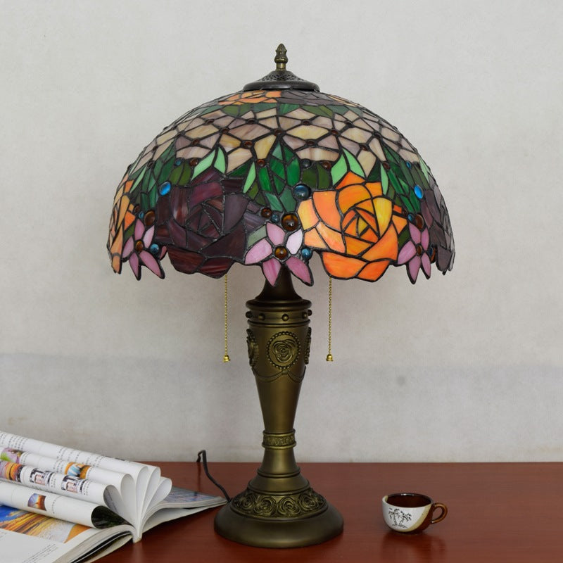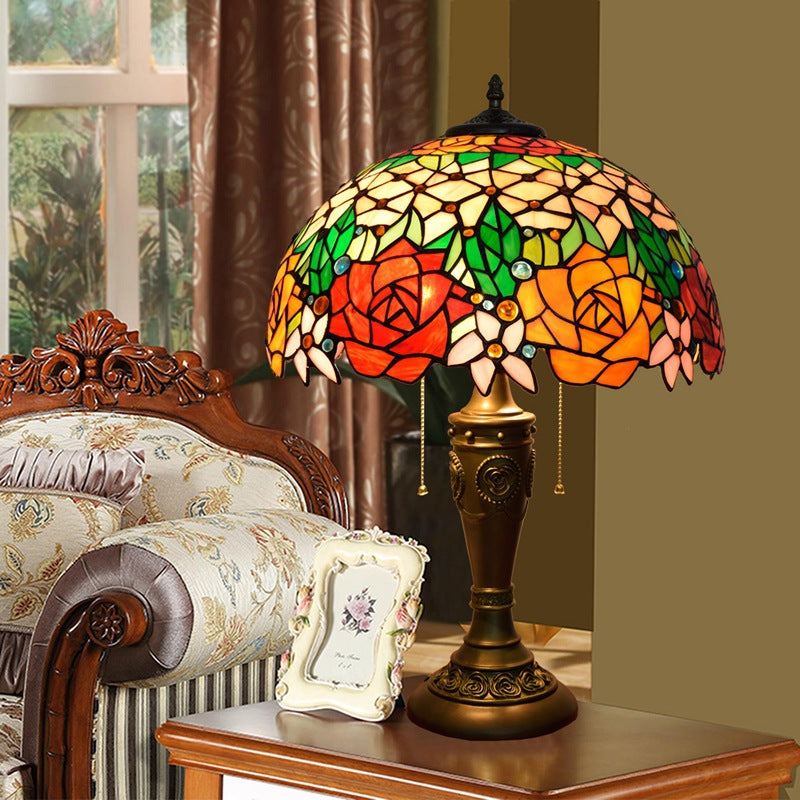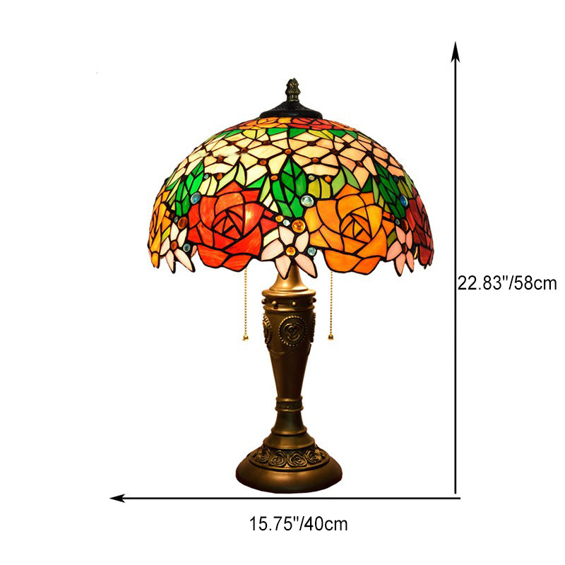 Traditional Tiffany Rose Umbrella Resin Stained Glass 2-Light Table Lamp For Bedroom