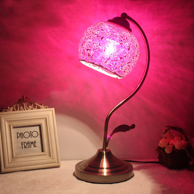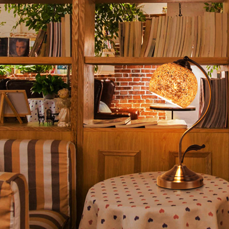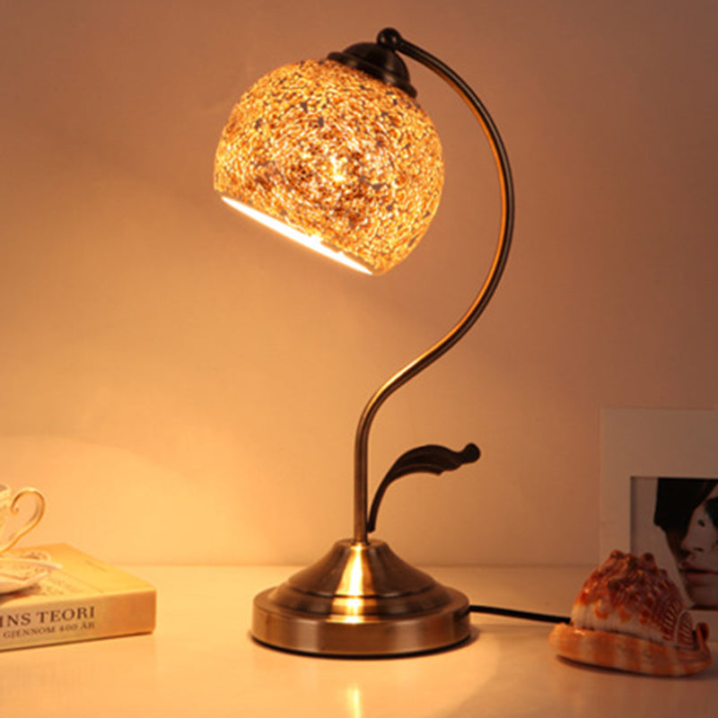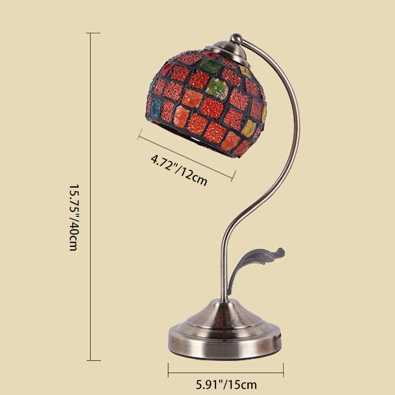 Traditional Tiffany Round Dome Curved Pole Hardware Base Stained Glass Shade 1-Light Table Lamp For Bedroom