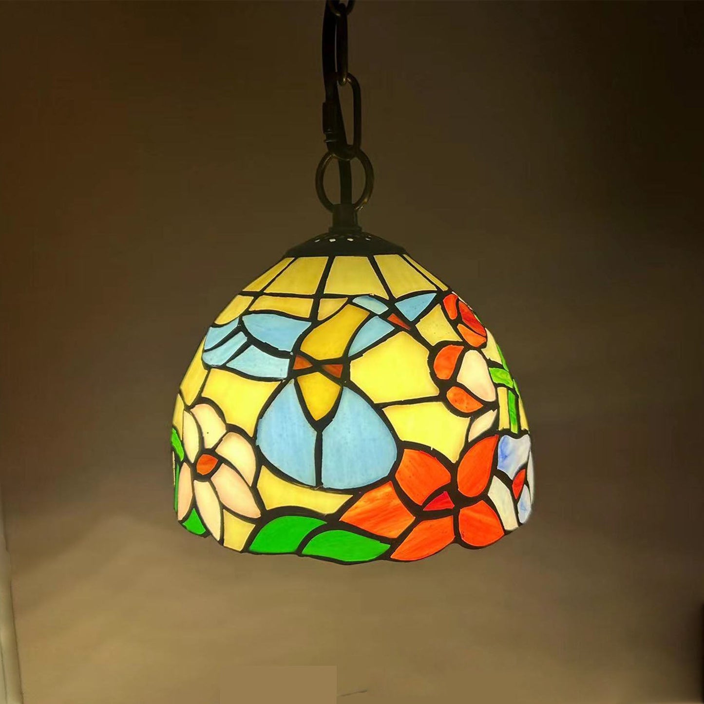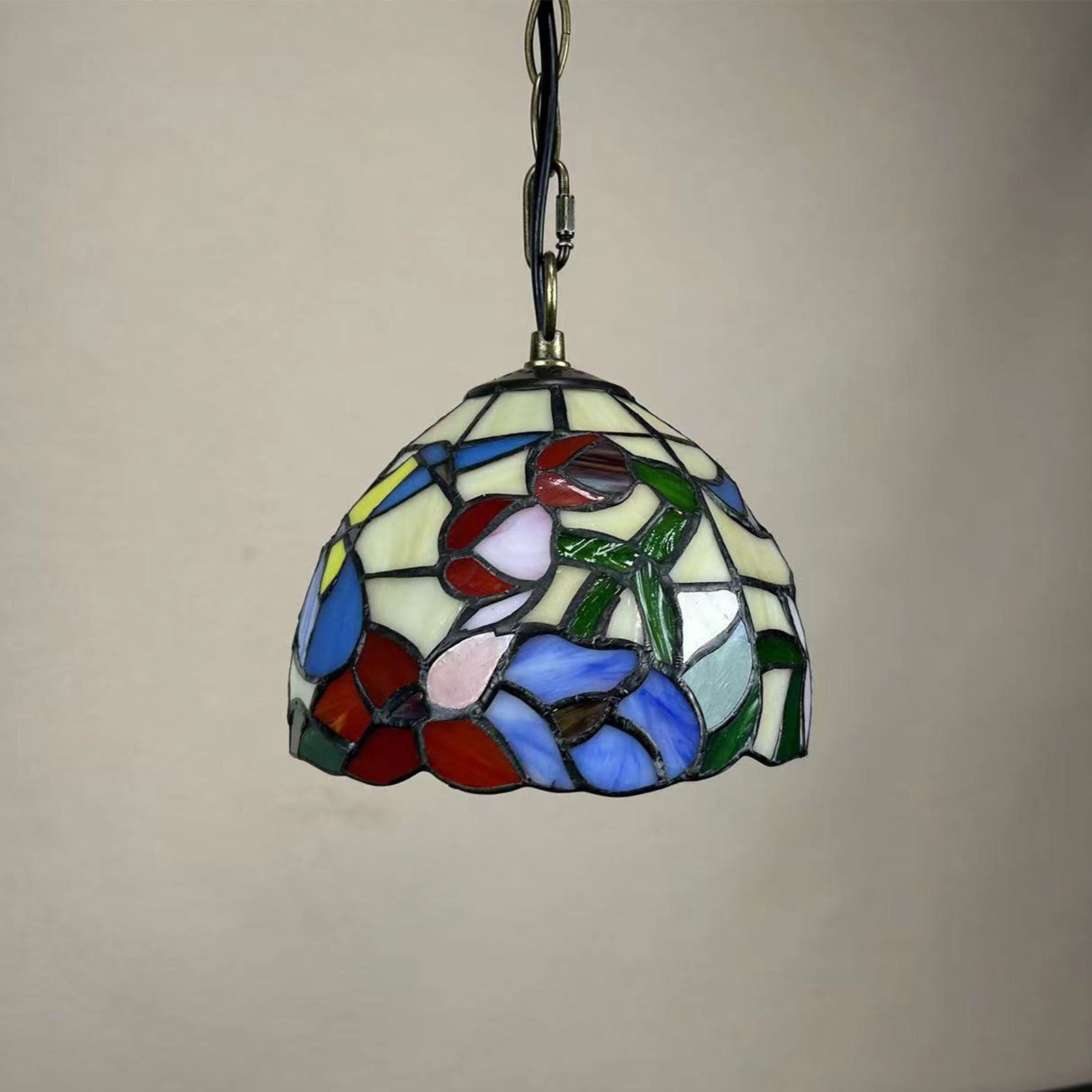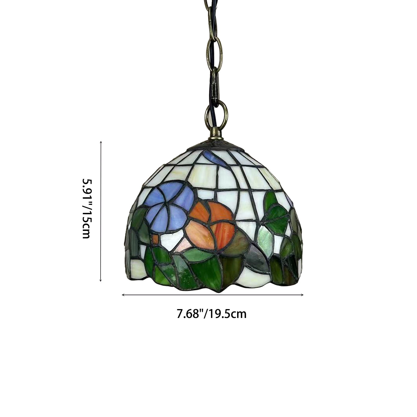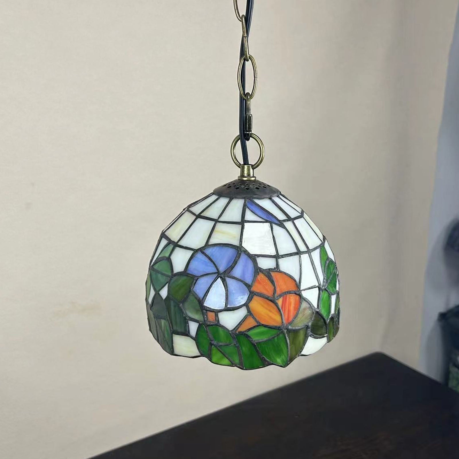 Traditional Tiffany Round Dome Petunia Baroque Zinc Stained Glass 1-Light Pendant Light For Living Room