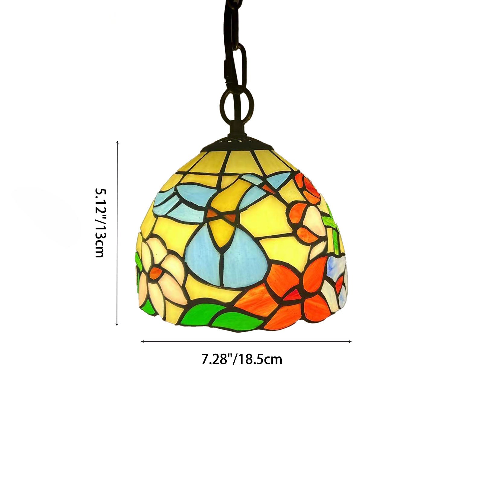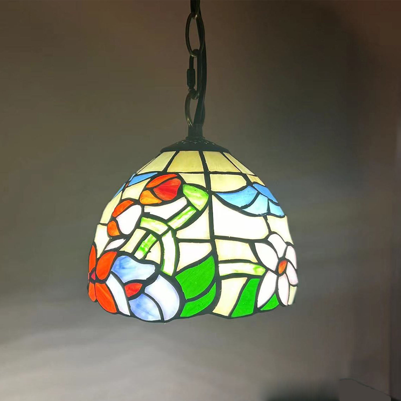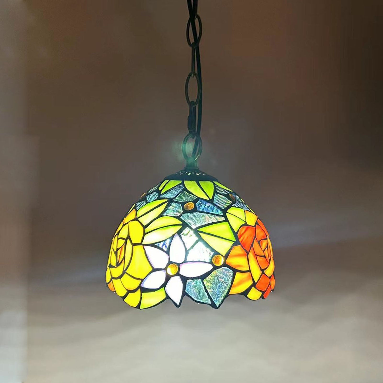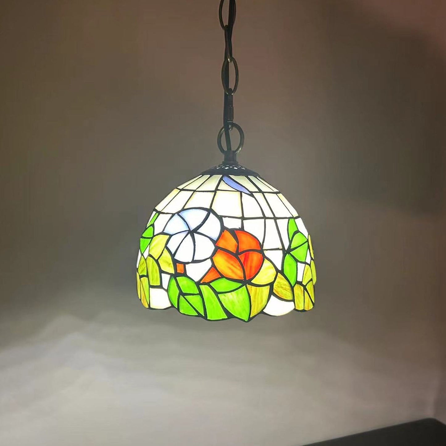 Traditional Tiffany Round Dome Petunia Baroque Zinc Stained Glass 1-Light Pendant Light For Living Room