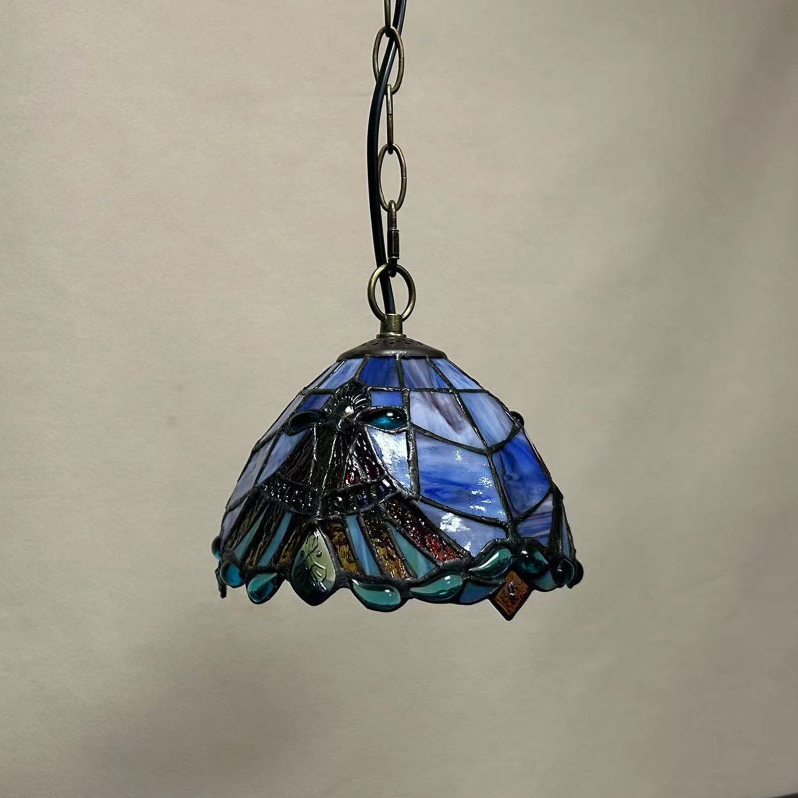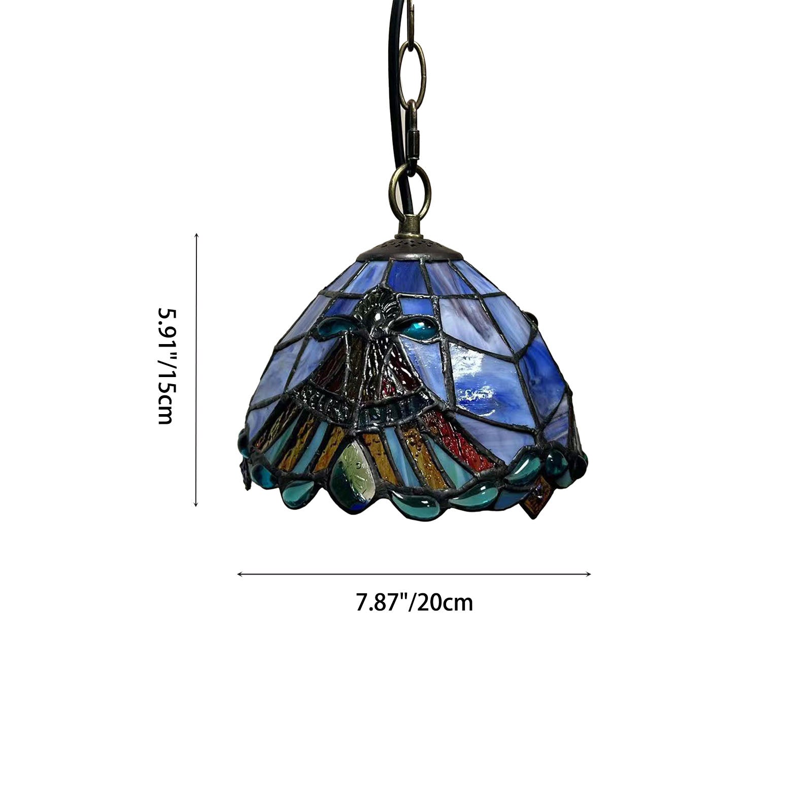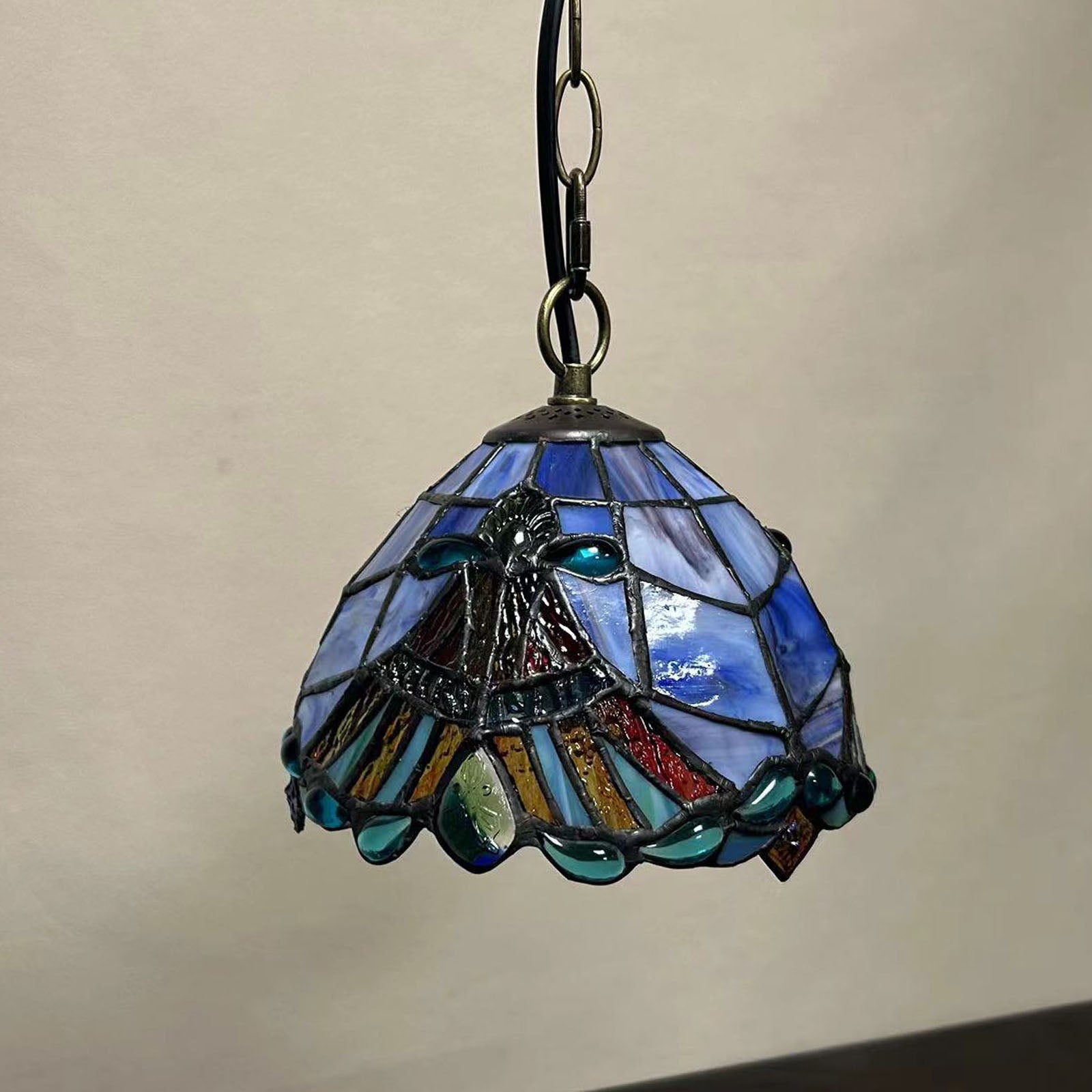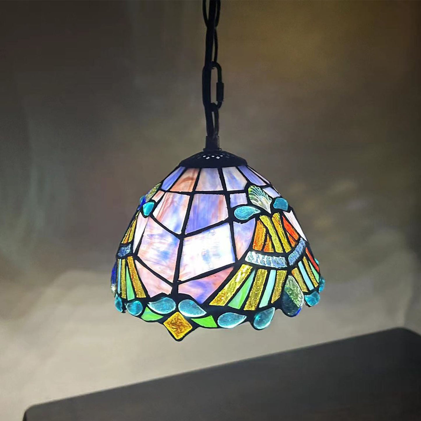 Traditional Tiffany Round Dome Petunia Baroque Zinc Stained Glass 1-Light Pendant Light For Living Room
