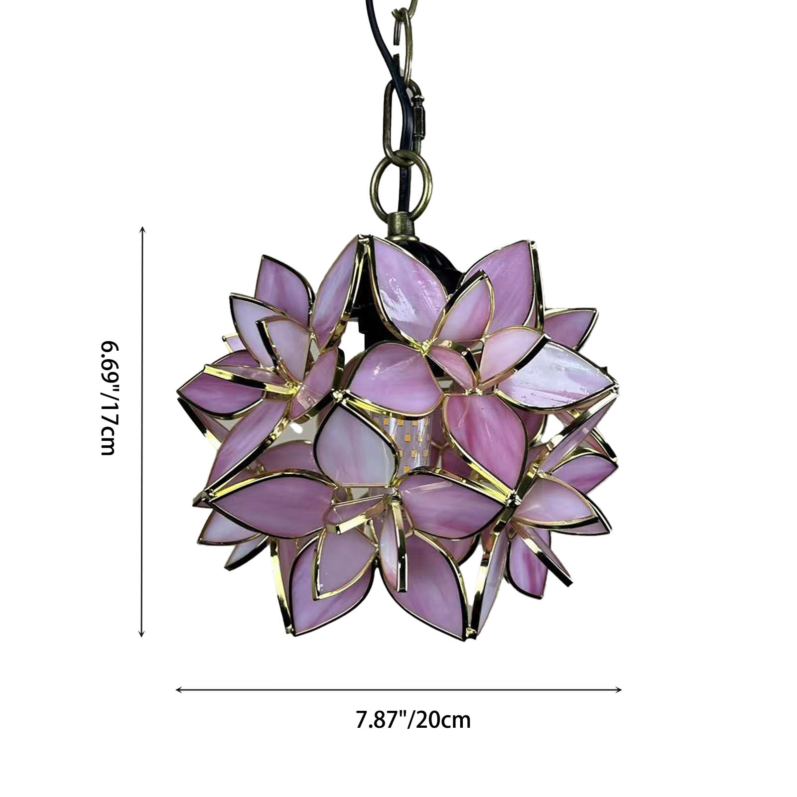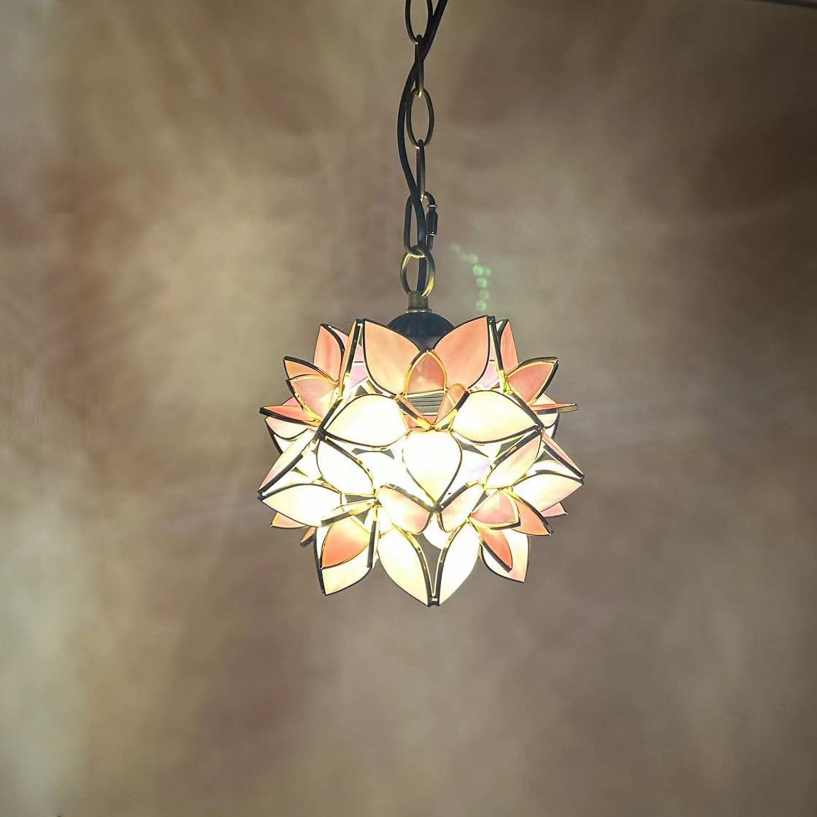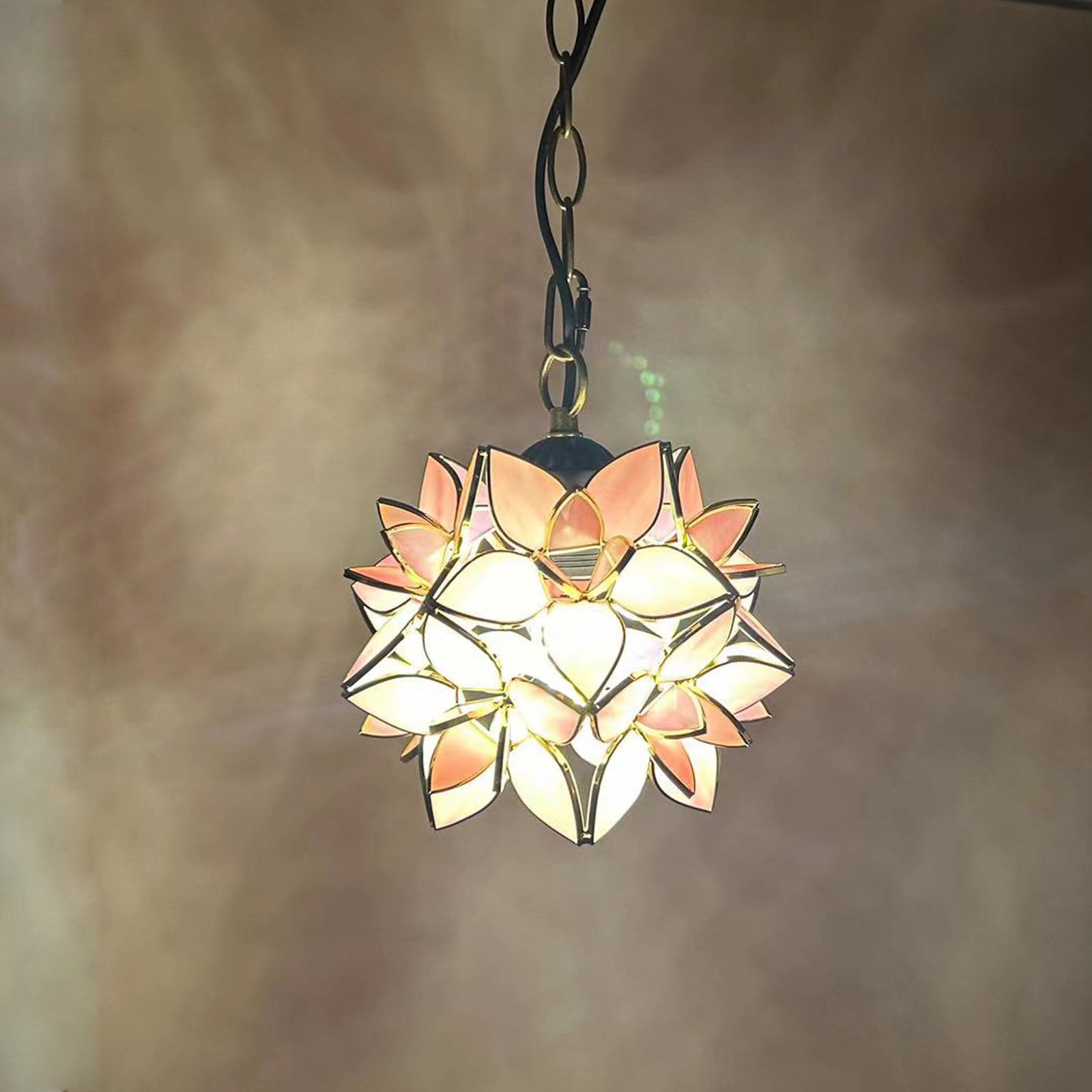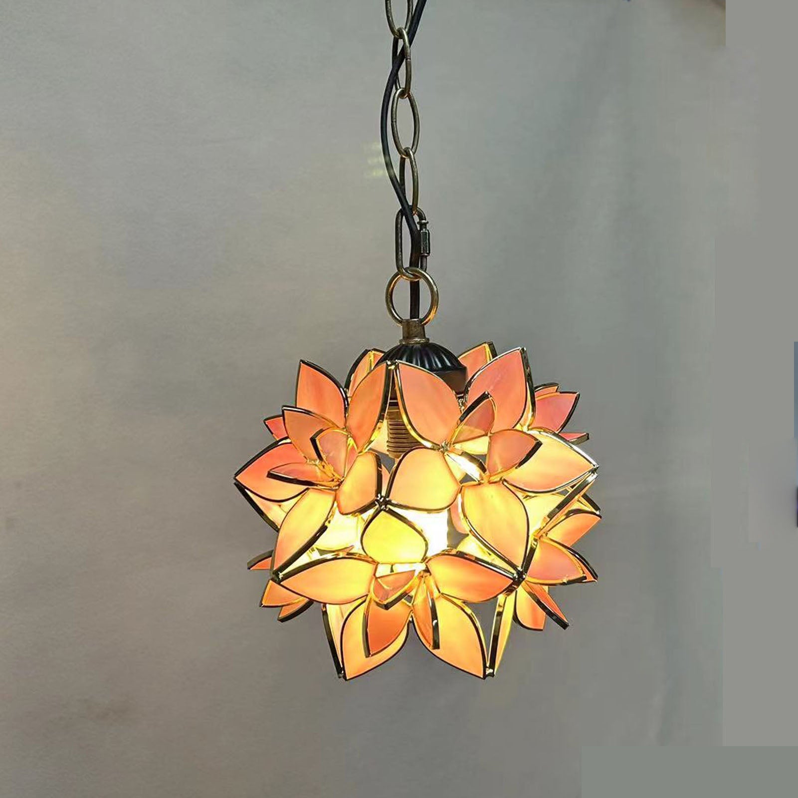 Traditional Tiffany Round Flower Ball Zinc Stained Glass 1-Light Pendant Light For Living Room